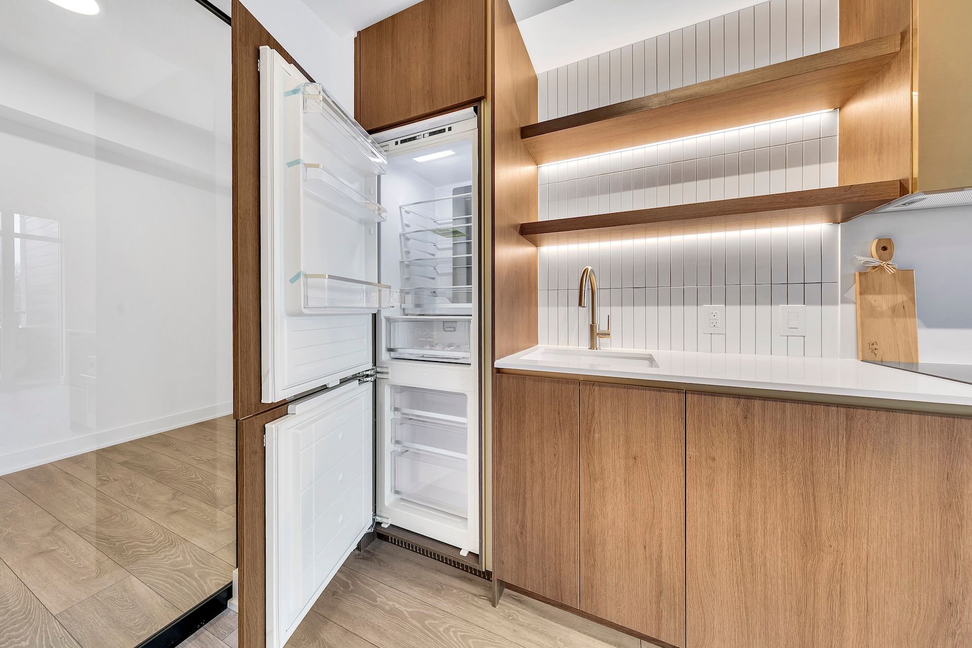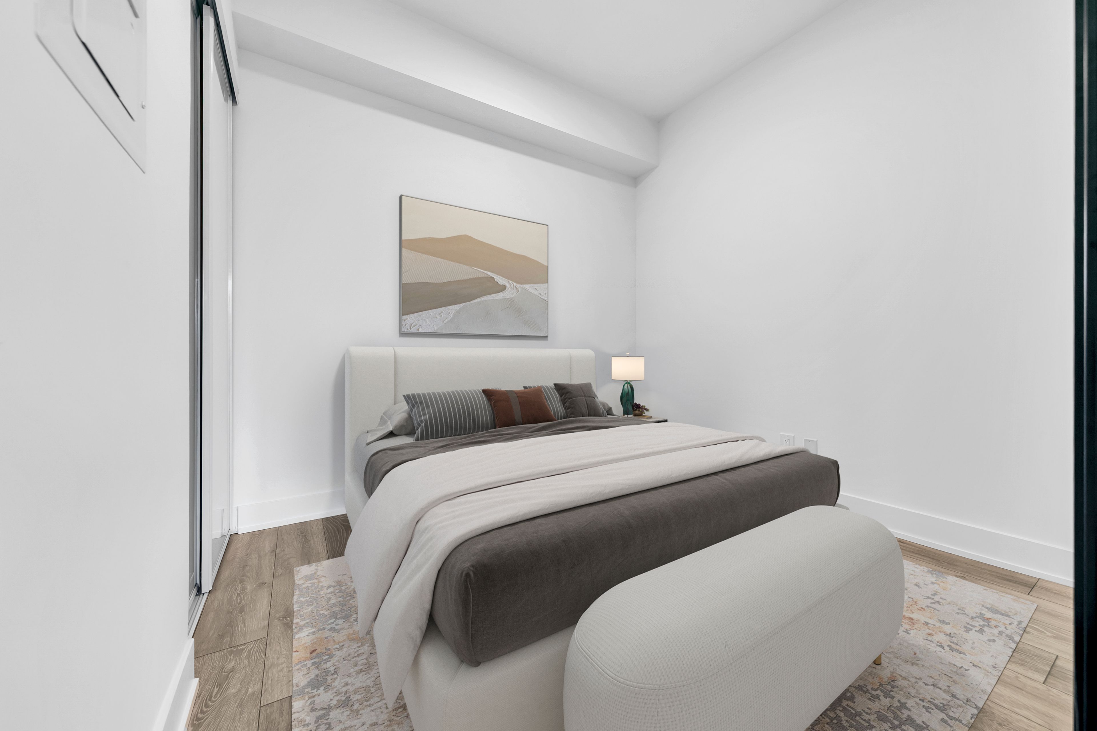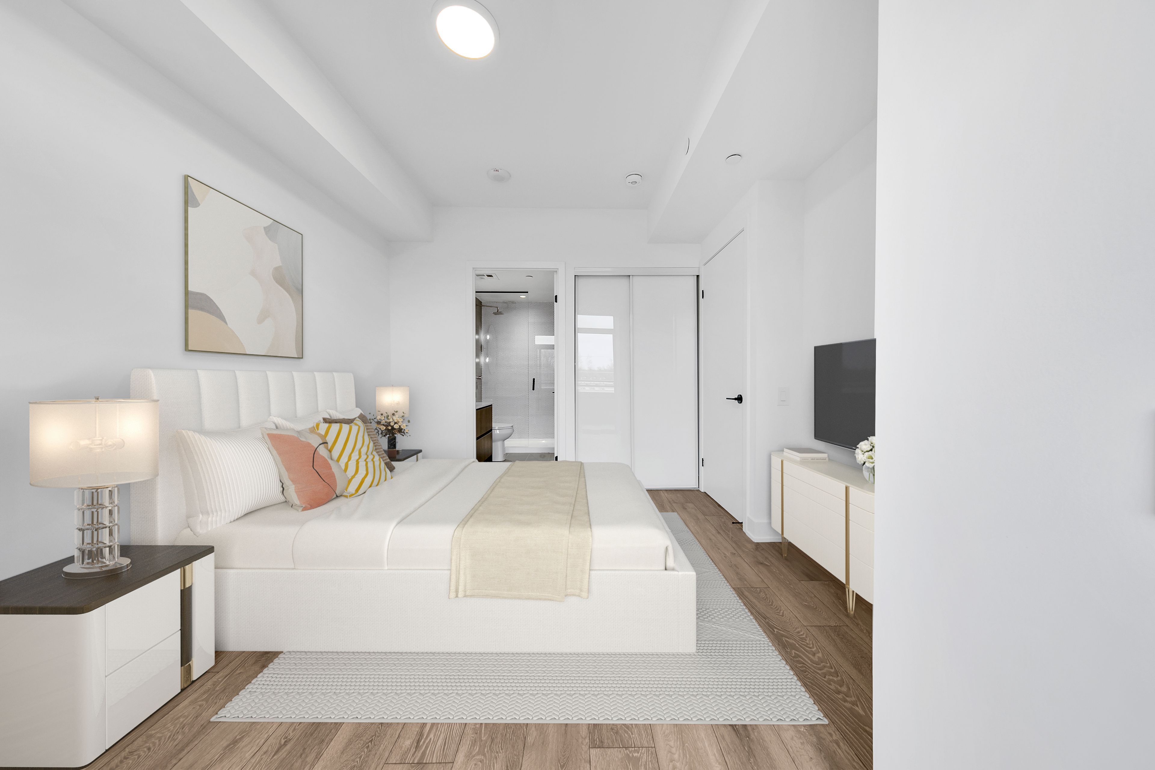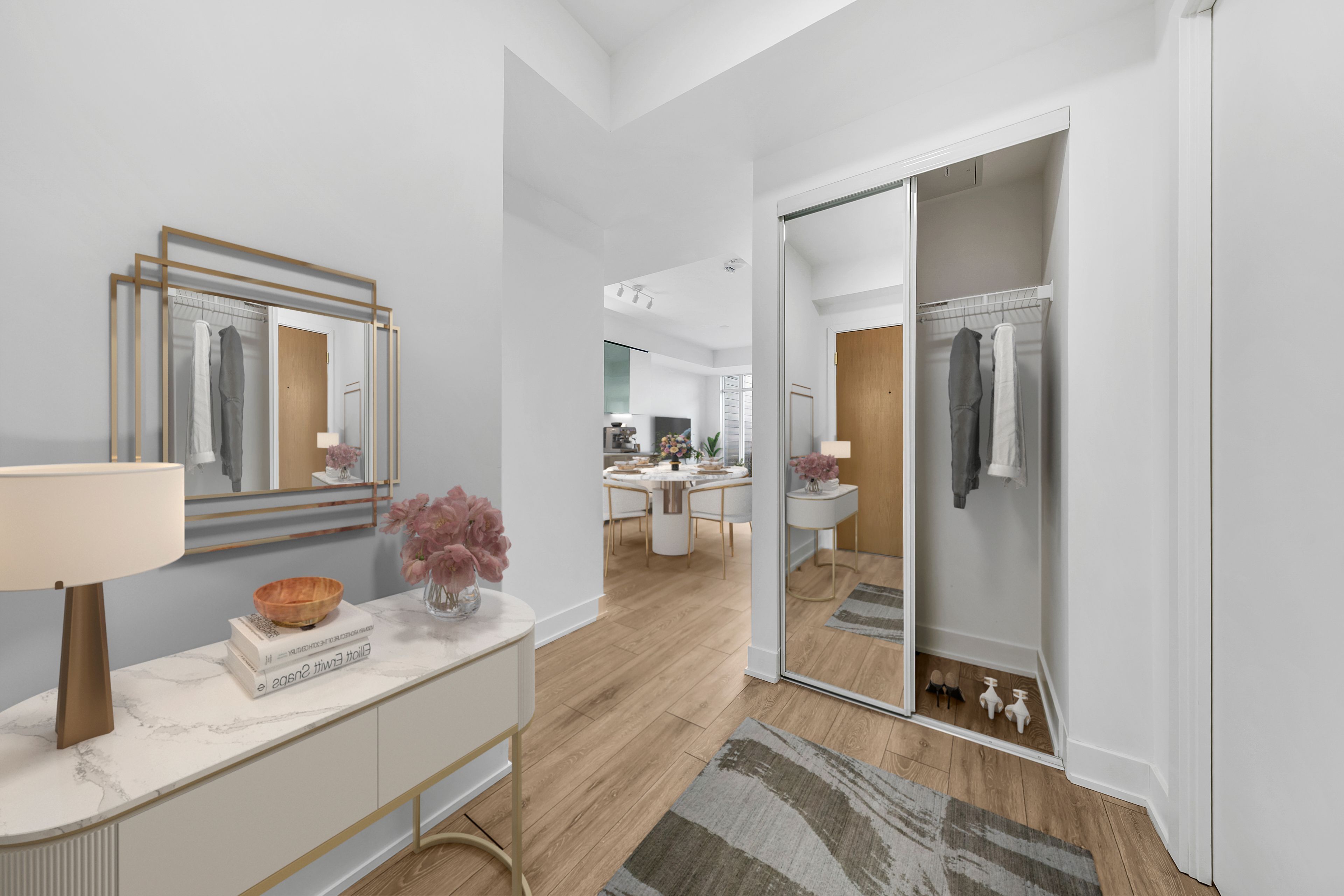 Experience modern boutique living at the poet, a sought-after 6-storey residence in the heart of leslieville. This virtually staged, upgraded 2-bedroom, 2-bathroom suite features a highly functional split-bedroom layout, offering exceptional privacy and everyday comfort. The bright open-concept living and dining area is framed by floor-to-ceiling windows and flows seamlessly to a large private balcony, ideal for relaxing or entertaining with city views. The chef-inspired kitchen is equipped with premium built-in appliances, a paneled fridge and dishwasher, and sleek contemporary cabinetry. The spacious primary bedroom includes a spa-inspired ensuite, ample closet space, and direct balcony access. The second bedroom is perfect for guests, a home office, or family use. Additional highlights include engineered european oak flooring, upgraded shower finishes, a welcoming foyer with built-in storage, in-suite laundry, and same-floor locker access. Parking and locker included. Residents enjoy premium amenities including a fitness centre, party/meeting room, pet spa, bike storage, visitor parking, and a stunning rooftop garden terrace with gas bbqs and sweeping city skyline views. Ideally located steps to queen street east, transit, parks, shops, cafés, and restaurants, with the beach minutes away. A refined urban home offering lifestyle, convenience, and long-term value.