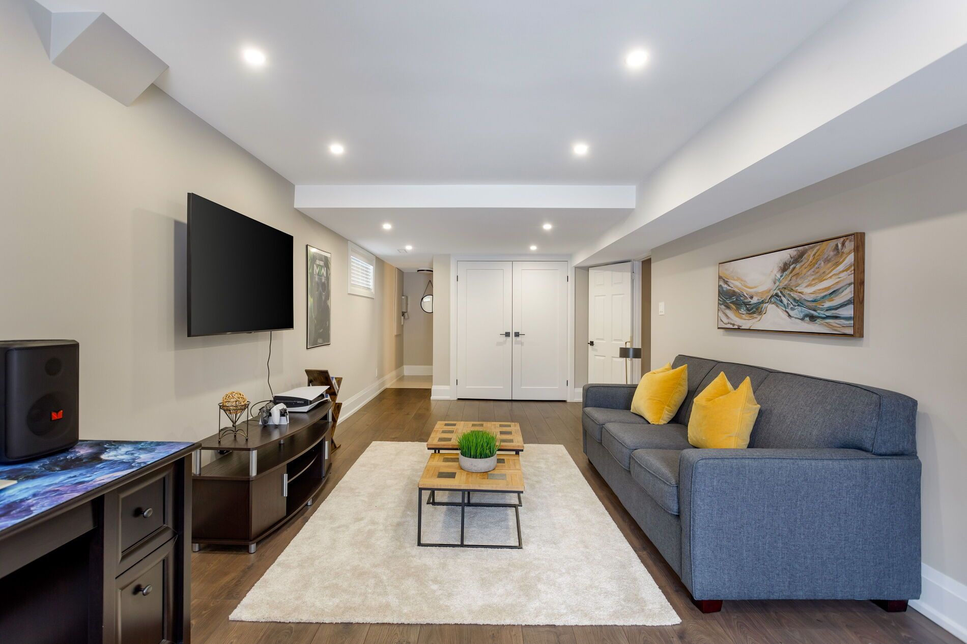 Welcome to rathwood community, a sought-after mississauga neighbourhood known for mature streets, great schools, parks, & easy highway access. This gigantic 4+1-bedroom, 4. 5-bath home offers a finished walkout basement with 2 walkouts & view of golden orchard park for added privacy. Walkable to rockwood mall and several other shopping options are nearby. For commuters, dixie go, hwy 401 & the qew are minutes away. Outstanding curb appeal defines this beautifully renovated mississauga home, featuring an extra-wide stone driveway & walkway, a double garage, manicured gardens with armour stone accents, & mature trees. The fully fenced backyard is a private retreat with two stone patios-one covered for shaded lounging & one with a dedicated bbq area-surrounded by perennial gardens & cedars, providing exceptional privacy. Extensively renovated in 2018, upgrades include hardwood & tile flooring throughout, a fully renovated main kitchen, updated basement kitchen, all bathrooms renovated, smooth ceilings, interior doors & trim, new drywall on main & reshingled roof, eavestroughs, landscaping, interlock, & composite deck flooring with glass railings. Inside, a grand foyer showcases a refinished curved oak staircase with metal pickets. Formal living & dining rooms with oversized windows are ideal for entertaining. The chef-inspired eat-in kitchen offers custom cabinetry with crown moulding, quartz counters, stainless steel appliances, island & walkout to a private upper deck. The adjoining family room features a fireplace & deck access. Upstairs offers 4 spacious bedrooms & 2 bathrooms, including a primary suite with a spa-like ensuite with a zero-clearance glass shower. The finished walkout basement includes 2 walkouts, large recreation & games areas, a fireplace, second kitchen, second laundry room, fifth bedroom, renovated 3-piece bath, & separate entrance-ideal for in-law or multi-generational living.