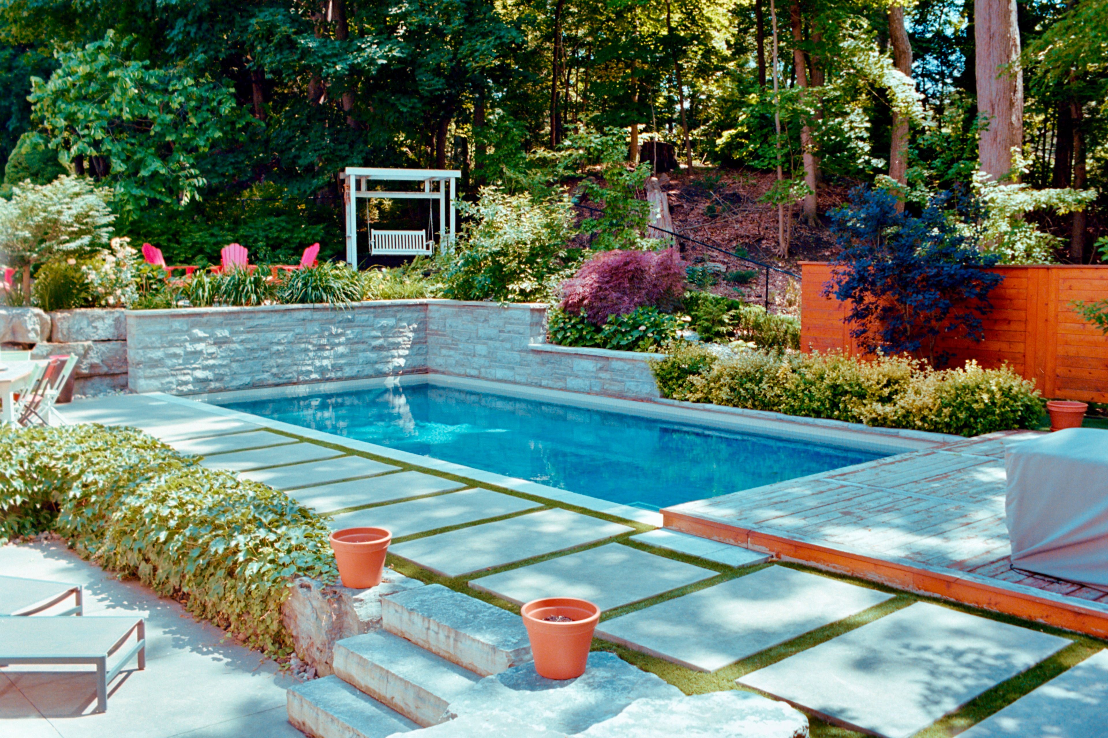 • Resort-style backyard with a heated saltwater pool and custom cabana.