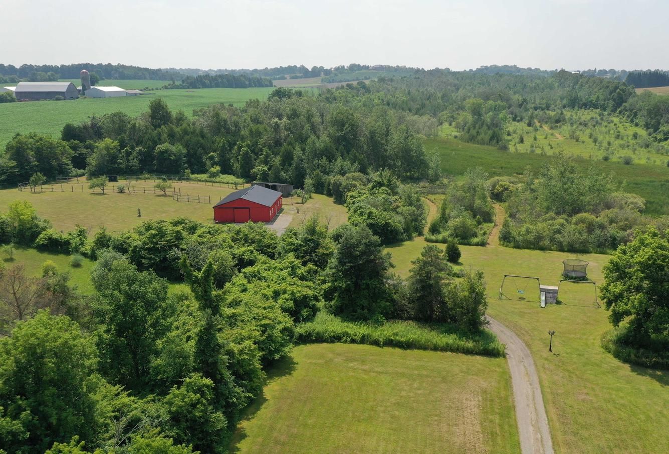 Welcome to 12866 regional rd 39, a picturesque 42-acre estate nestled in the charming hamlet of zephyr, within the township of uxbridge. This serene country retreat offers the perfect blend of rural tranquility and small-town amenities, including a library, general store, lcbo, and town hall. Explore your own private forest by foot or horseback, or take advantage of the impressive 36' x 50' fully insulated barn/workshop equipped with electricity, office space, storage, four 10' x 12' horse stalls, and a drilled well. Additional outdoor features include a heated livestock waterer, large paddock, and covered animal shelter. Relax year-round on the wrap-around covered porch with ample space for seating or storage. Inside, a bright two-story foyer welcomes you into a thoughtfully designed home. The formal dining room with gleaming hardwood floors offers flexibility to serve as a second living room. The eat-in kitchen area boasts wall-to-wall windows overlooking the scenic grounds, while the kitchen itself features stainless steel appliances and a central island with seating ideal for entertaining. The sunlit family room opens directly to the back deck and expansive yard. Upstairs, the primary suite includes a generous walk-in closet and 4-piece ensuite. Two additional bright bedrooms and a 3-piece bath complete the upper level. The lower-level walkout offers abundant natural light and great potential for additional living space. A portion of the property benefits from the managed forest tax incentive program, offering notable property tax savings. See property video for more details!