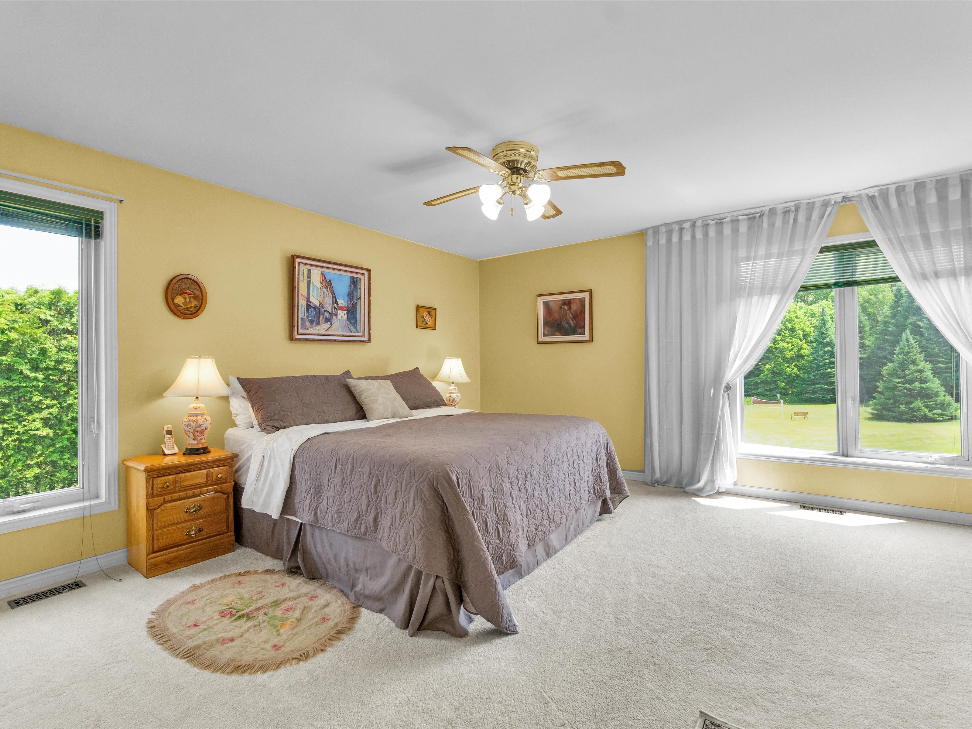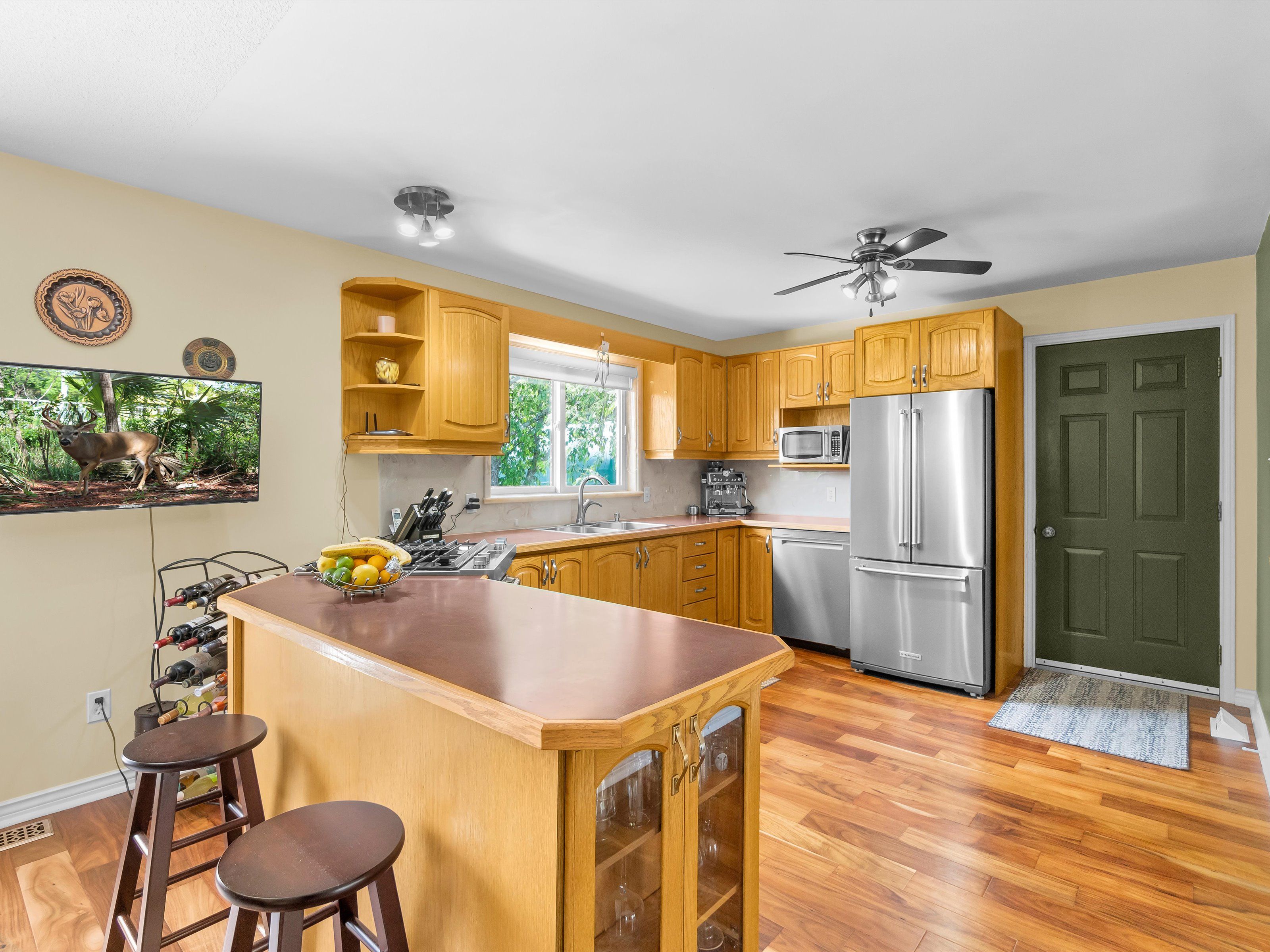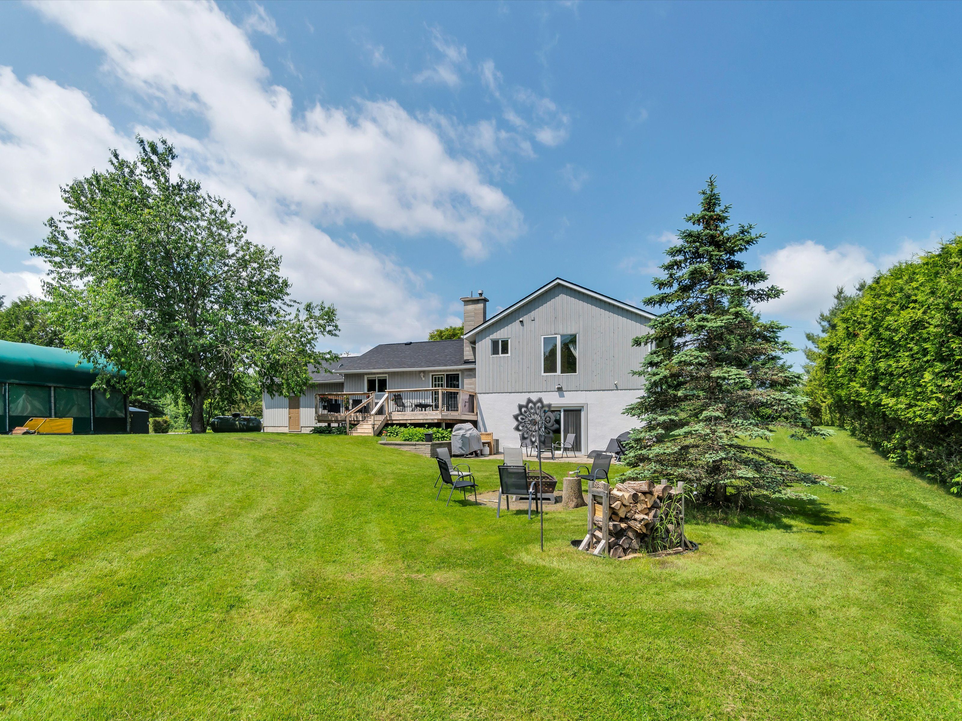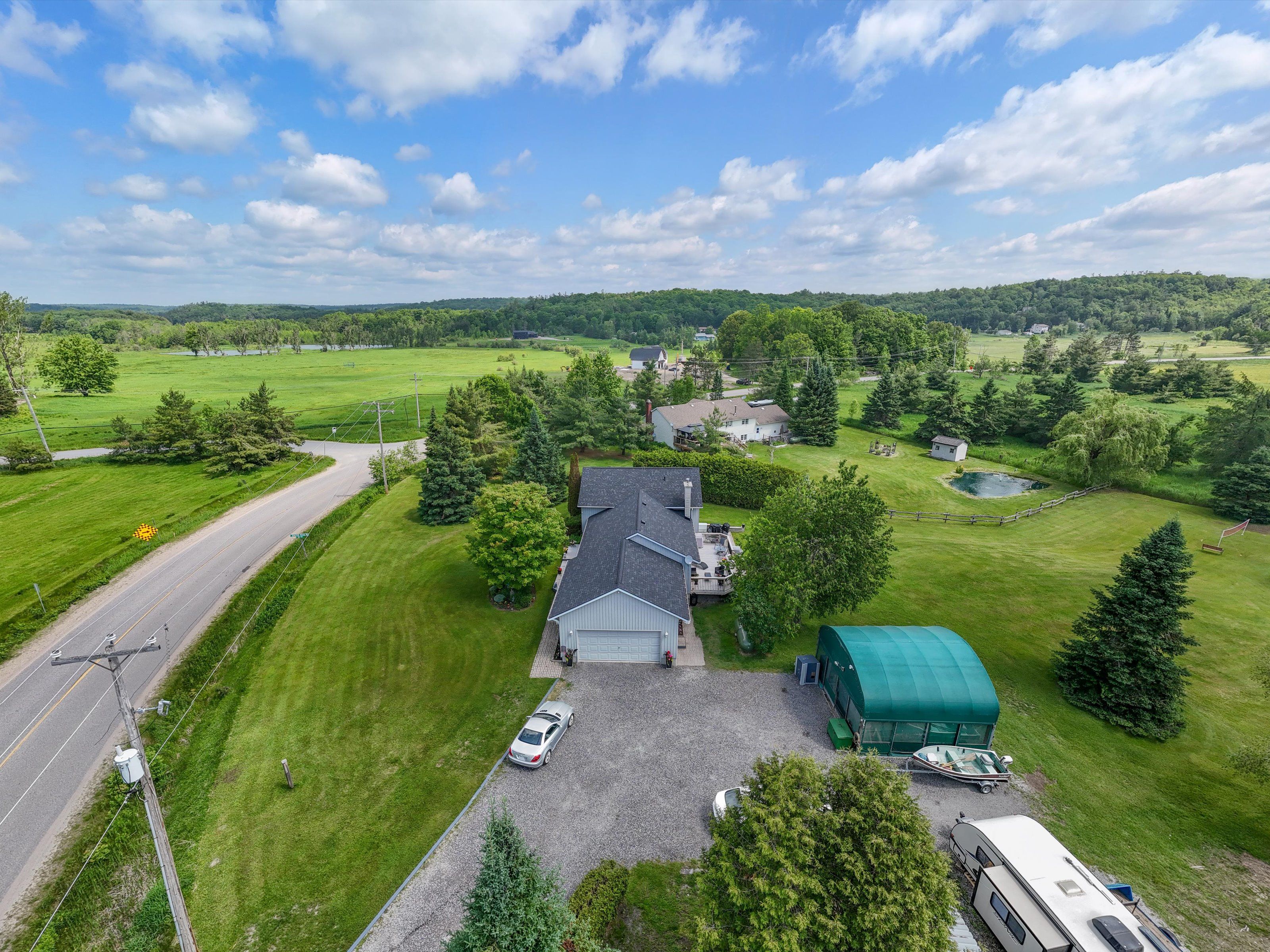 Public open house say nov 8-10am-noon. Great opportunity to own this property ideally and conveniently located in premier rural area of bracebridge just steps to bowyer's beach and patterson-kaye resort/seasons restaurant on lake muskoka, 2 min to george road public boat launch, 3 min to highlands golf club and 5 minute drive to town and to south muskoka golf and country club. This very well maintained 3 bedroom/2 bathroom home offers a unique country oasis to behold with almost 2500 sq ft of finished living area (2800 sq ft total). Gentle and beautifully landscaped yard is a show piece and is approximately 1 acre in size and features generous parking and outside storage areas, and plenty of play areas for kids and summer get togethers. Enjoy the long open and forested views to the east, westerly year round sunsets and the abundant wildlife that visit the property. Relax and on your choice of either front or rear (12'x26') cedar decks or the ground level 12'x22' private rear patio, or unwind in the evenings around the cozy wood fire pit. Well maintained and upgraded home features open concept main level kitchen/dining/living room area with walkout to both decks. Lower area features spacious and bright family room with gas fireplace with walk out to rear patio and fire pit area; rec room/office/hobby room and storage rooms. Upper level features primary suite with 3 piece ensuite overlooking the rear yard, 2 additional bedrooms and 4 piece bathroom. Upgrades include roof shingles (2024), both bathrooms, high efficiency furnace and a/c, scraped walnut floors, generlink for power backup and 6 stainless steel appliances. Other features include 280' drilled well (great water!) attached 22'x23' garage, 20'x20' outbuilding, central vac and recently inspected septic system. Home inspection report available upon request.
