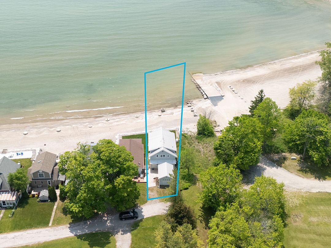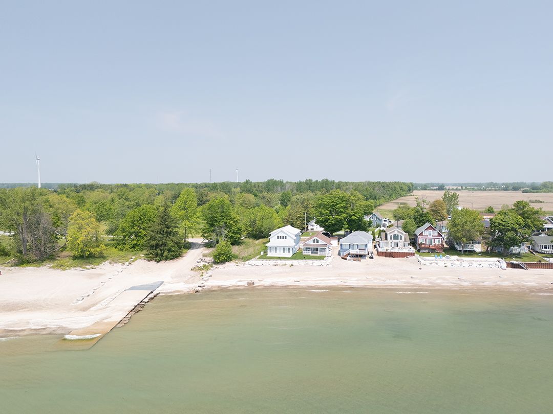 Year-round lakefront living! There's still time to enjoy beach days this season at 12895 old lakeshore road in wainfleet. This 2,264 sq. Ft. Year-round home sits at the west end of old lakeshore road, right beside long beach conservation area, and offers a prime setting on the shores of lake erie. Built new in 2009, this two-storey, 3 bedroom, 2 bath home sits on a 300 deep lot that extends into the lake and includes its own sandy beach. Solidly constructed with maibec siding-valued for its long-lasting finish and durability-a metal roof, and high-quality windows, its a home built to stand the test of time on the waterfront. The open-concept main floor includes two bedrooms, a full bath, and a bright kitchen with custom cabinetry that flows into the living and dining areas. A gas fireplace adds warmth, while the front room lined with wall-to-wall windows frames the water and fills the space with natural light. A walk-out leads to the sunny front patio and lawn, stretching to the protective seawall and sandy beach with shallow, family-friendly waters. Upstairs, a spacious loft with vaulted ceilings, large lake-facing windows, a private 4-piece bath, and walk-in closet serves as an ideal, private primary suite or an airy gathering space. Wood accents throughout bring a relaxed beach house feel, with lake views enjoyed from almost every room. Additional highlights include a whole-home natural gas generator, outdoor shower for rinsing off after a day on the beach, full insulated basement ready for finishing or storage, and a detached single garage. The home is serviced by a cistern and an extensive water treatment system that includes reverse osmosis, a whole-home uv light, and additional filtration. A rare opportunity to own a lakefront property in one of niagara's most loved communities.