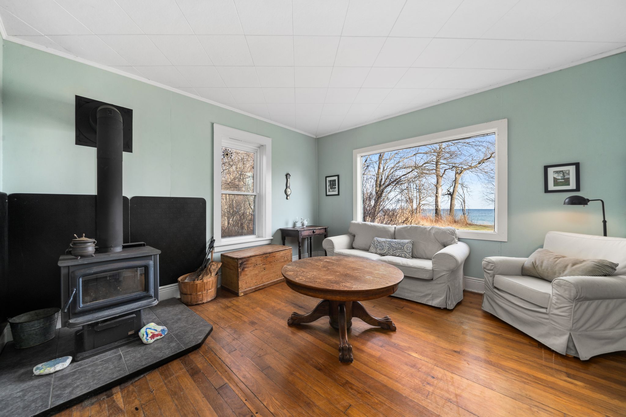 Are you ready to fall in love with your favourite new retreat on cressy lakeside? As private as can be, nestled in a 2. 5+ acre, treed lot. Come see that infinity view across lake ontario you have been dreaming of. Picture framed, water view right from your living room window! A wood stove is right there too for the cooler days. Imagine all the sunrises, opalescent water as the sun sets, light breaking through moody clouds, boats, birds and waves. The home is a century build but has been maintained in a lot of the right ways over the years, bathrooms have seen a refresh, metal siding and roof both have many years left in them, a lot of modern windows have been added over the years too. Enjoy a variety of wood plank flooring, tiled bathroom with wainscotting, old country trim and window casings, tons of charm while still leaving room for your personal touches. Out front is a 45-foot covered slab porch that can be modified as you like for an easy screened-in, or maybe a more private experience. Minimally 4 bedrooms, the home currently has a very intimate 6 bedroom setup, your guests will be happy. Less than 15 minutes to waupoos where you'll find dining, entertainment and locally produced goods to stock the pantry. Picton is your next town in and it has a bit of everything you could hope to find. Your daily drives will be on the very path dotted with the views and vistas that have been attracting folks to the area for generations. Come see for yourself. Property boundaries and or offers will be subject to severance finalization.