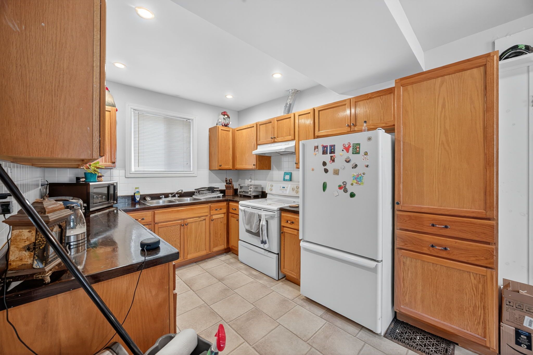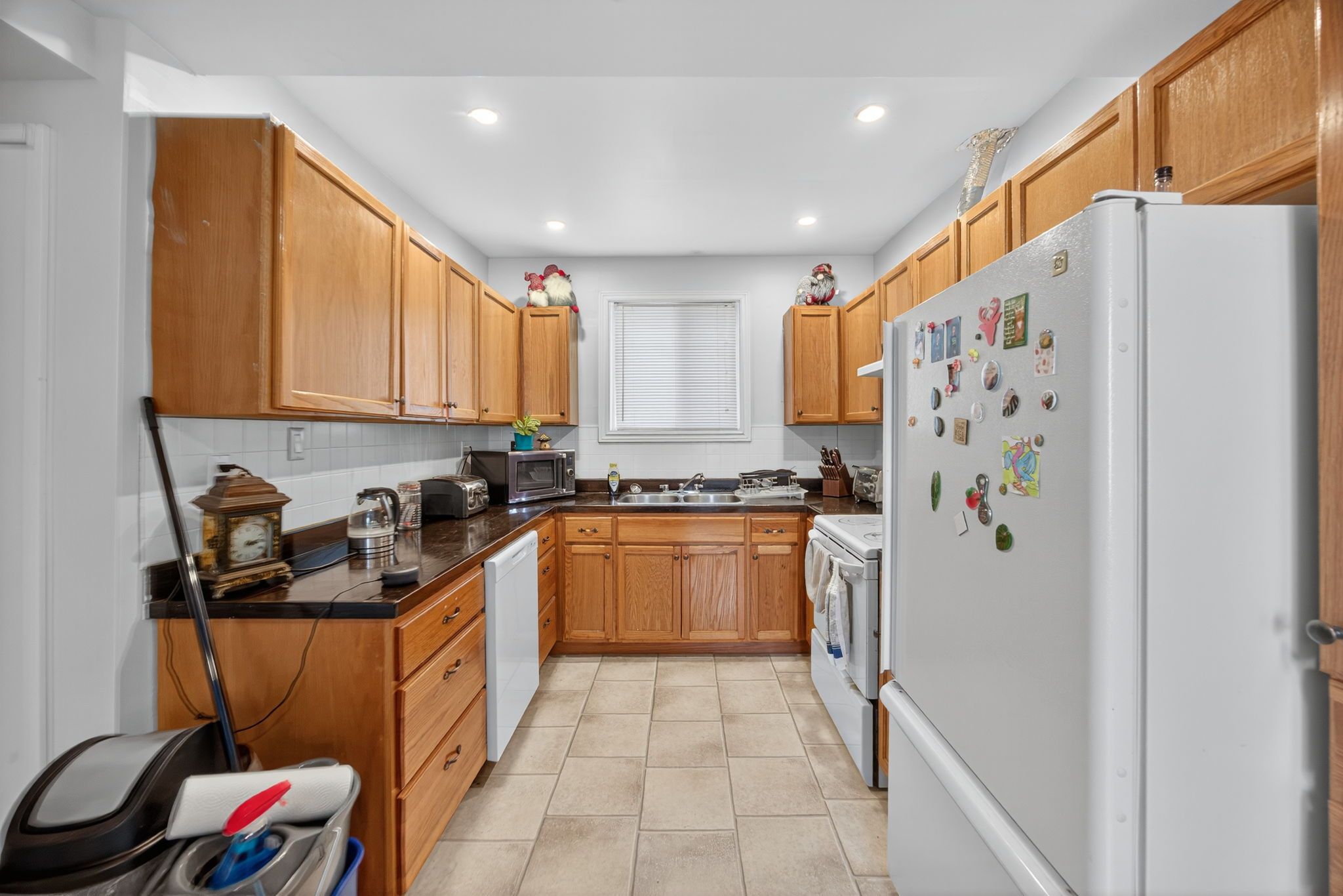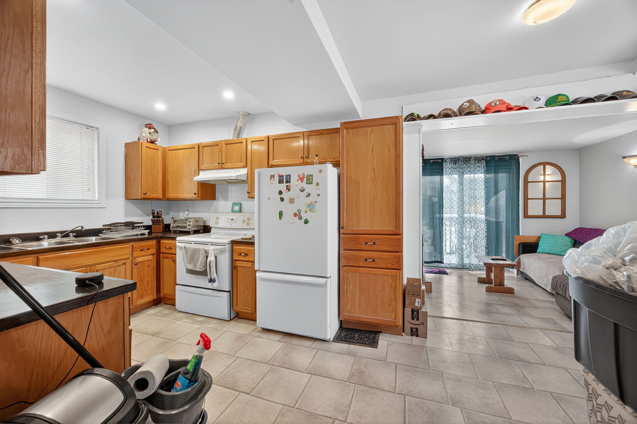 • Spacious eat-in kitchen and three bedrooms in the main portion.