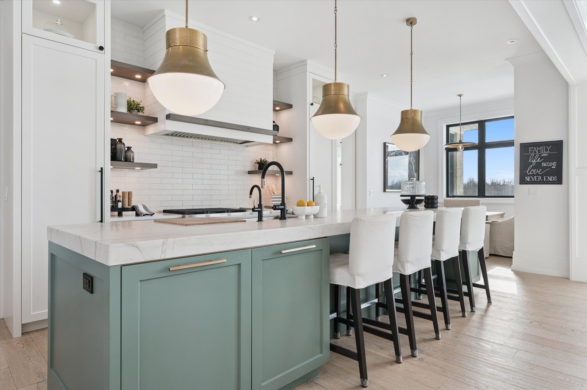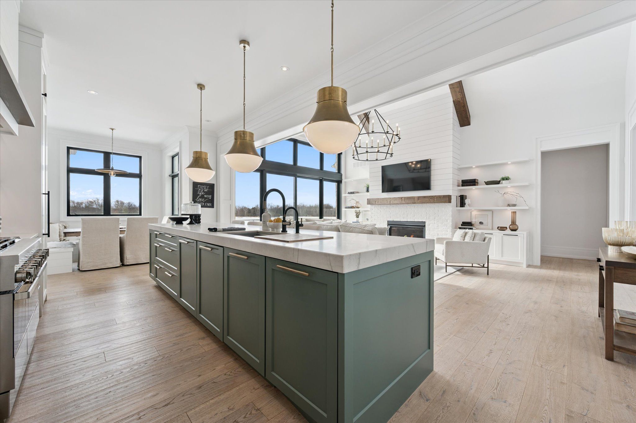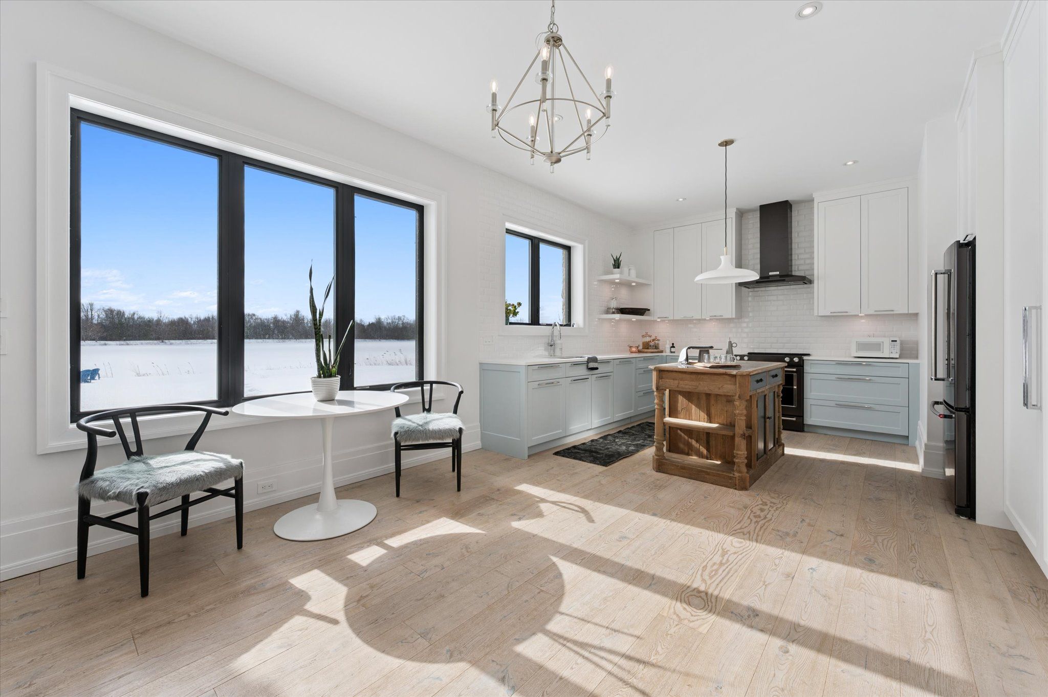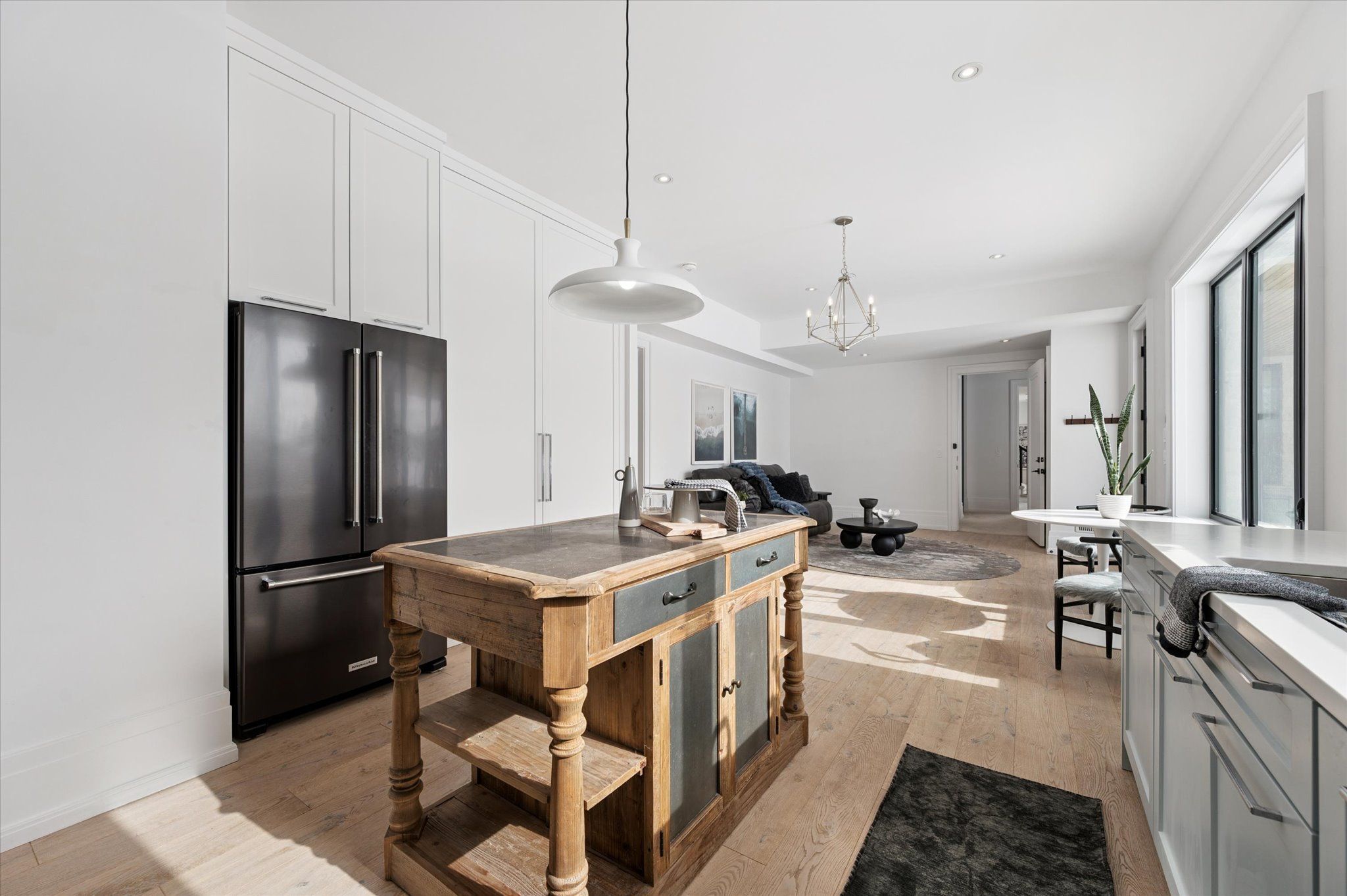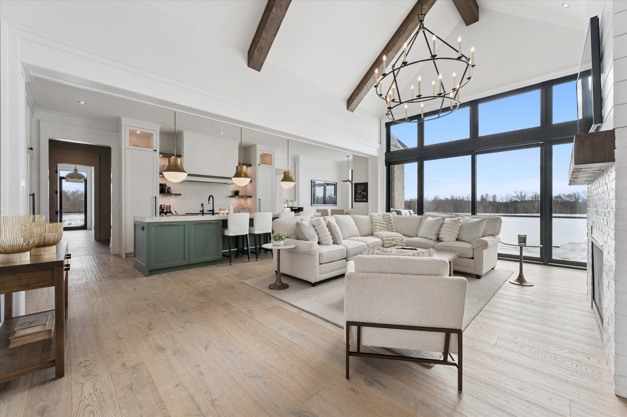 • Spacious open-concept layout with cathedral ceilings and natural light.