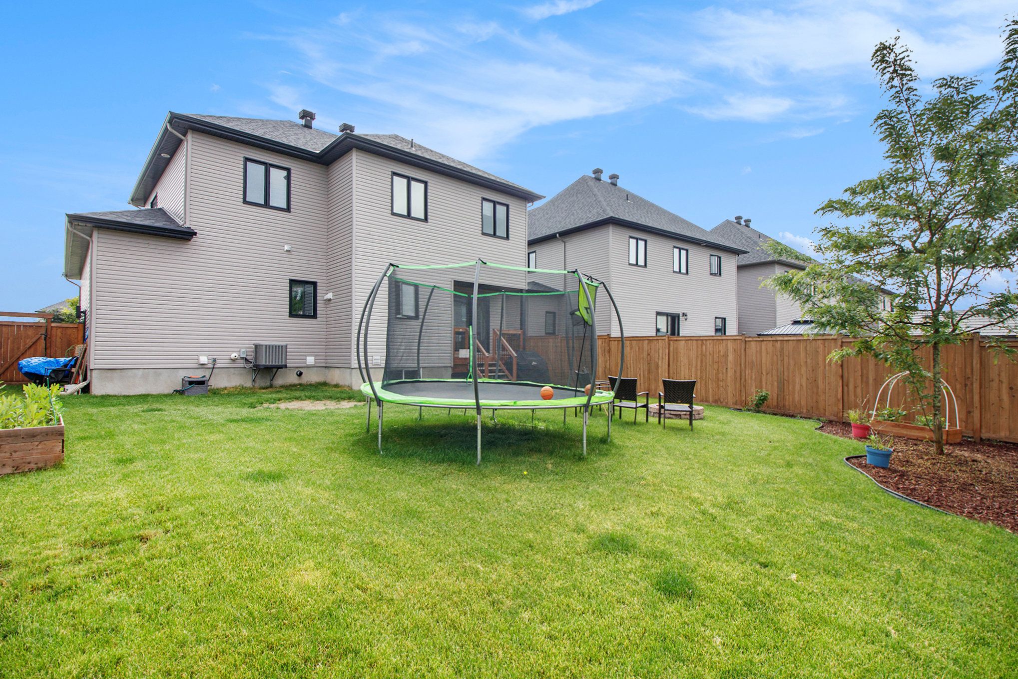 • Fully fenced backyard with patio, great for kids and pets.
