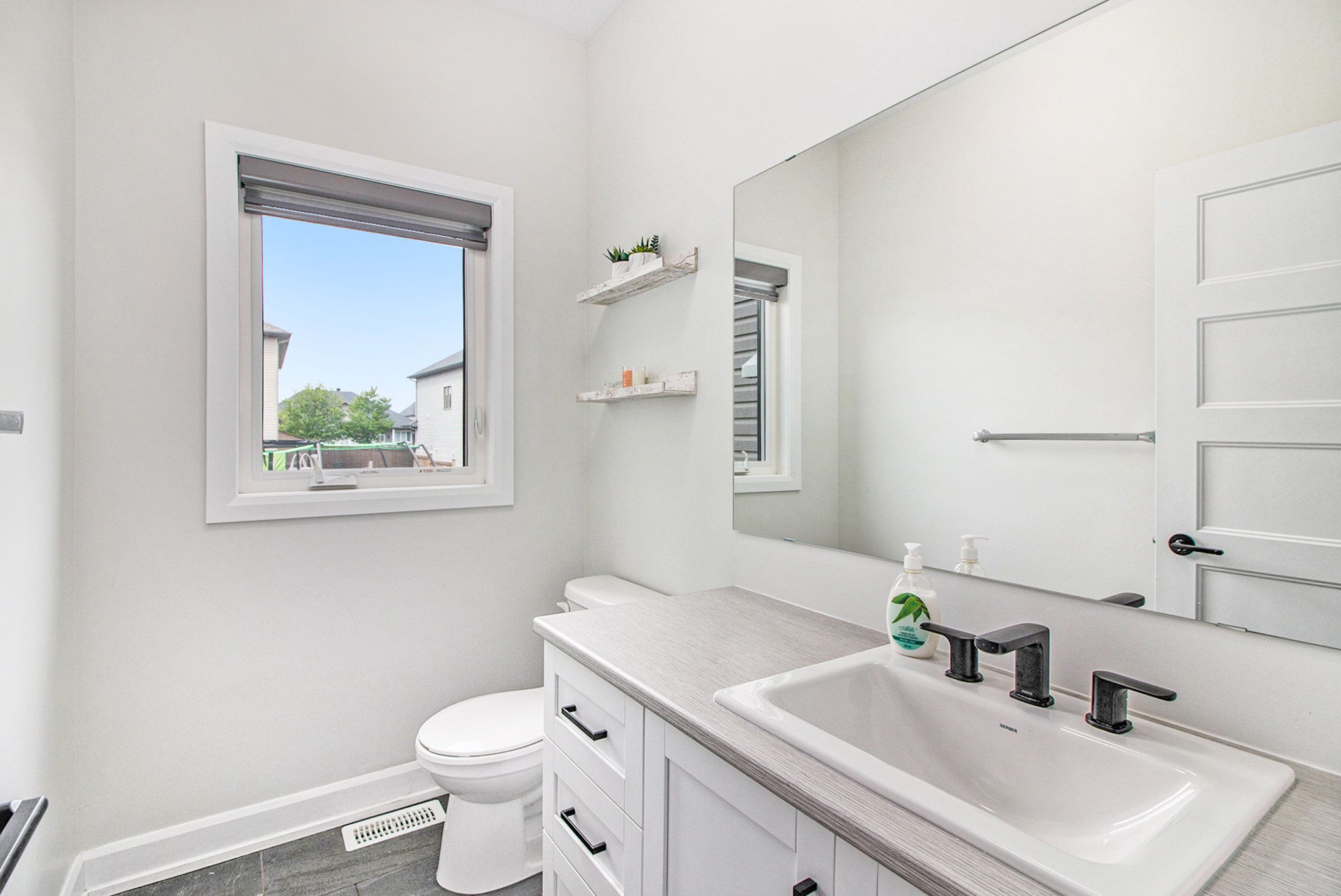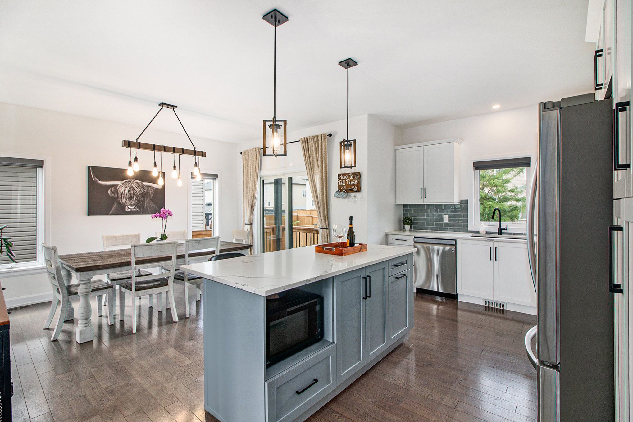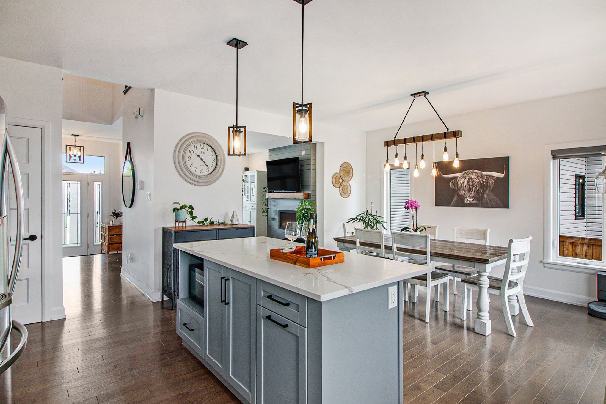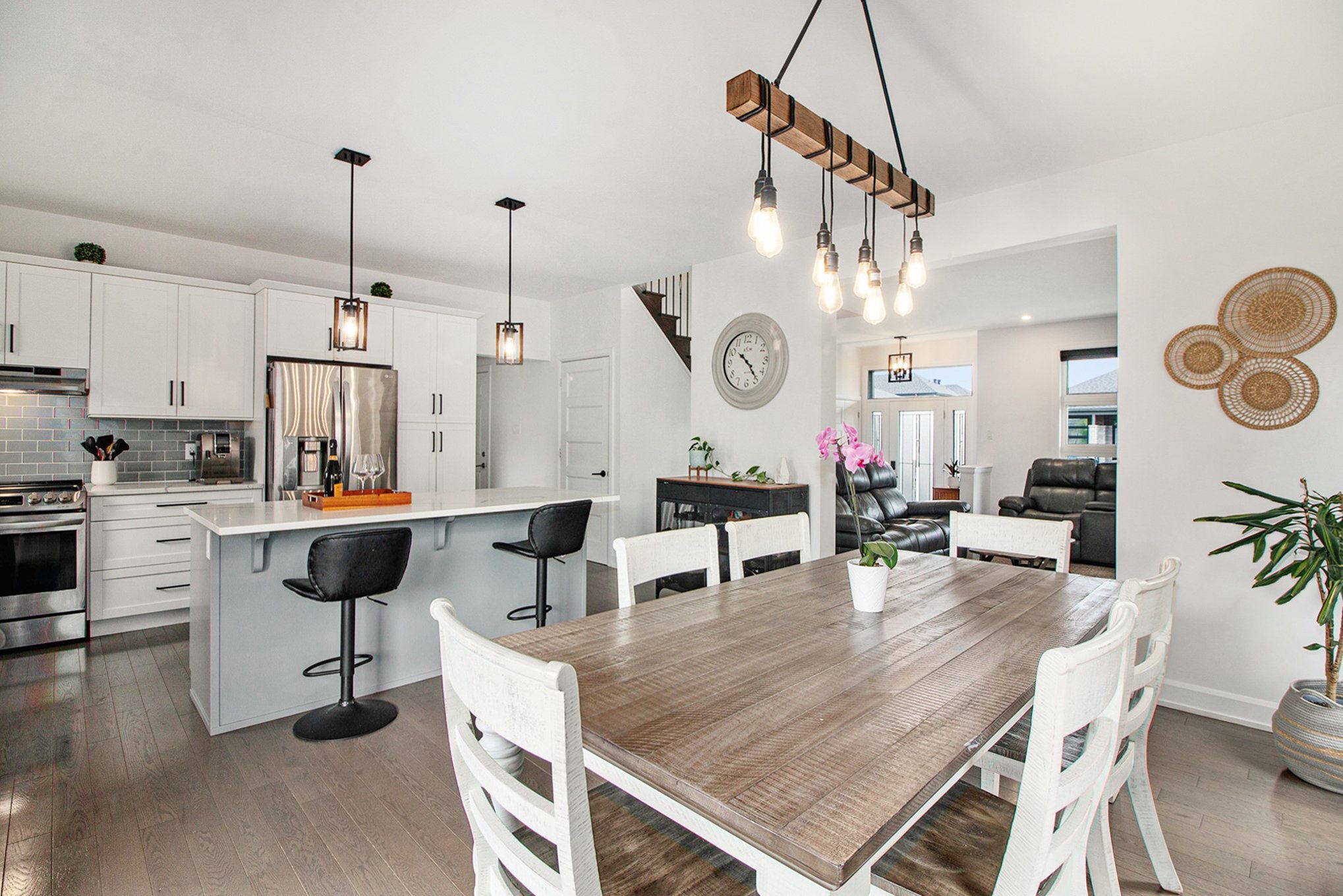 • Open-concept main level with stylish living and dining areas.