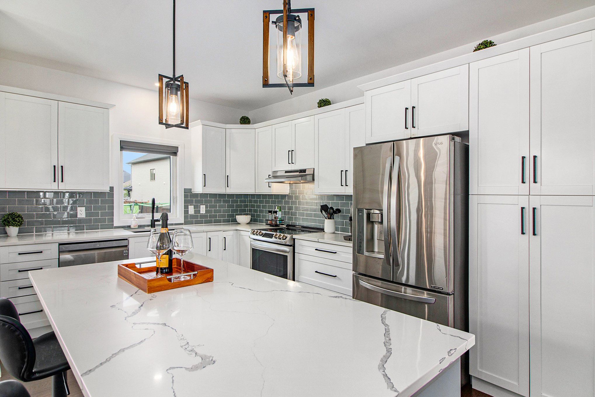 • Upgraded kitchen features quartz countertops and stainless steel appliances.