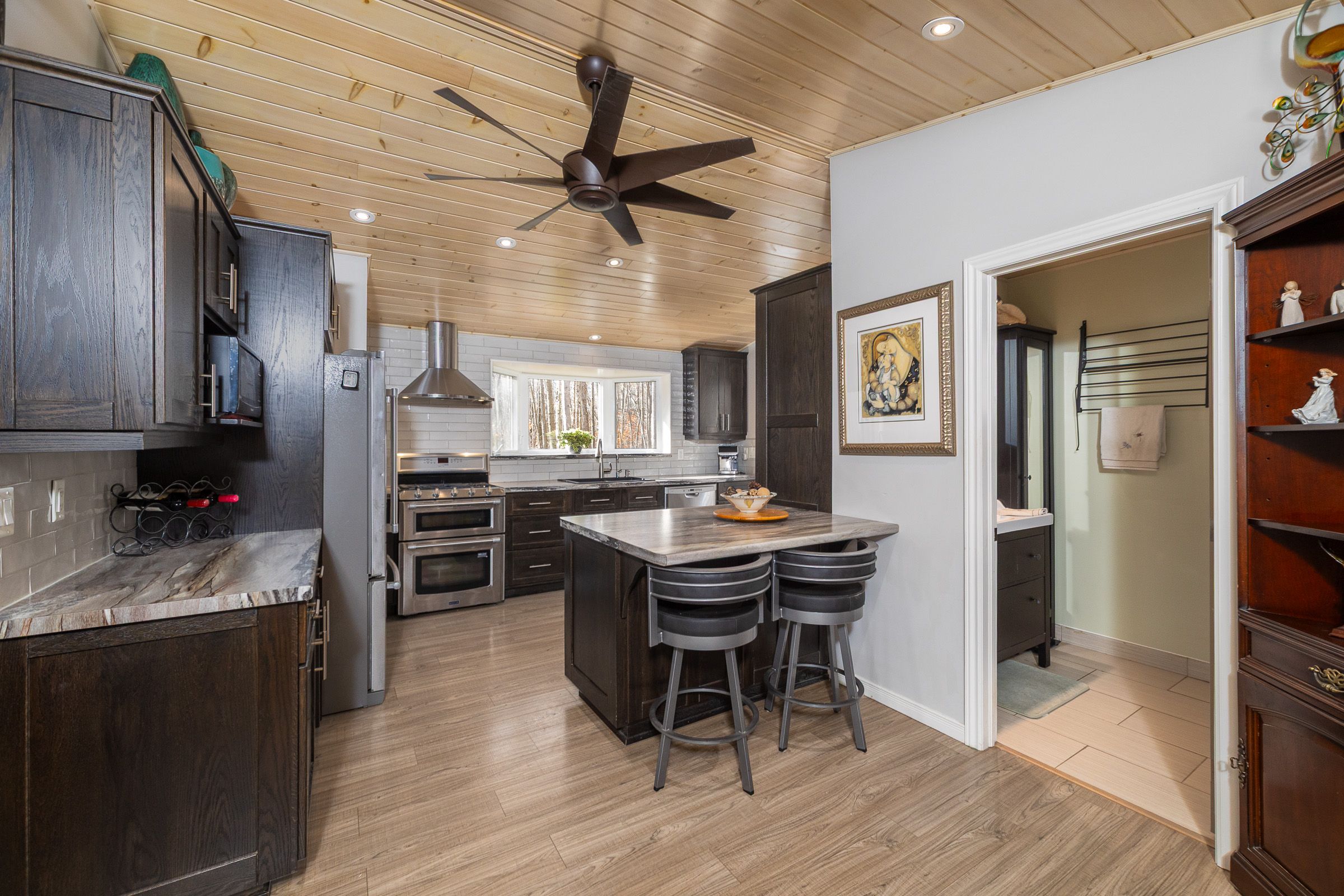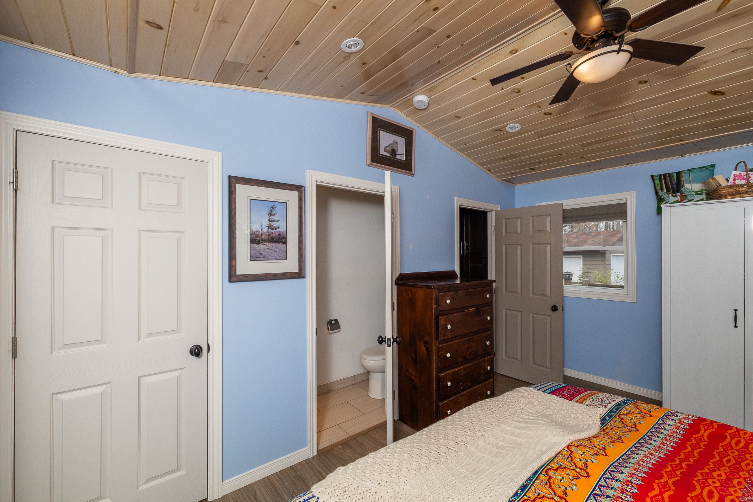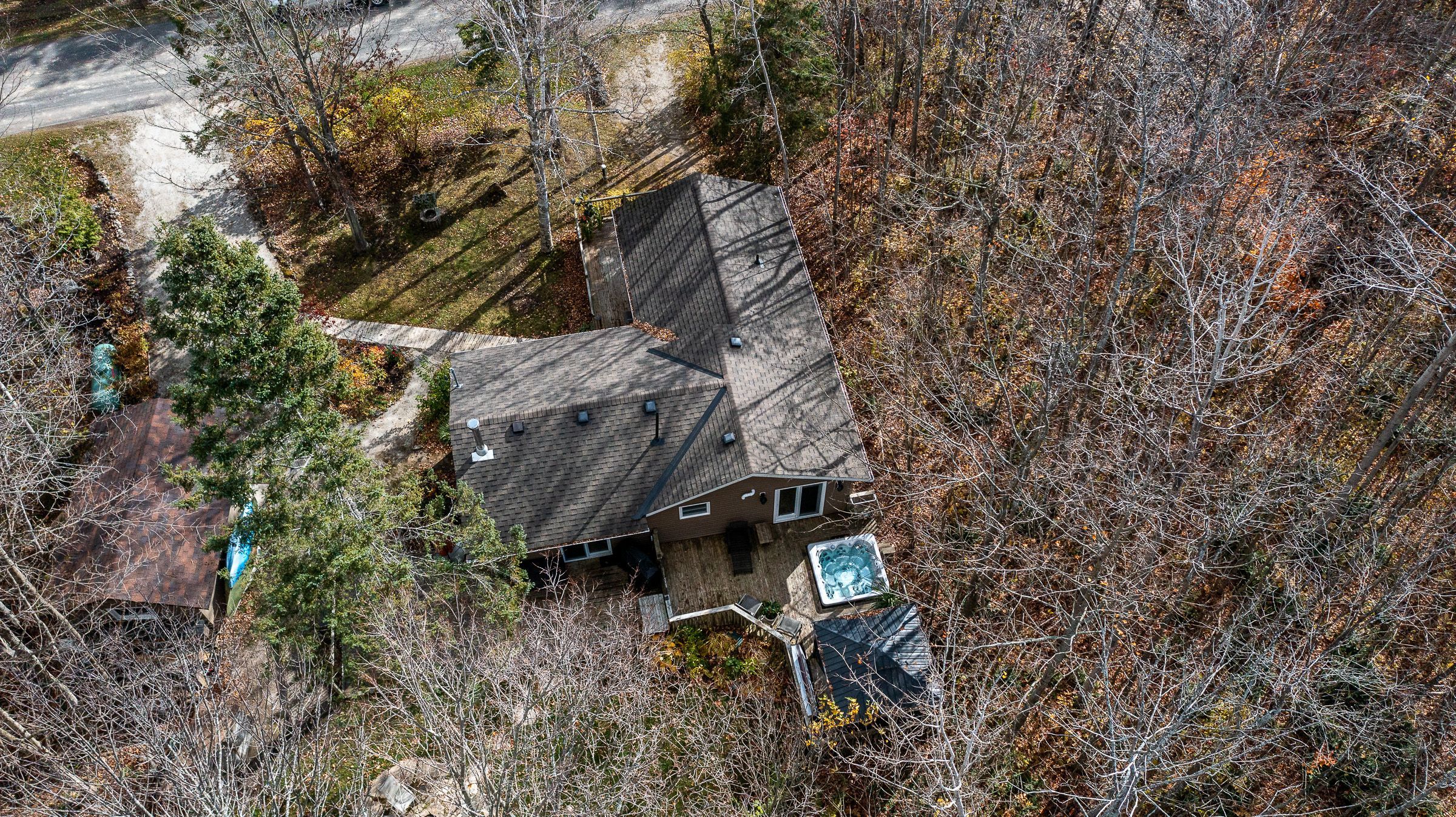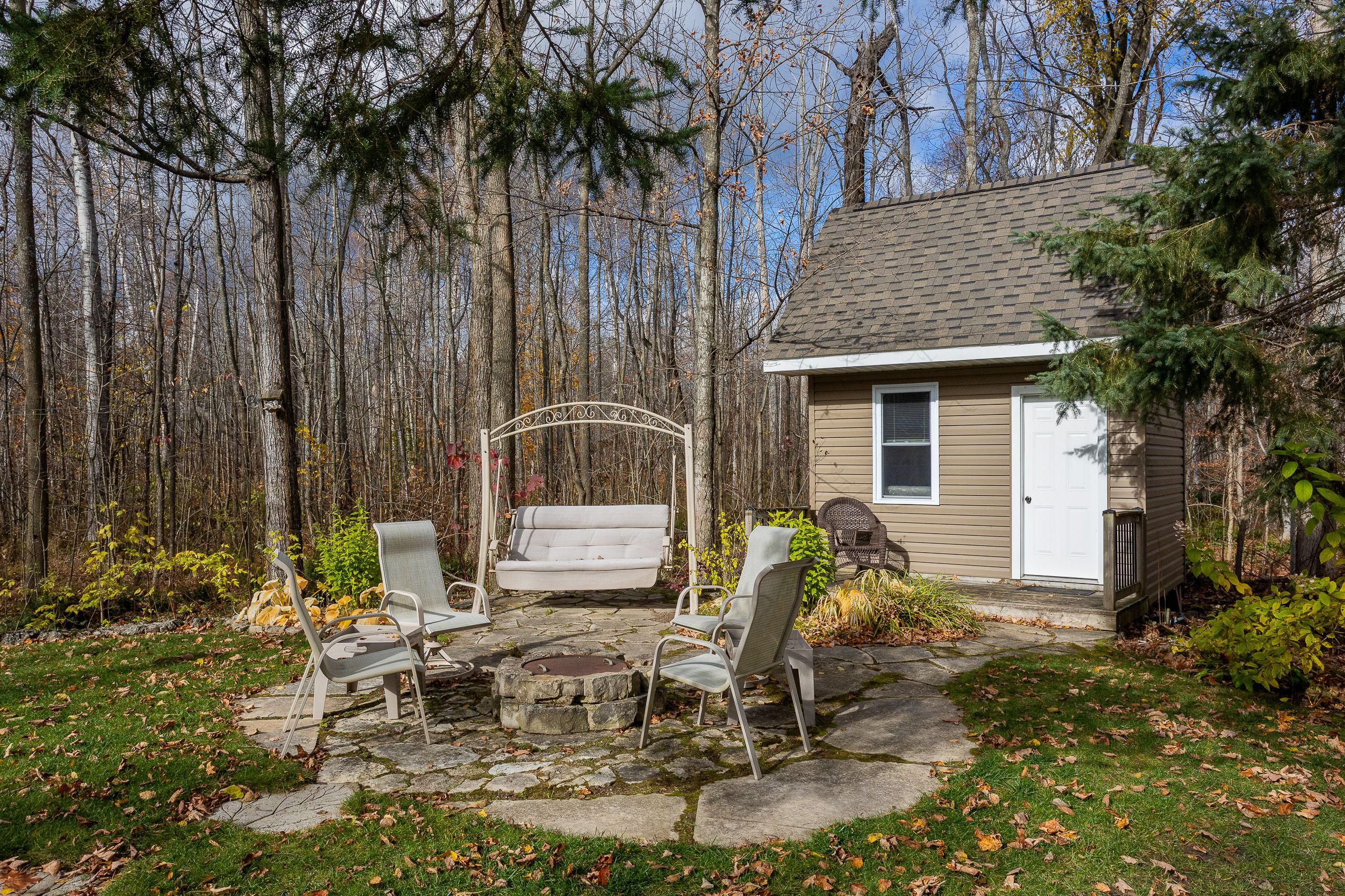 Charming year-round home or cottage just steps from miller lake! This beautifully renovated year-round retreat offers the perfect blend of comfort, craftsmanship, and convenience--ideally located just 100 feet from public lake access. Set on a hardwood tree-lined lot, this home has been substantially updated between 2016 and 2018, inside and out. The bright open-concept living area features vaulted pine ceilings, new flooring, and a cozy wood stove accented by custom stonework. The chef's kitchen is a true highlight, showcasing handcrafted mennonite cabinetry with soft-close drawers and pull-outs, granite double sink, peninsula with bar seating, and stainless appliances including a propane convection double oven. The home provides two spacious bedrooms, including a primary suite with a 2-piece ensuite and walkout to the deck. The second bedroom features custom-built double bunk beds and double insulation for privacy. Additional features include a modern stackable washer/dryer, hallway cabinetry with built-in desk, propane furnace, on-demand hot water, and custom insulated blinds. Enjoy outdoor living at its best with a forest lined deck and hot tub, screened-in hard-roof gazebo, and professionally landscaped yard with gardens, stonework, and dedicated firepit area. A detached garage/workshop offers plenty of storage, while the insulated two-storey bunky--finished in pine with pot lights, ceiling fan, and space to sleep up to six--provides a great space for guests. Meticulously maintained and move-in ready, this charming property is perfect for full-time living or as a four-season getaway. Experience the beauty and tranquility of miller lake living--just minutes from boating, fishing, and exploring the wonders of the bruce peninsula!