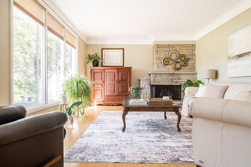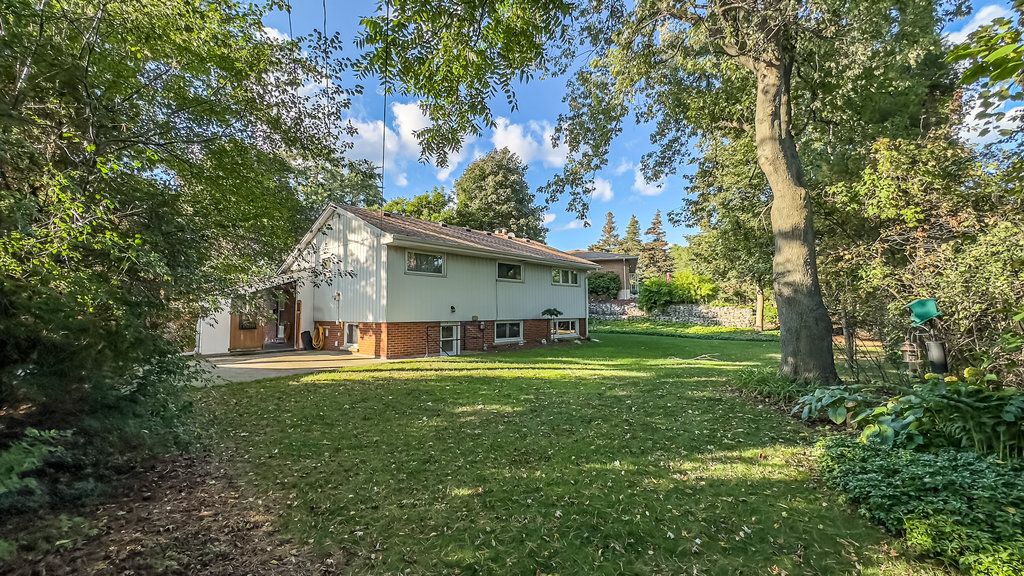 Beautiful mid-century home in old ancaster. Attractive 1950's back-split; bright, spacious, & designed for family living. Attractive floor-to-ceiling stone fireplace (gas), hardwood floors & a wall of windows makes living room a true stand-out. Open-concept living/dining/kitchen design makes entertaining a breeze. Kitchen area features a skylight & convenient walk-out to carport (great for groceries). Upper level (hallway skylight) offers 3 bedrooms and family bath (with newer walk-in shower '20), as well as newer broadloom, baseboards & doors ('22). Step down to the 500+ sq ft of the fully-finished lower level featuring a large, bright family room with cozy electric fireplace, 2 piece bathroom & large laundry room (utility sink, double closets). With its own separate entrance, the possibilities for this lower level are many. Perhaps a future in-law suite. Of note: roof reshingled '25; furnace, a/c, family room windows '17. Eavestroughs & gutter guards '19. Reach out for full list of updates. This home has been meticulously maintained. With its deep set-back from the street, this beautiful tree-canopied property offers both privacy & many areas to relax, entertain & play! From the front patio to the large rear garden patio, this pool-sized, fully-fenced garden is just what you'be been looking for. Plenty of parking on long drive and carport. Quiet street. Close to schools, walk to the park, recreational path & movie theatre. Meadowlands has all your shopping needs close by, excellent dining choices await you in the village of ancaster, and easy access to 403 and "the linc". Embrace all that ancaster has to offer with this charming residence at 129 oneida blvd - your future home awaits!