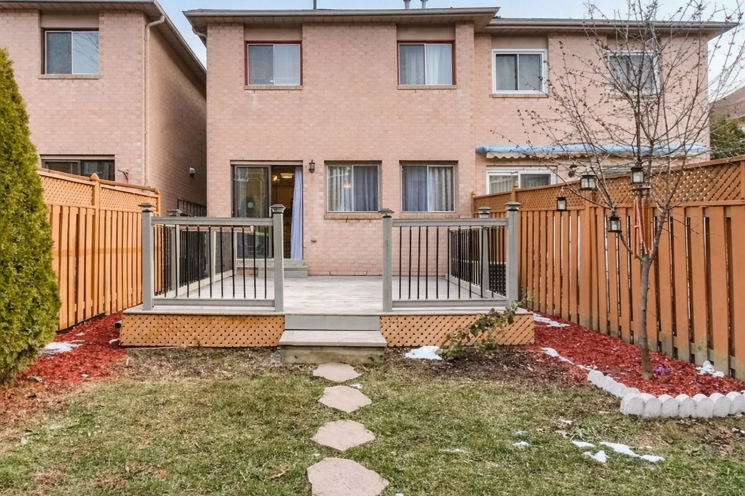 Beautiful and meticulously maintained freehold 2-storey townhouse with no maintenance fees! This spacious 3+1 bedroom home features 4 bathrooms and has been thoughtfully upgraded throughout. Enjoy a brand-new modern kitchen complete with stainless steel appliances and a stylish backsplash. Welcoming double door entry, fresh neutral paint throughout, and no carpet anywhere in the home. Upgrades include new doors, baseboards, modern light fixtures, upgraded faucets and switches, and numerous pot lights for a bright, contemporary feel. The finished basement offers an additional bedroom and bathroom, providing extra living space for extended family or guests. Step outside to a huge custom deck, perfect for entertaining. Additional features include central air conditioning and convenient garage access to the backyard. A true turnkey home-just move in and enjoy!