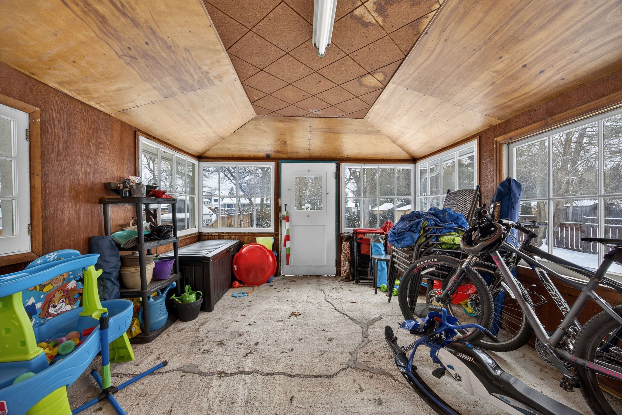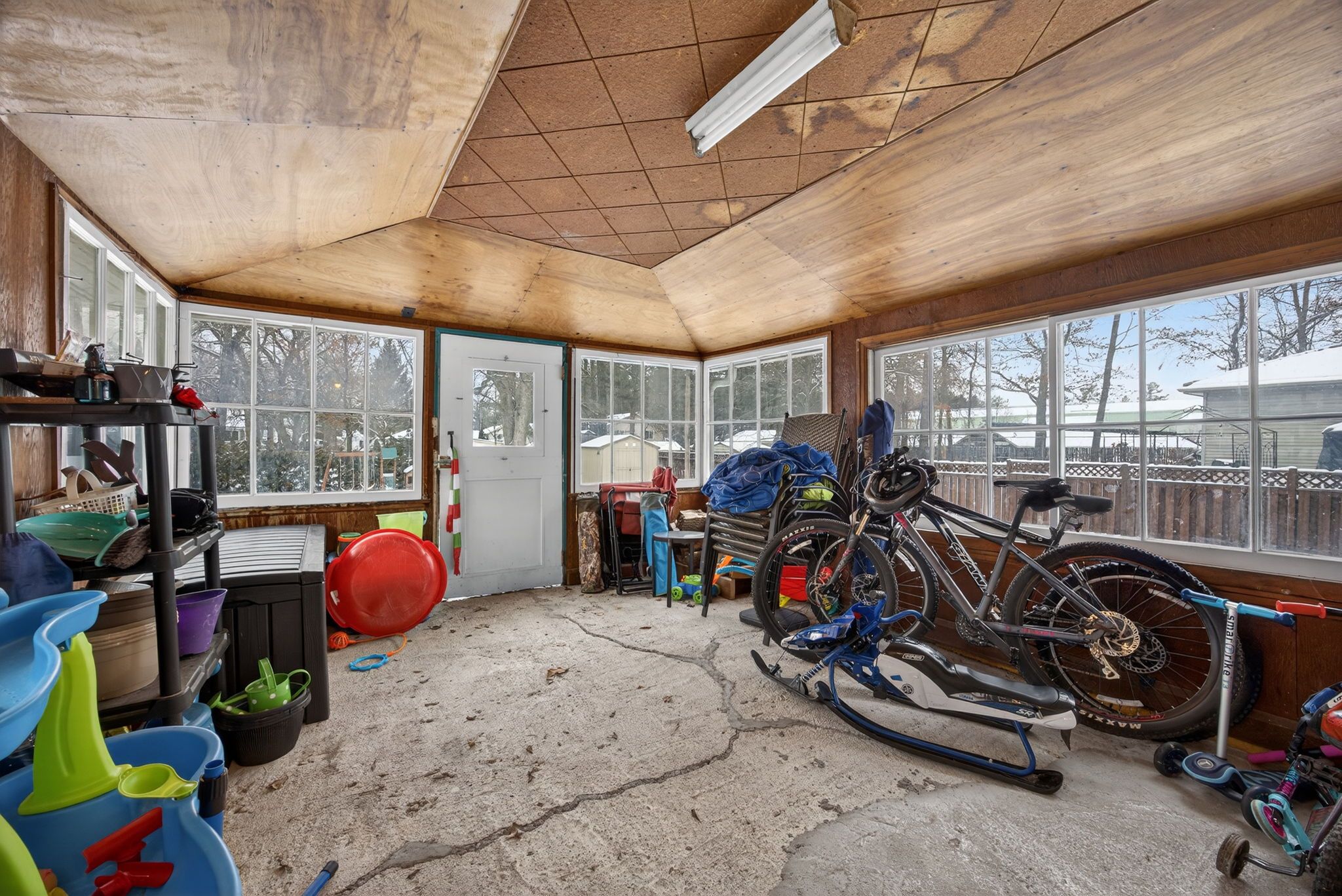 • Tranquil den overlooking a large, treed backyard for relaxing.