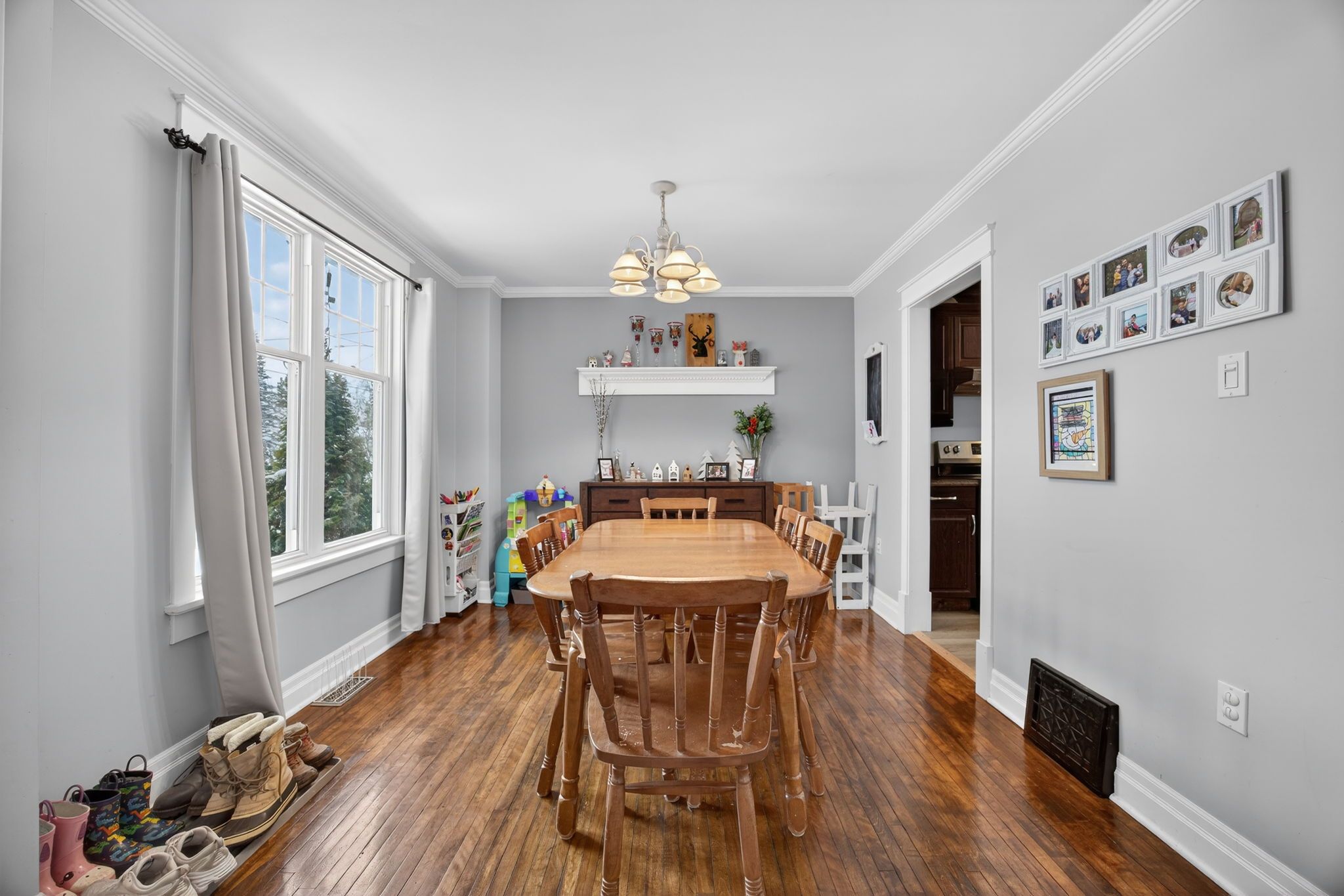 Discover timeless charm seamlessly blended with modern comfort-at a price you'll love. Tucked away on a highly sought-after cul-de-sac and surrounded by mature trees, this warm and welcoming home captures your heart the moment you step inside. Colonial baseboards and trim, a stately staircase, and beautifully worn rustic floors nod to the home's rich character, while the bright and open layout brings ease to everyday living. The main floor offers a spacious, functional kitchen, an inviting dining area, and a cozy living room that flows into a tranquil den overlooking the treed backyard-an ideal spot for a reading nook or peaceful retreat. Upstairs, you'll find three generously sized bedrooms and a well-appointed 4-piece updated bathroom. The bright, unfinished lower level with a separate entrance provides endless potential-whether you envision additional living space, an in-law suite, or a creative studio. All about location? Yes, this one checks all the boxes. Set on a quiet cul-de-sac with a huge fully fenced 66' x 165' lot and surrounded by mature trees, this property offers the space and privacy you've been dreaming of. Schools are nearby, and you're just a short drive from all the amenities angus has to offer. Welcome home!