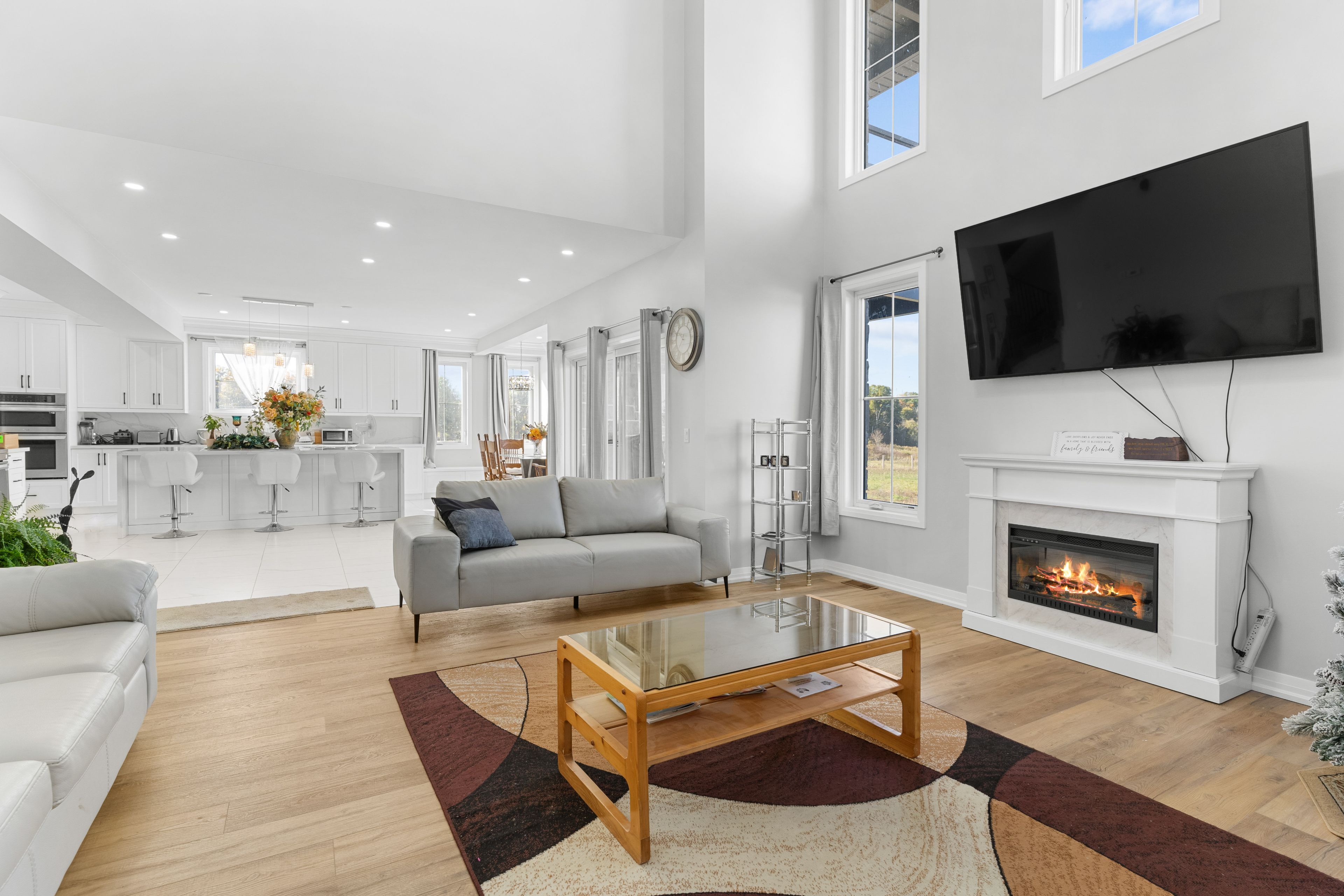 • Family room features impressive 19-foot ceilings for an open feel.