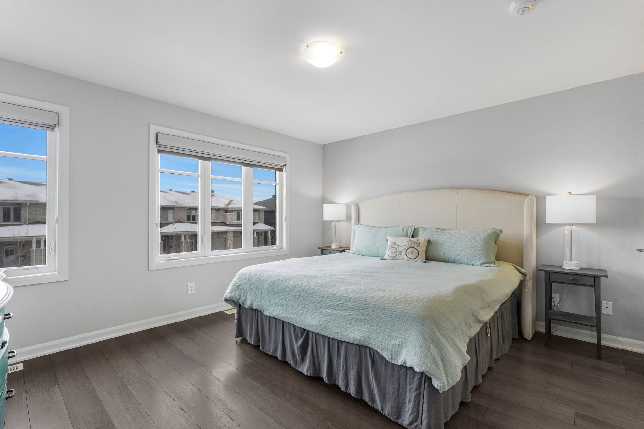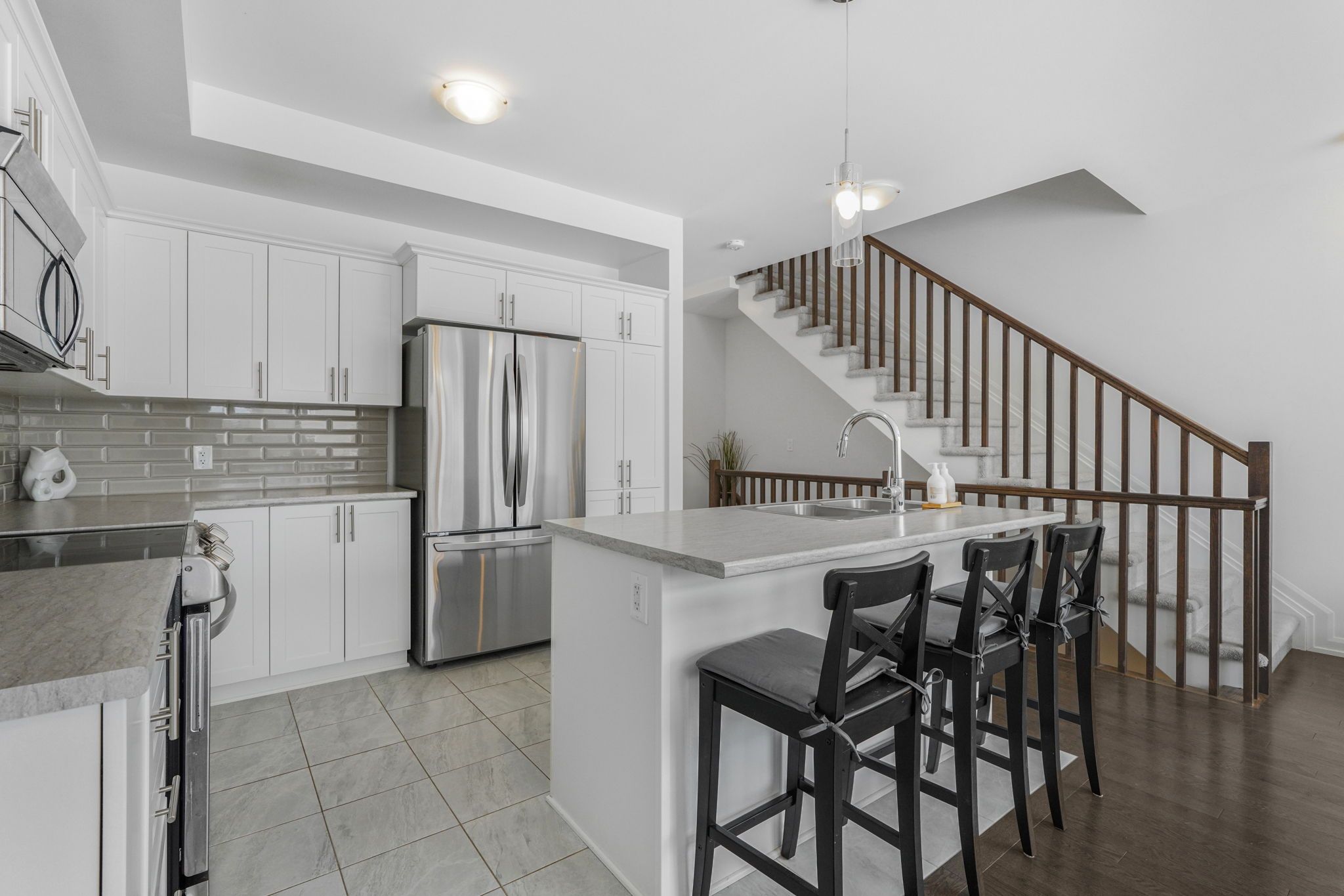 Welcome to 129 turquoise street. Build in 2021, this immaculate 3 bedroom, 2. 5 bathroom 1,680 sqft longwood arbois townhome model located in the heart of rockland in morris village! No rear neighbour backing onto a trail. Open concept main floor features hardwood & ceramic throughout, beautiful gourmet kitchen with a convenient island, lots of countertops, modern cabinets and stainless steel appliances. Upper level features laminate floors throughout, 3 spacious bedrooms, full secondary bathroom, en-suite and a convenient laundry room. Fully finished basement with large recreational room & plenty of storage space; perfect to entertain familyand friends. Featuring: single garage space, a/c & air exchanger. Walking distance to parks, schools and much more. This house isextremely well maintained! You won't be disappointed! Book your private showing today!