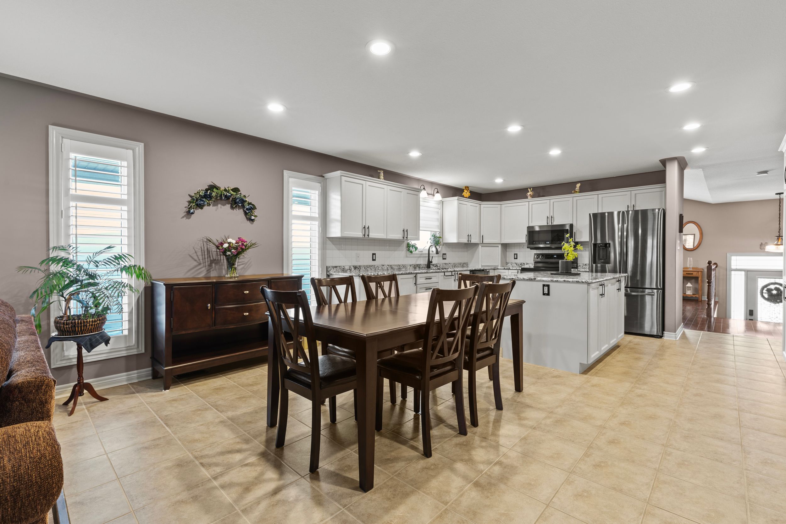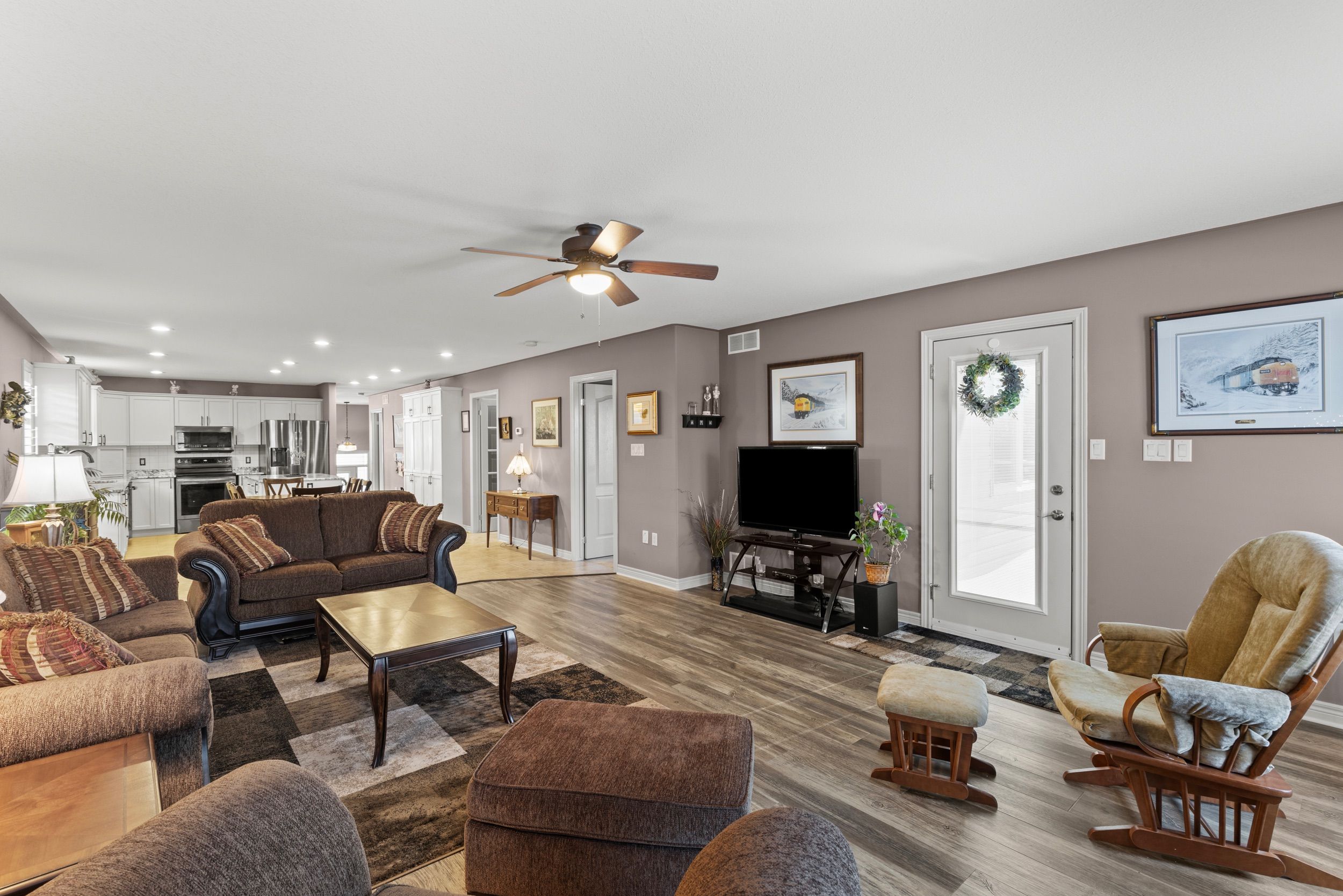 • Lower level with oversized windows, three bedrooms, and an inviting family area.