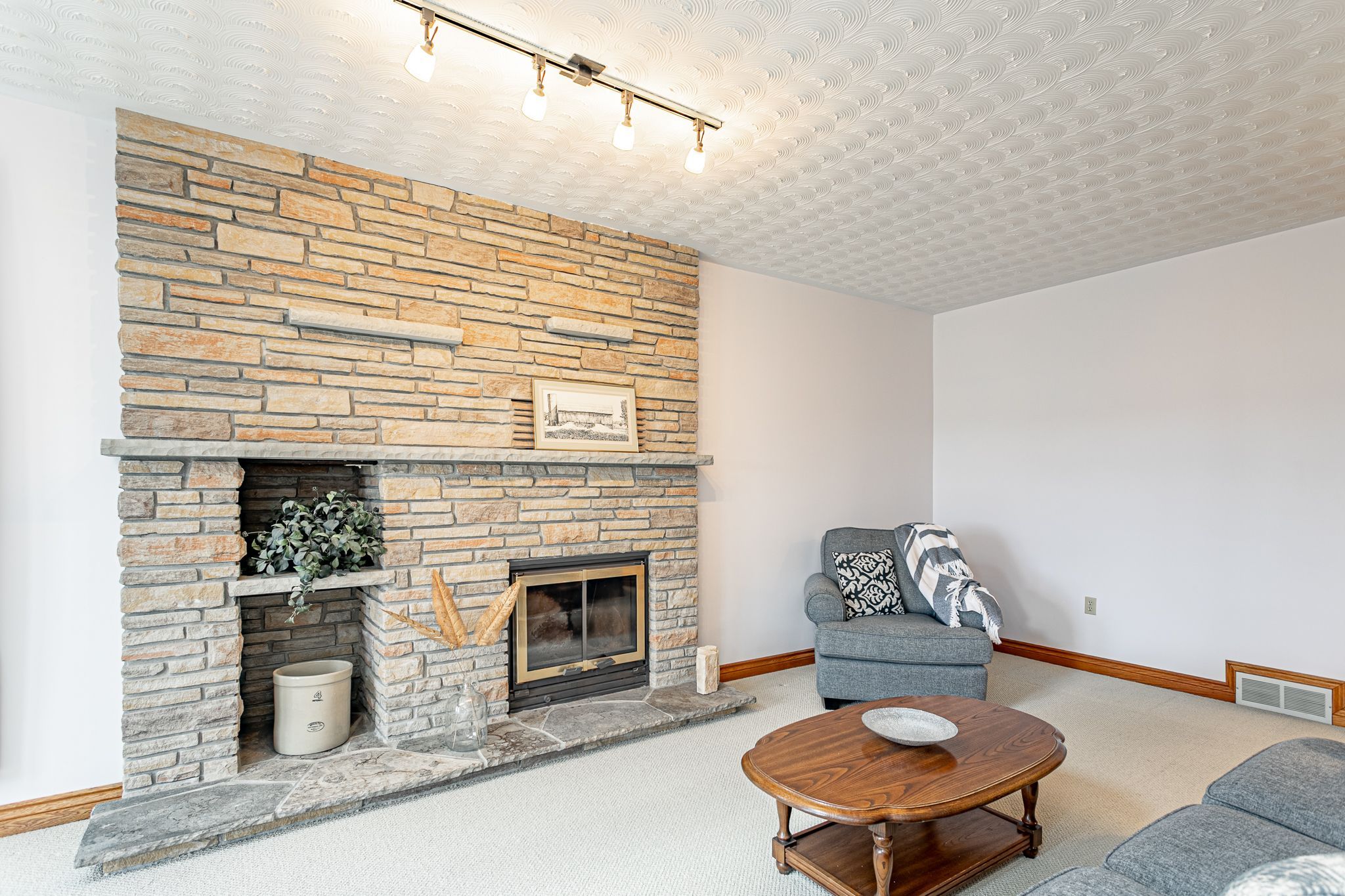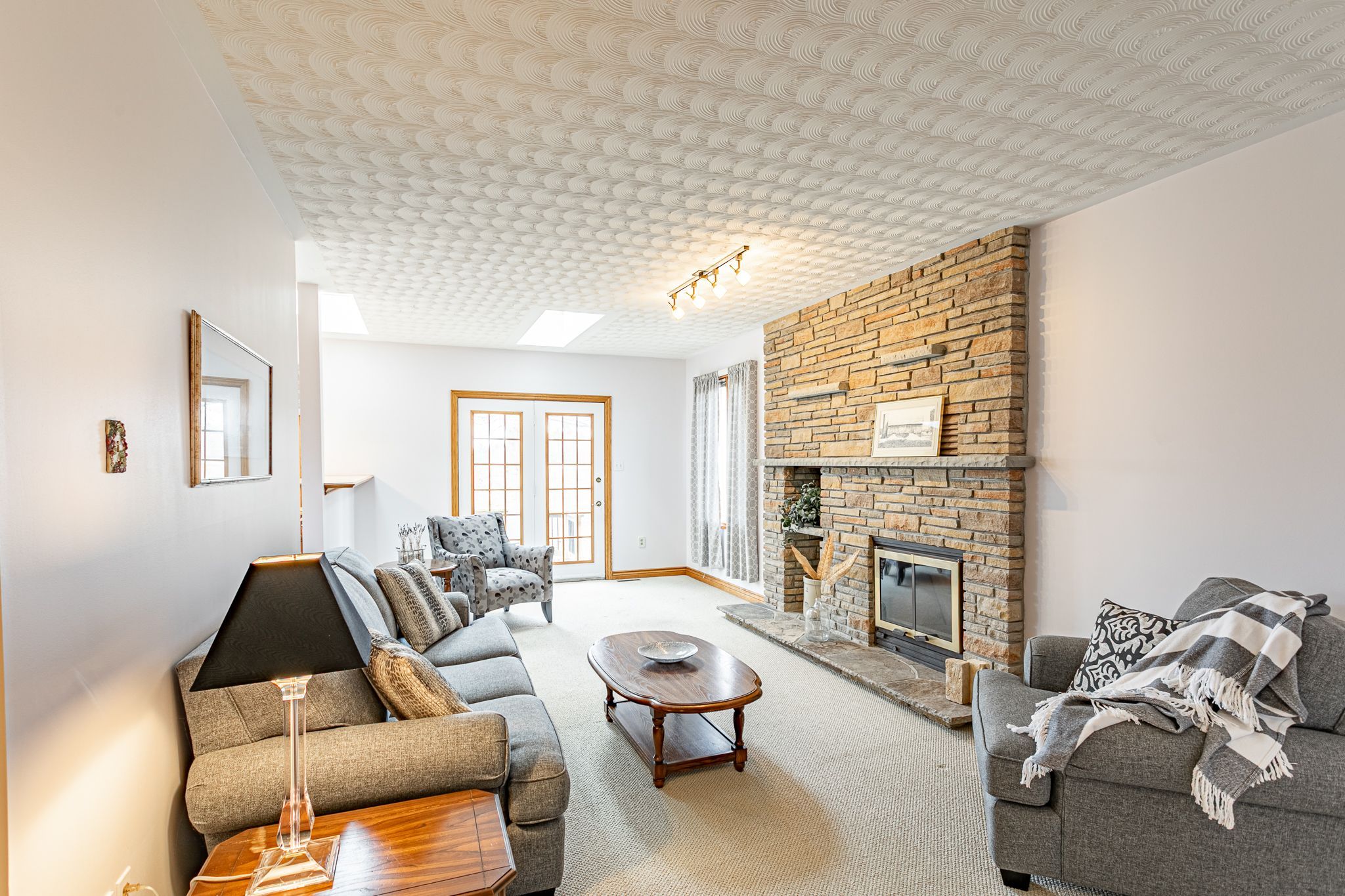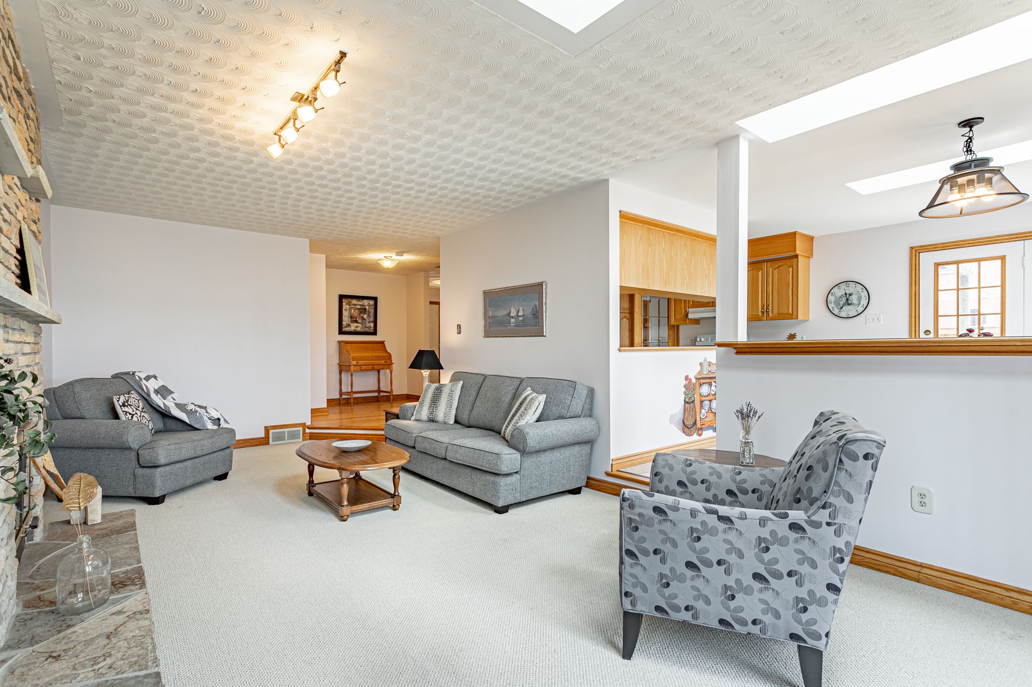 • Cozy sunken family room with a fireplace and access to a large deck.