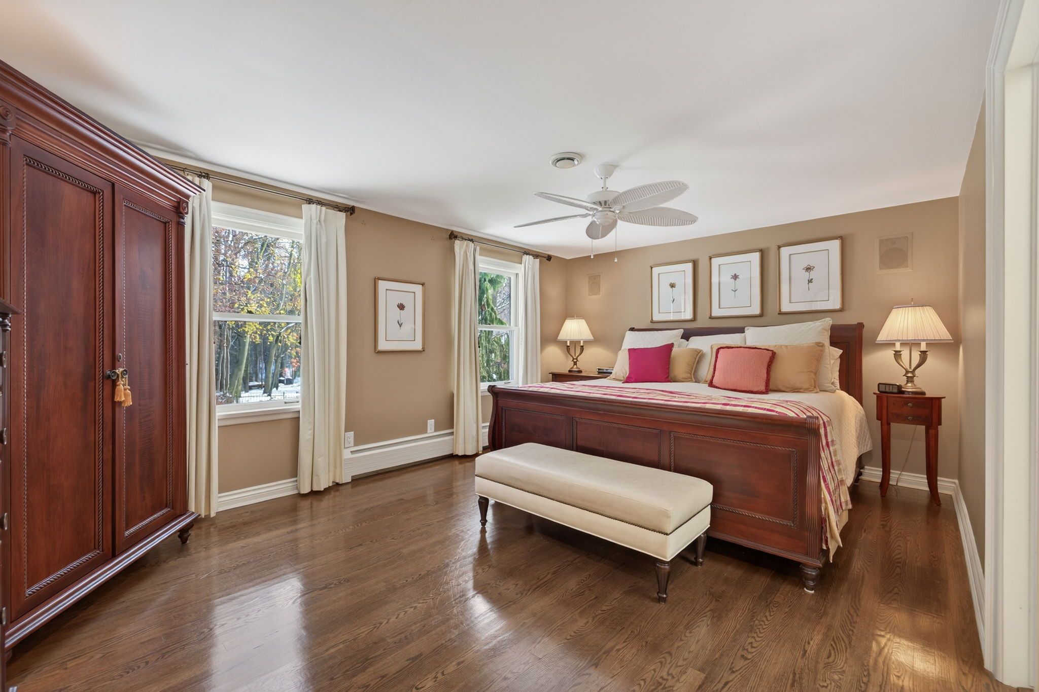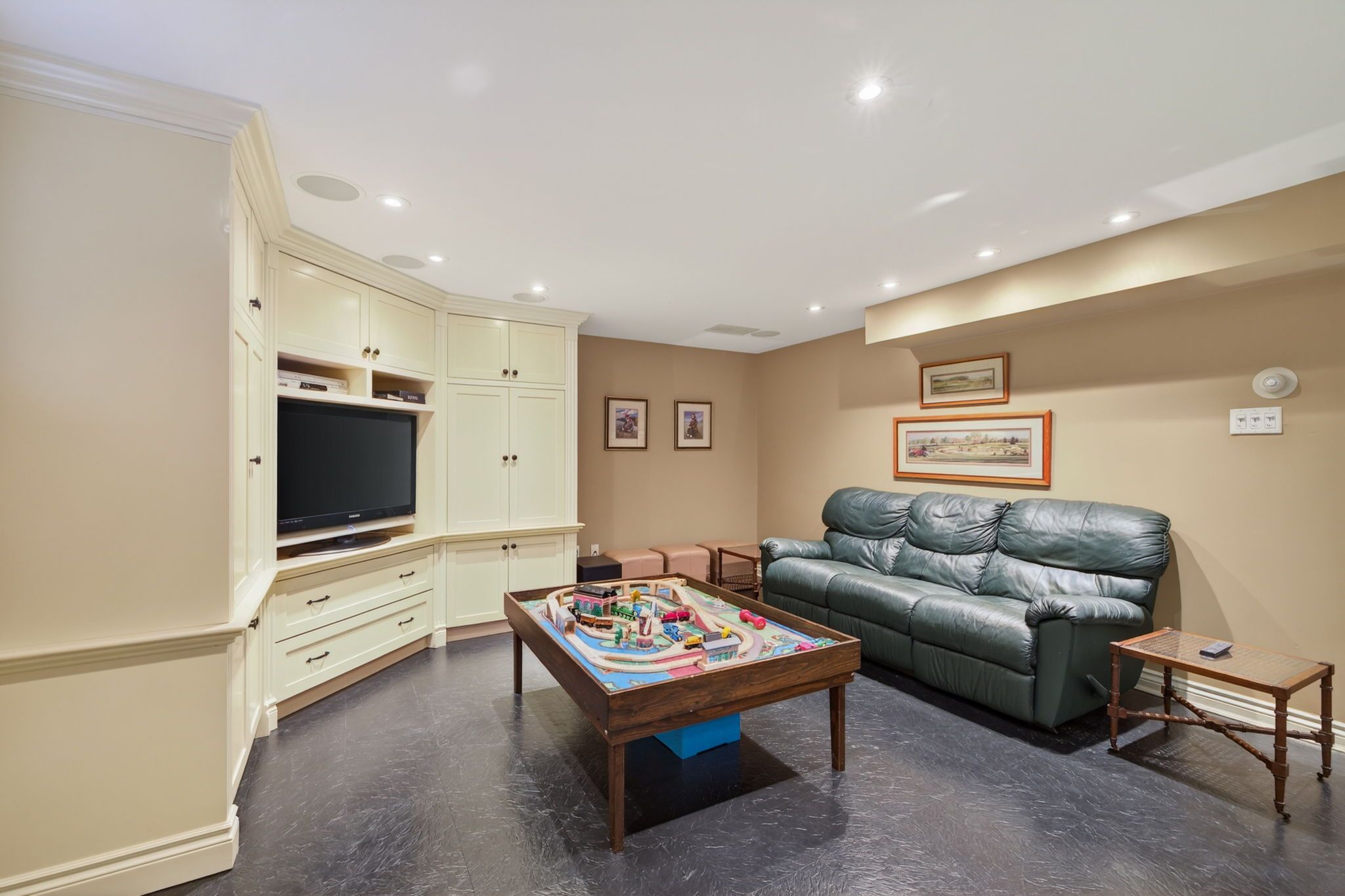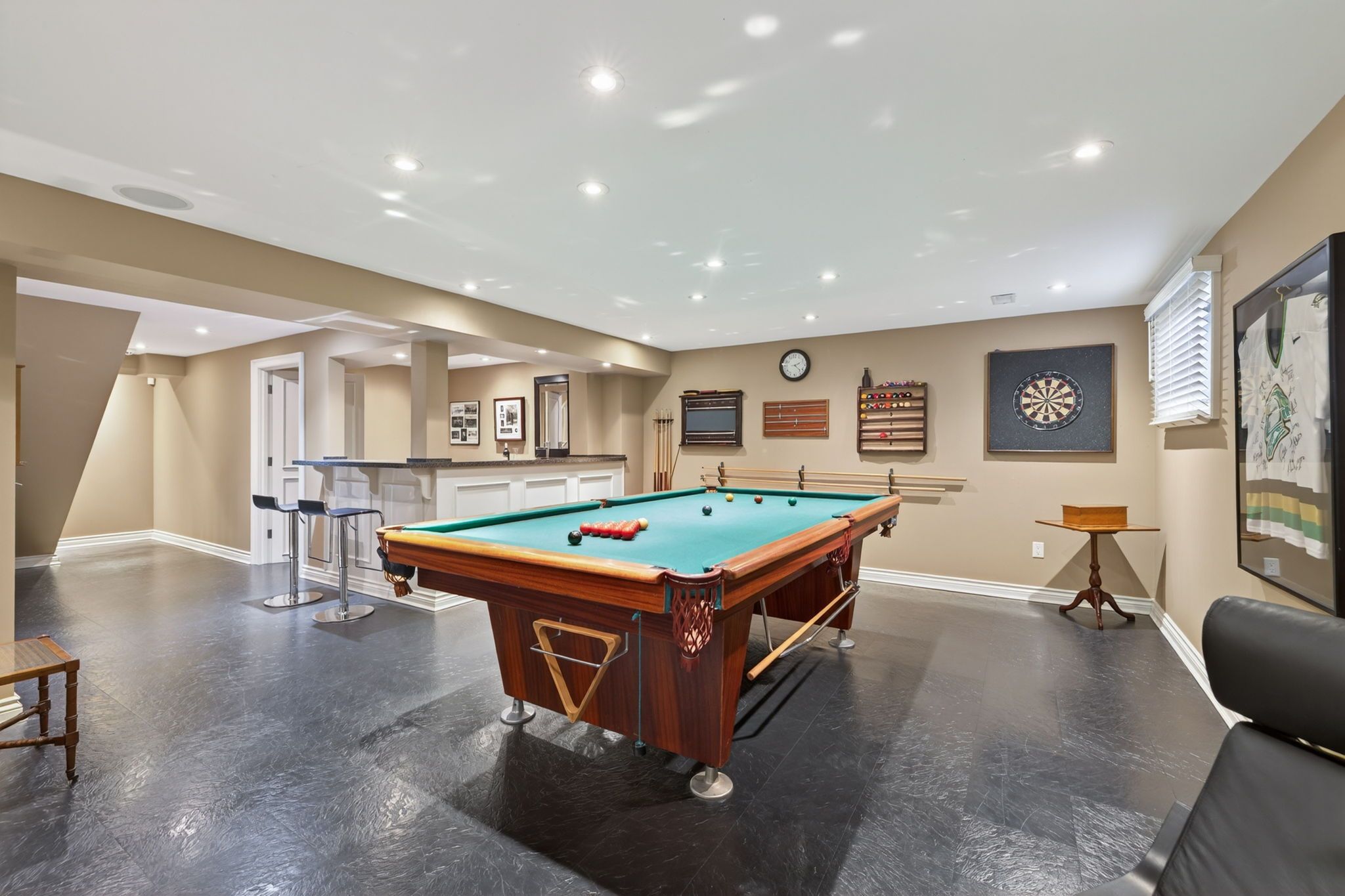 • Finished basement includes a rec room, extra bedroom, and wet bar.