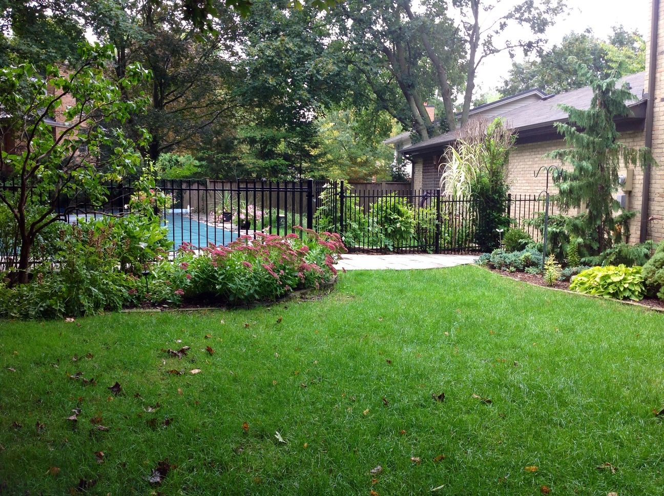 • Backyard features an in-ground pool, covered patio, and landscape lighting.