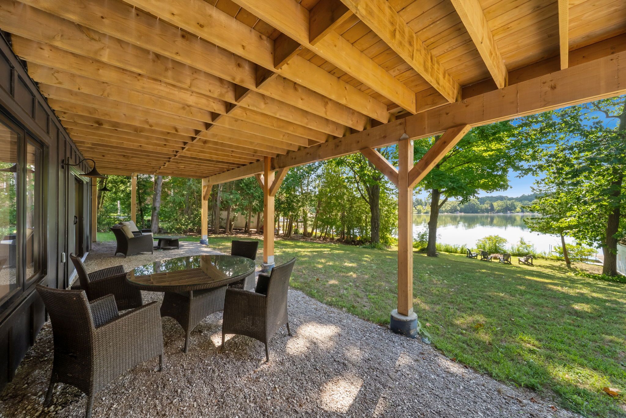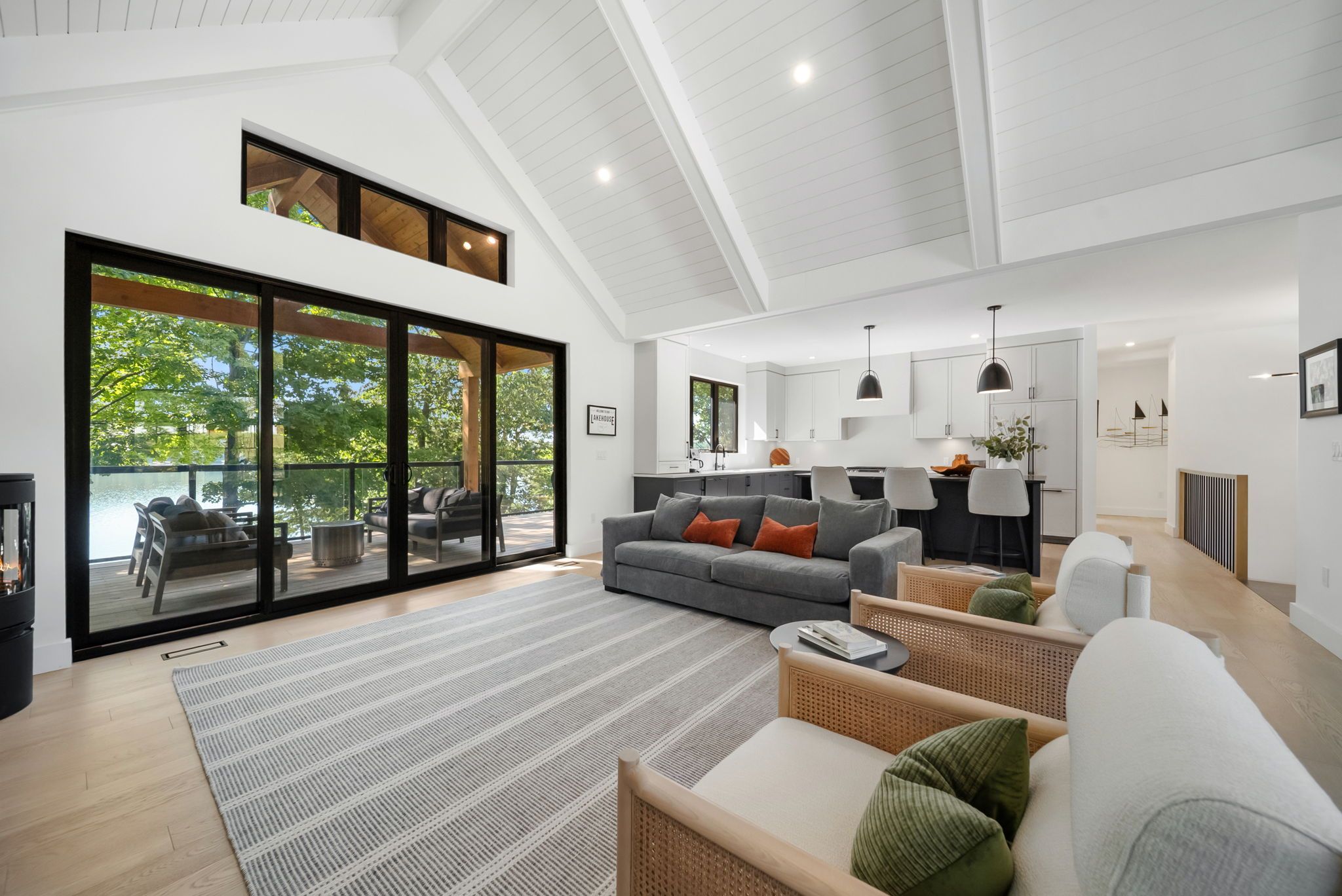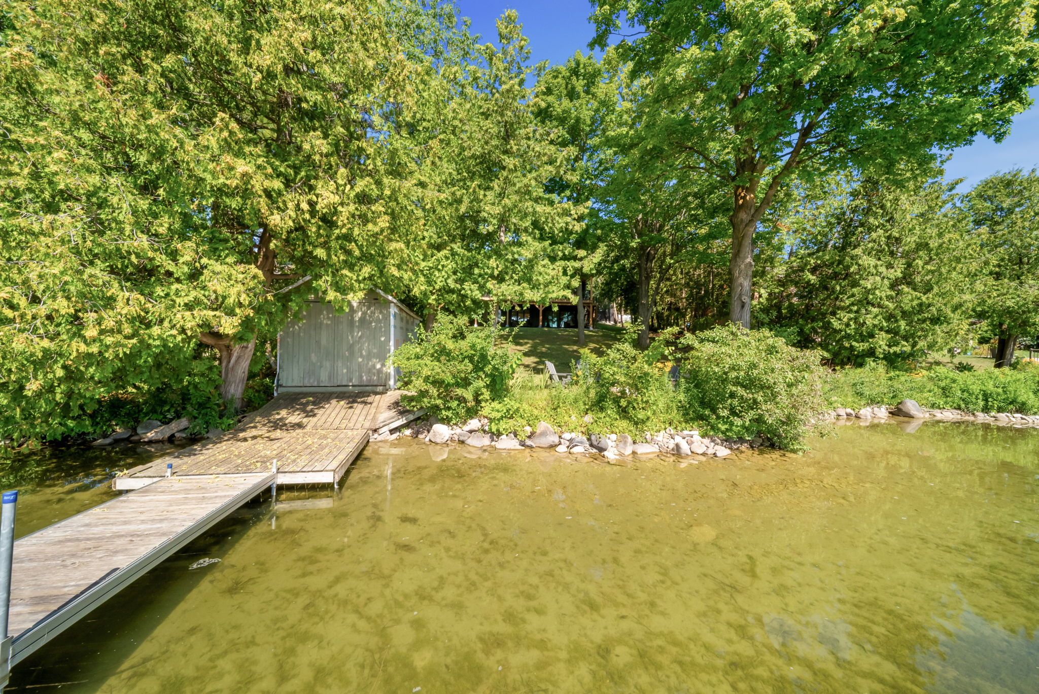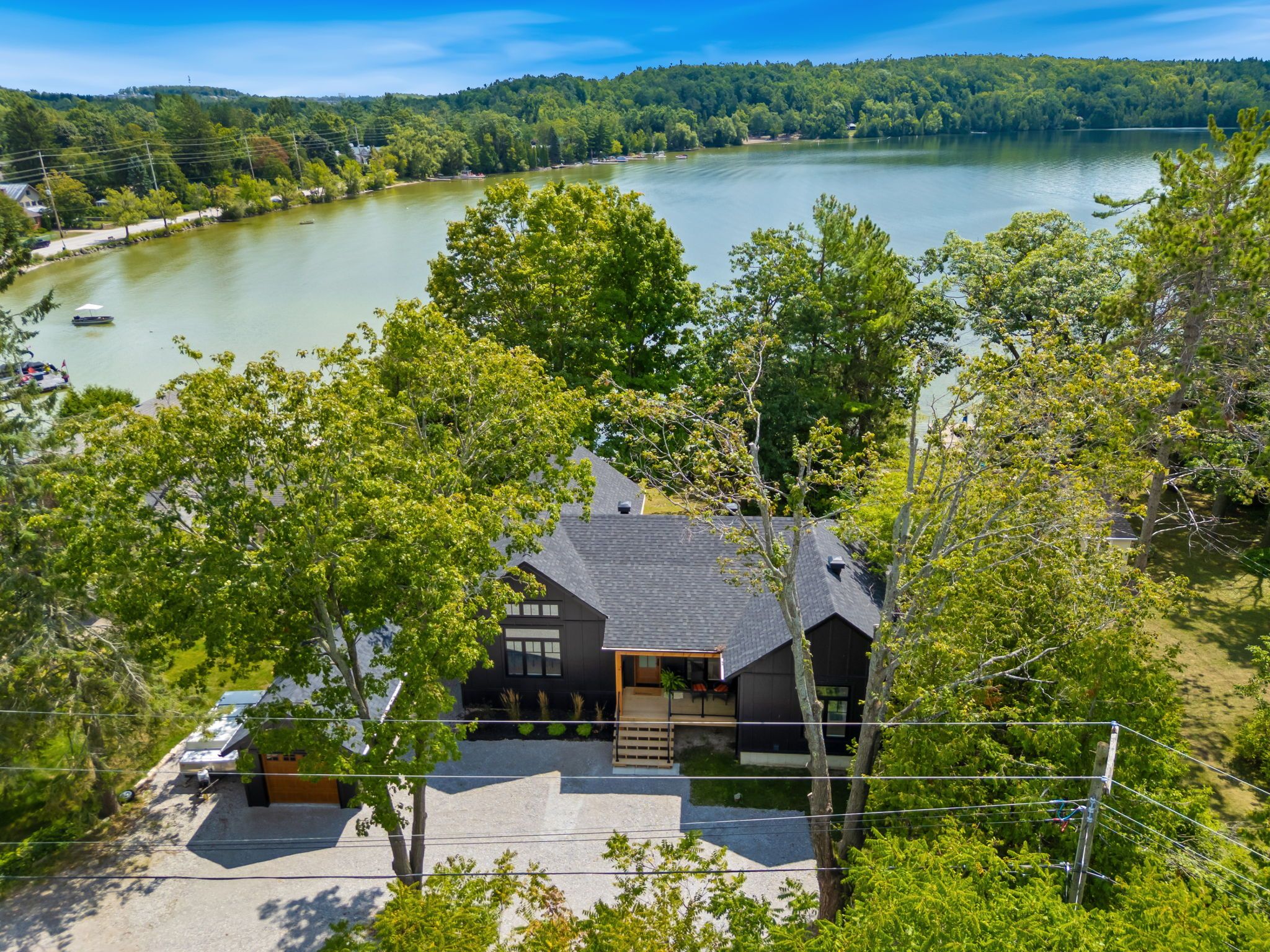 Welcome to serene bass lake living at one of oro-medonte's most coveted waterfront locations. Nestled on a beautifully treed lot with direct lake access, this exceptional lakefront bungalow offers over 3,000 sq ft of finished living space, blending comfort, tranquillity, and year-round enjoyment. Step inside to a bright, open-concept main level where the living, dining, and kitchen spaces seamlessly overlook the water, filling the home with natural light and breathtaking views. Spacious, light-filled rooms create an inviting atmosphere ideal for both everyday living and entertaining. Three bedrooms and a den are thoughtfully designed to provide comfort and privacy, including a peaceful primary suite that serves as a true retreat. The fully finished lower level with walk-out expands the living space and offers endless possibilities for guests or recreation-while maintaining seamless access to the outdoors and waterfront lifestyle. Outside, enjoy over 80 feet of sandy beach frontage, a private dock and boathouse, and endless opportunities for swimming, boating, fishing, kayaking, or simply relaxing lakeside by the firepit. Sip your morning coffee on the deck while taking in the tranquil water views, and unwind in the evenings surrounded by nature. Mature trees, generous frontage, and a quiet setting create an idyllic backdrop for cottage-style living. A single detached garage provides added convenience and storage for vehicles and lake toys alike. Located just minutes from the amenities of orillia and offering quick access to highway 12, shopping, and year-round recreation, this property delivers the perfect balance of accessibility and privacy. Whether you're seeking a full-time residence or a weekend escape, this bass lake haven offers the ultimate lakeside lifestyle.