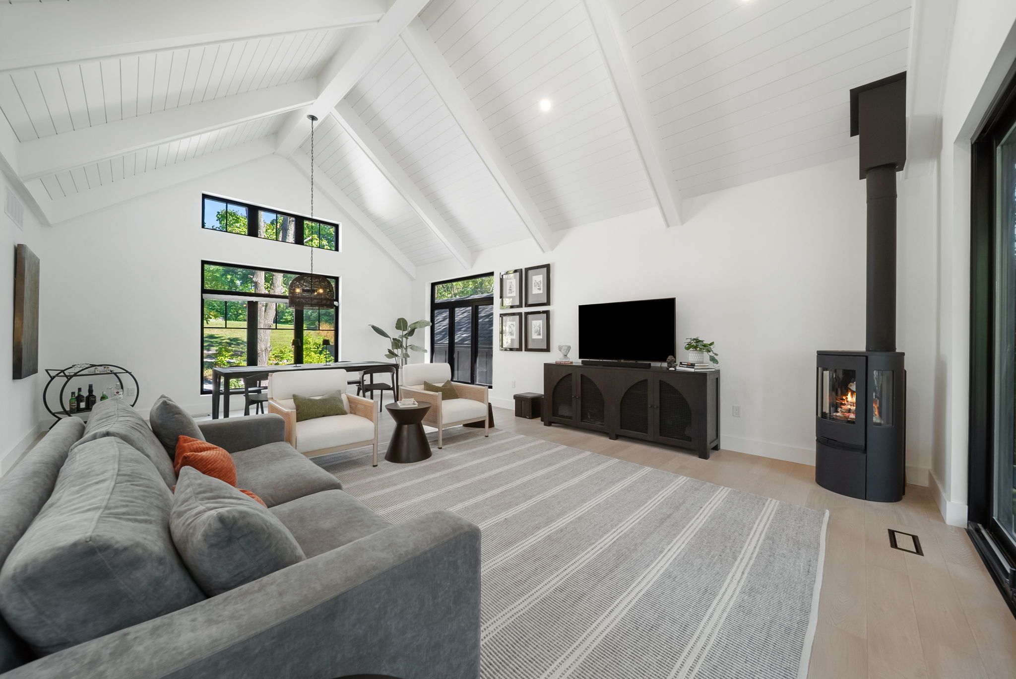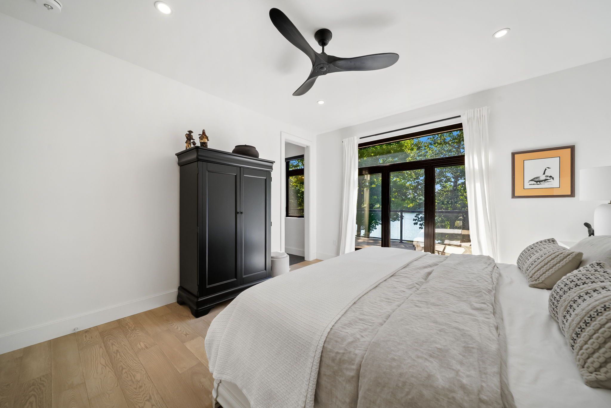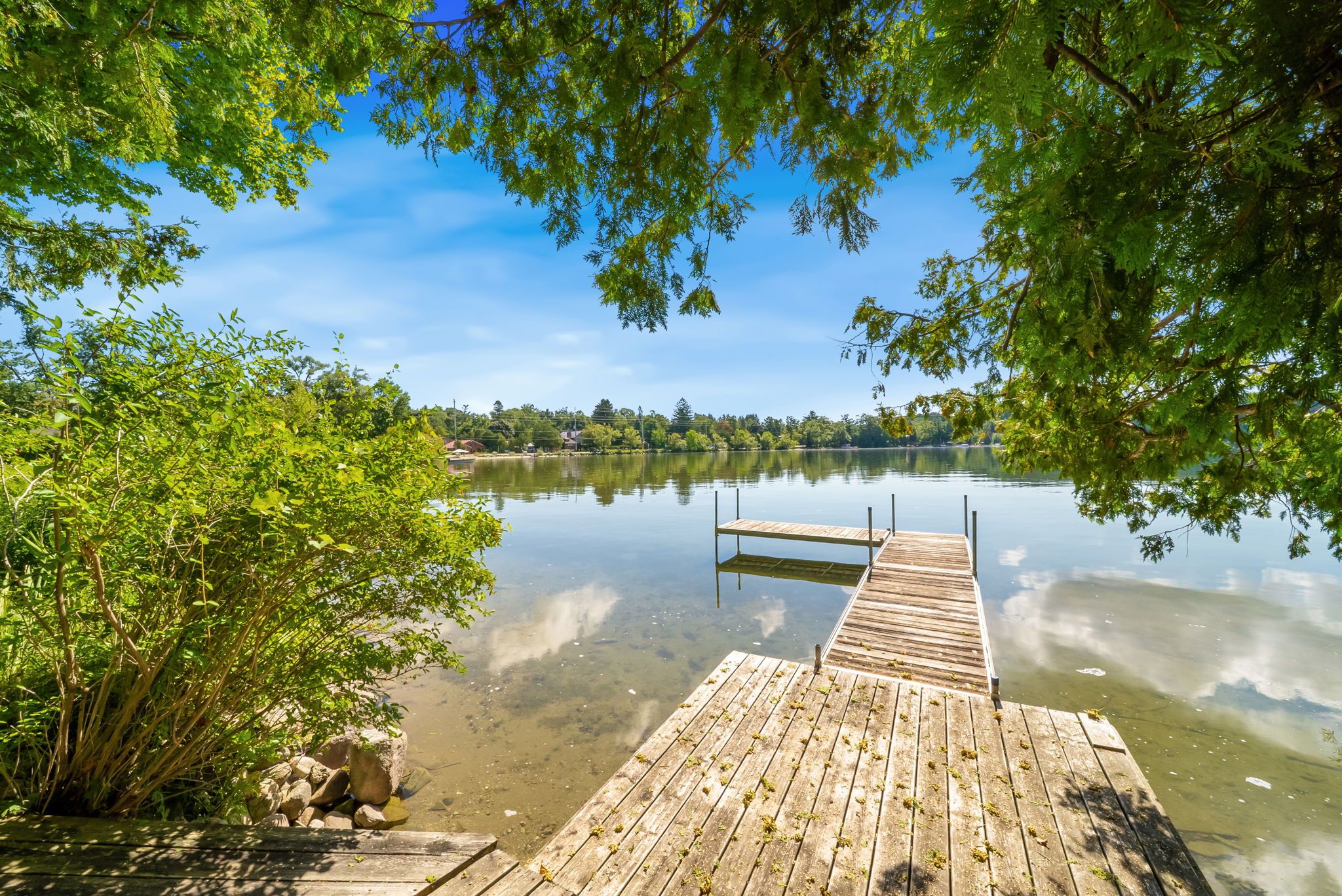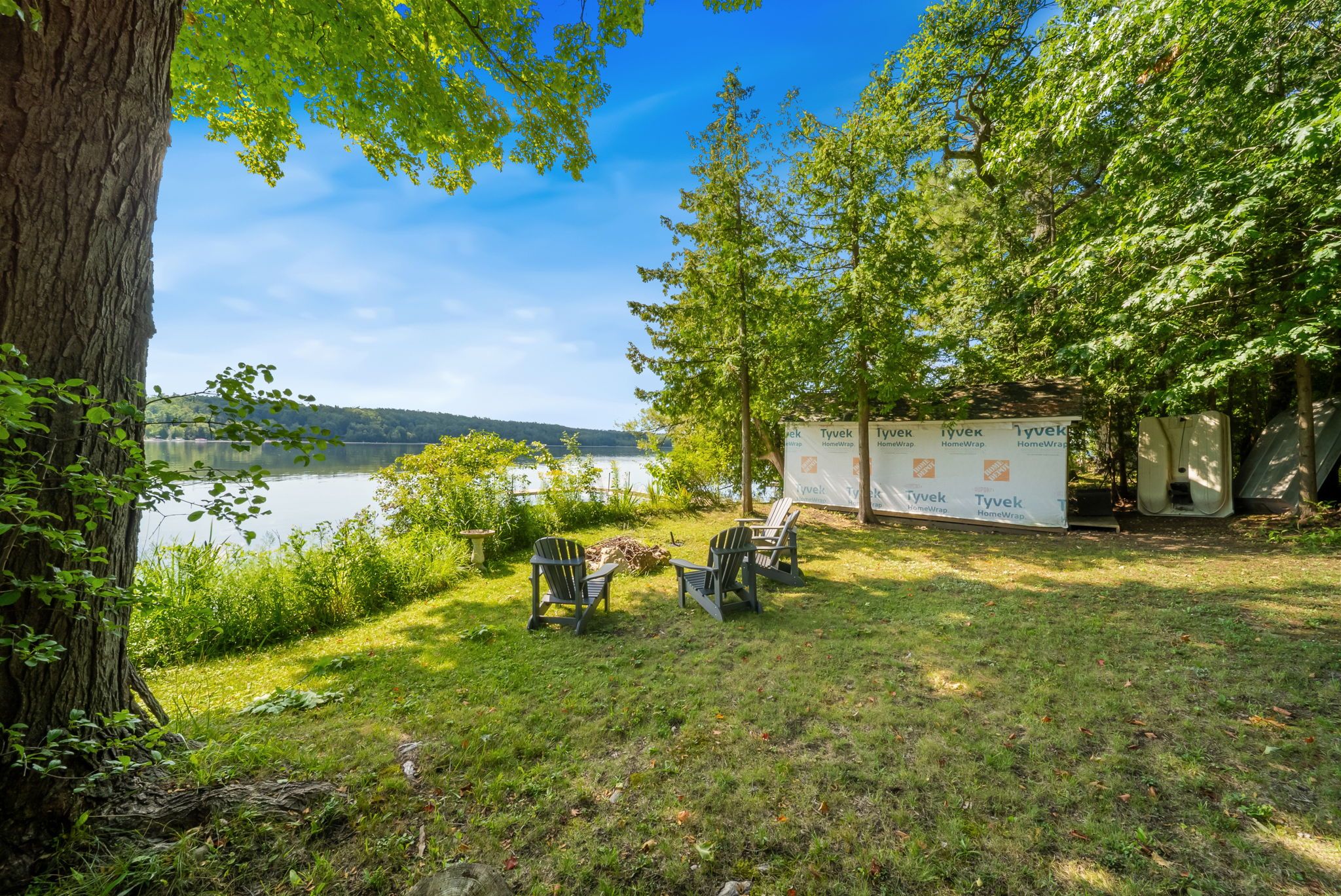 Welcome to serene bass lake living at one of oro-medonte's most coveted waterfront locations. Nestled on a beautifully treed lot with direct lake access, this exceptional lakefront bungalow offers over 3,000 sq ft of finished living space, blending comfort, tranquillity, and year-round enjoyment. Step inside to a bright, open-concept main level where the living, dining, and kitchen spaces seamlessly overlook the water, filling the home with natural light and breathtaking views. Spacious, light-filled rooms create an inviting atmosphere ideal for both everyday living and entertaining. Three bedrooms and a den are thoughtfully designed to provide comfort and privacy, including a peaceful primary suite that serves as a true retreat. The fully finished lower level with walk-out expands the living space and offers endless possibilities for guests or recreation-while maintaining seamless access to the outdoors and waterfront lifestyle. Outside, enjoy over 80 feet of sandy beach frontage, a private dock and boathouse, and endless opportunities for swimming, boating, fishing, kayaking, or simply relaxing lakeside by the firepit. Sip your morning coffee on the deck while taking in the tranquil water views, and unwind in the evenings surrounded by nature. Mature trees, generous frontage, and a quiet setting create an idyllic backdrop for cottage-style living. A single detached garage provides added convenience and storage for vehicles and lake toys alike. Located just minutes from the amenities of orillia and offering quick access to highway 12, shopping, and year-round recreation, this property delivers the perfect balance of accessibility and privacy. Whether you're seeking a full-time residence or a weekend escape, this bass lake haven offers the ultimate lakeside lifestyle.
