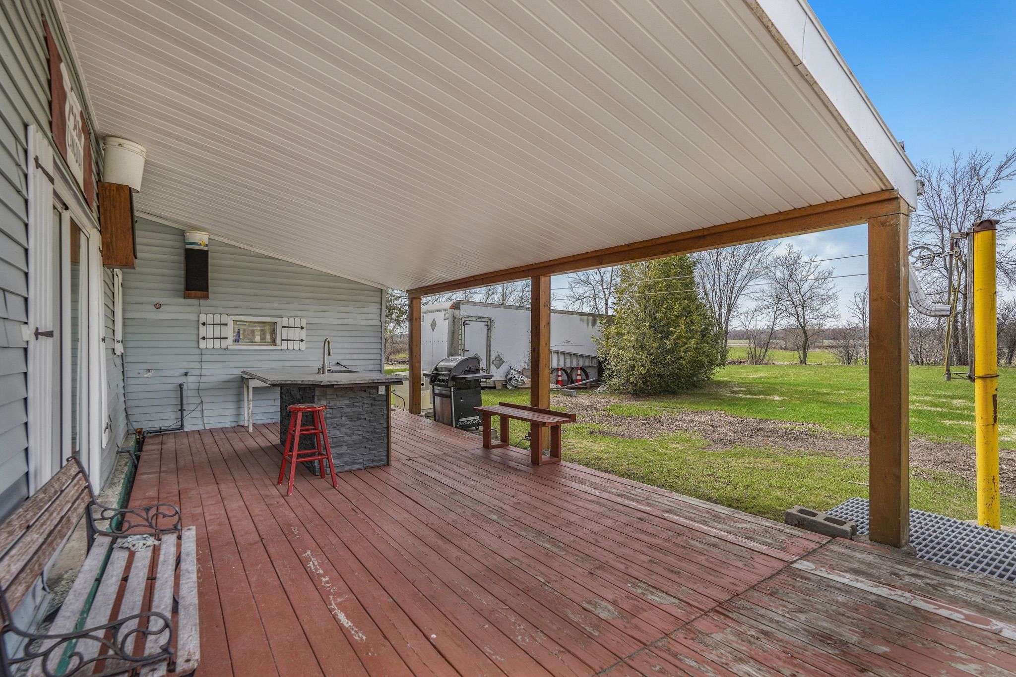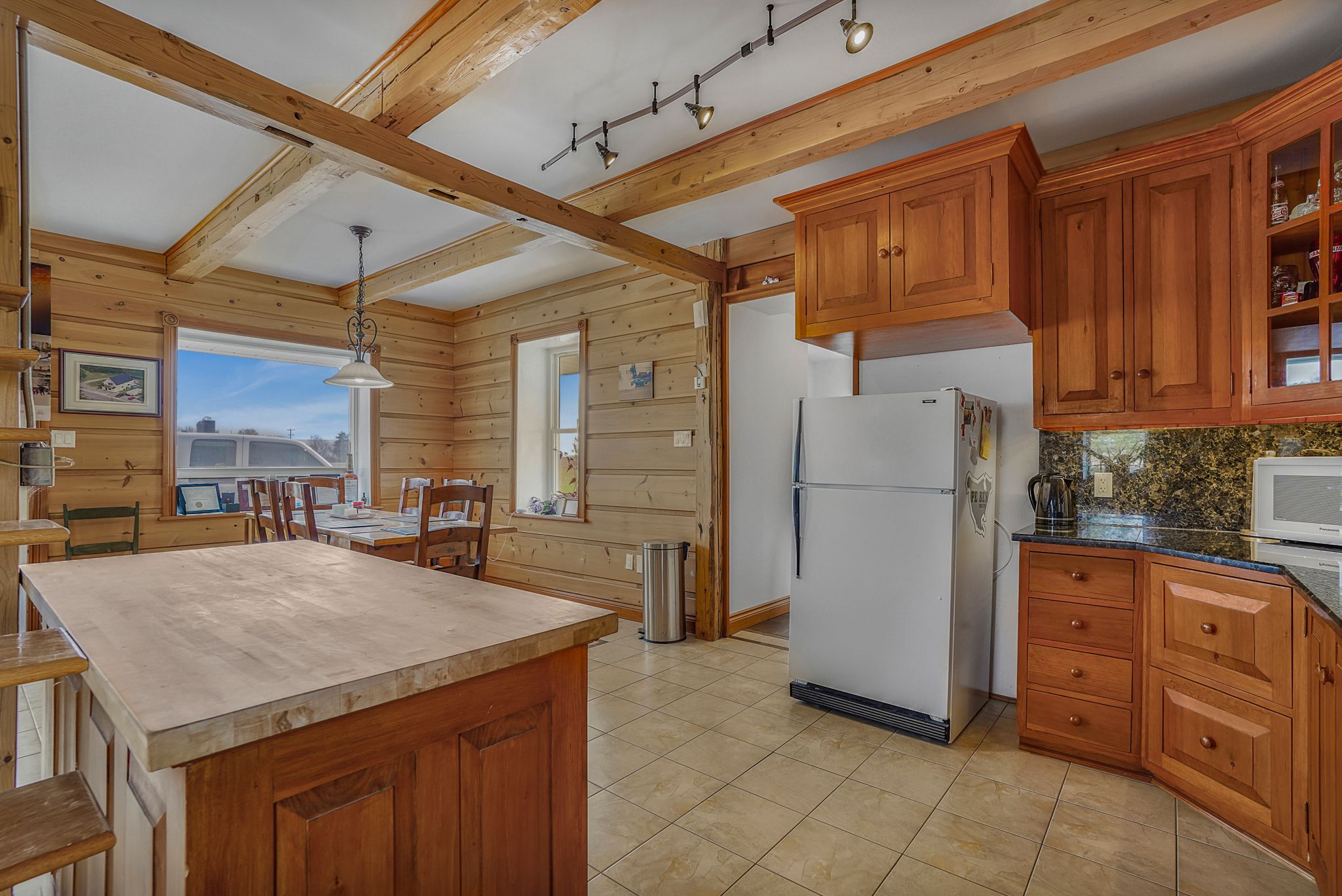 Welcome to 1290 tannery road, a beautifully maintained, turnkey home tucked away on a quiet road, offering the perfect blend of comfort, privacy, quality craftsmanship, and convenience. Ideal for first-time buyers, downsizers, or anyone looking for a move-in-ready property without compromising on charm, this inviting 2-bedroom, 1-bathroom home has been lovingly cared for throughout. Step inside and enjoy a warm, welcoming interior featuring hardwood floors, radiant in-floor heating, pine-finished interior walls, a stunning cross-timber ceiling, and a cozy gas fireplace that adds to the home's character and comfort. The updated kitchen is both stylish and functional, complete with granite countertops and backsplash, custom cabinetry, and a movable island to suit your needs. Outside, the lifestyle continues. With no rear neighbours, a peaceful creek-side backyard, and an impressive outdoor kitchen setup under a large covered deck with sink and built-in natural gas bbq, this property is perfectly set up for relaxing or entertaining all season long. Additional features include a heated detached garage, natural gas kohler generator, and many important recent updates including windows, doors, roof, and more. Located just minutes from highway 417, this home offers easy access for commuters while still enjoying a peaceful, country-like setting close to amenities. Even better - the home can be sold fully furnished, making this a rare and truly turnkey opportunity. A home like this is much more than meets the eye - beautifully cared for, full of thoughtful features, and ready for its next chapter.