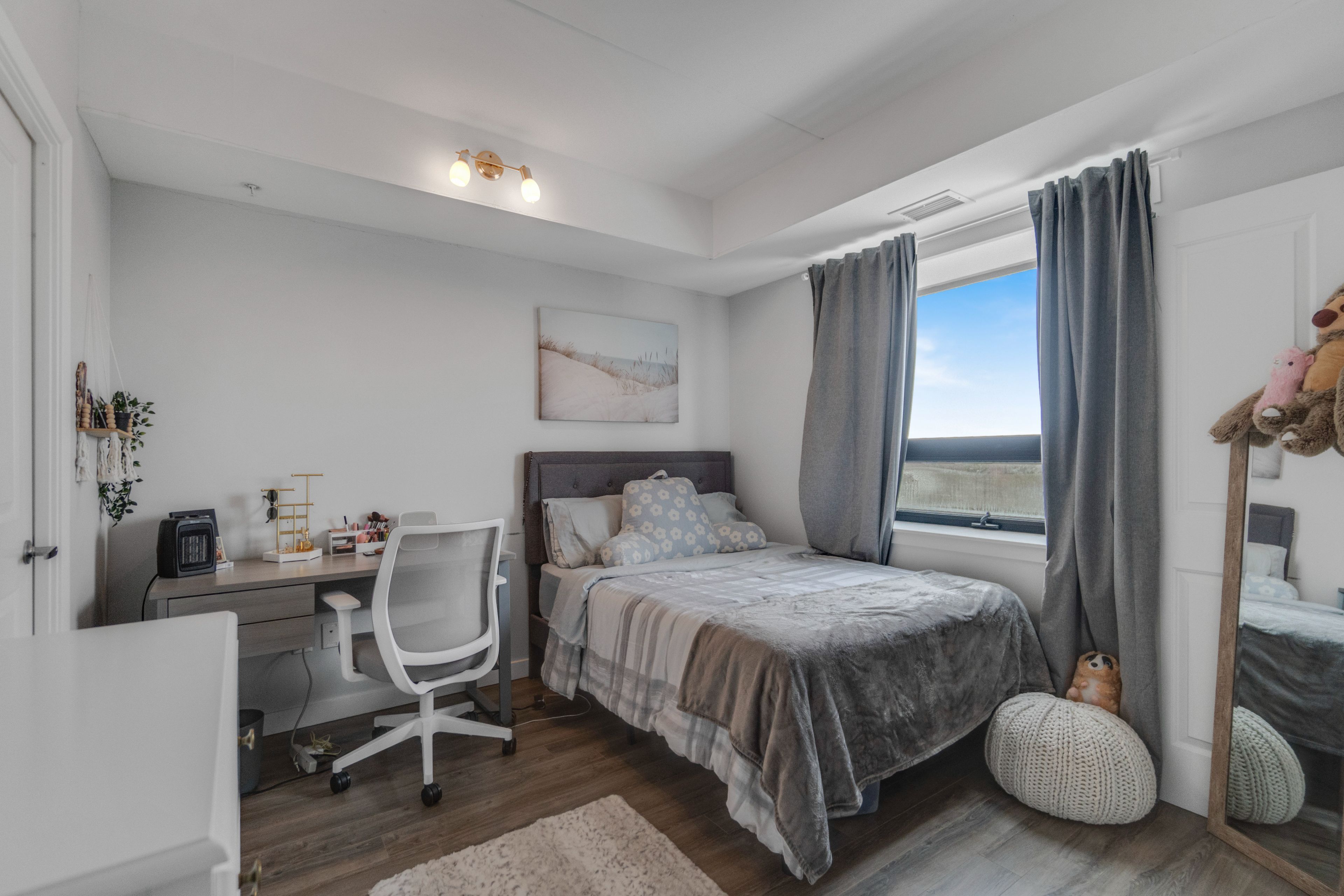 3 bed + 3 full baths (each bedroom has its own ensuite!) approx 918 sq ft with balcony + conservation views. Modern finishes (9' ceilings, quartz, s/s appliances). Rented at $3,000/month with tenants secured for the next 2 years = stable income + low turnover in a prime location near transit, shopping/dining & the university of guelph. Includes 1 parking + amenities (study lounge, rooftop terrace, gym). Bright open-concept layout backing onto protected conservation lands with serene, unobstructed views. Building amenities include study lounge with free wi-fi, secure lobby with video monitoring, and rooftop terrace overlooking lush green space. Ideal for investors or end users.