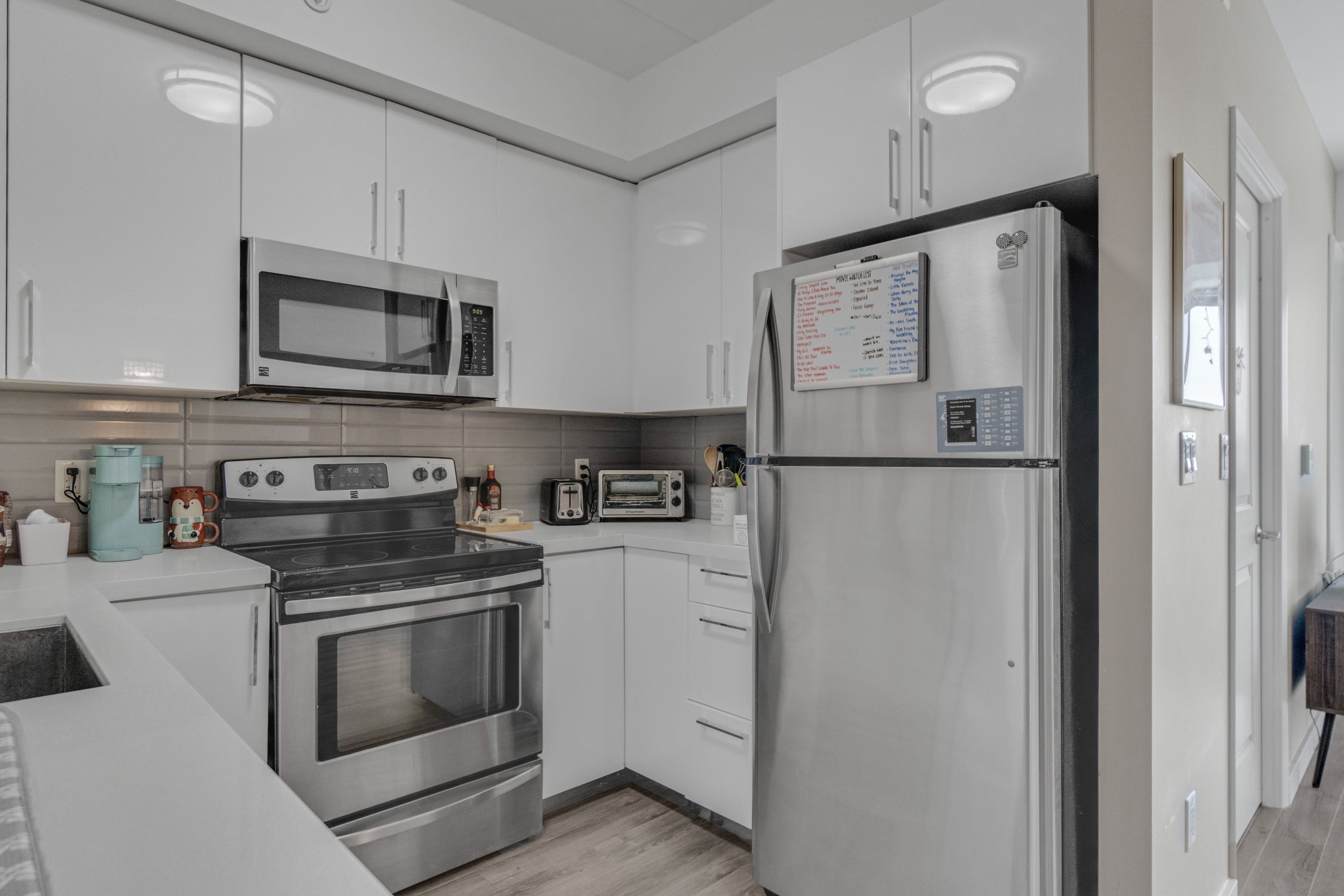 • Modern finishes including quartz countertops and stainless steel appliances.