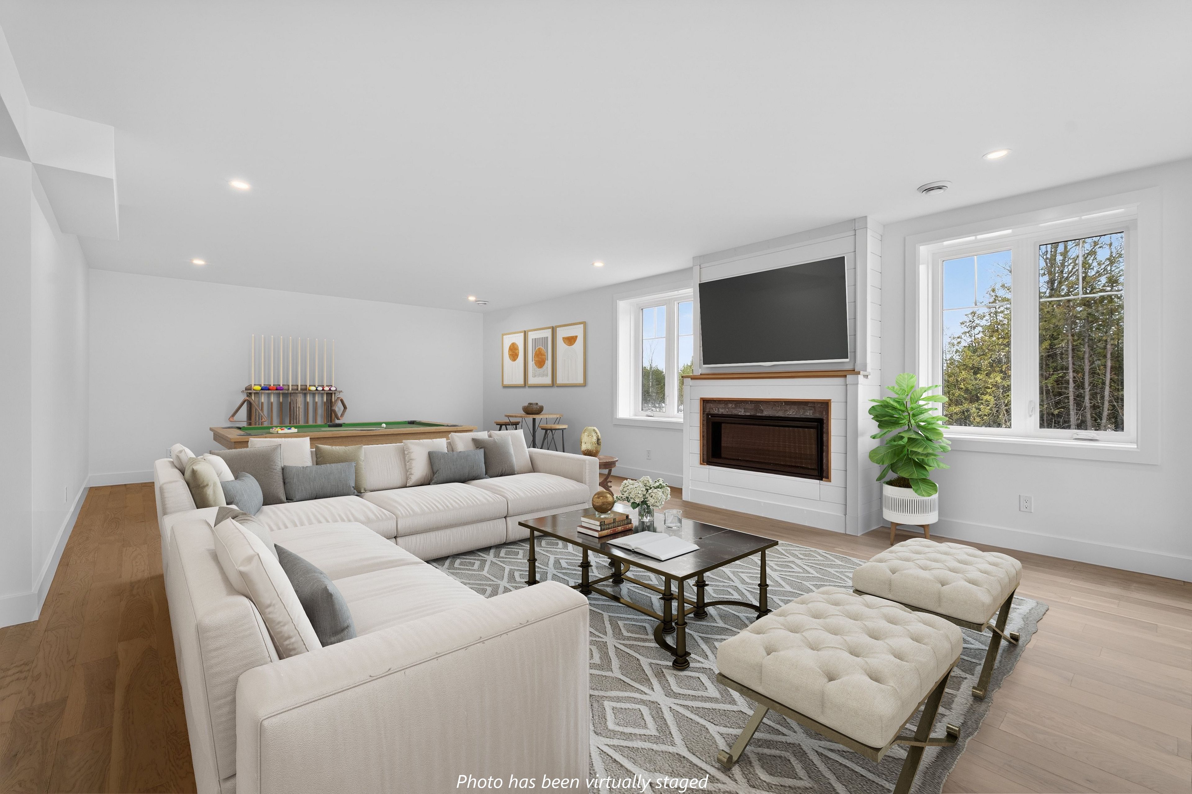 • Bright walk-out lower level includes a large rec room and electric fireplace.