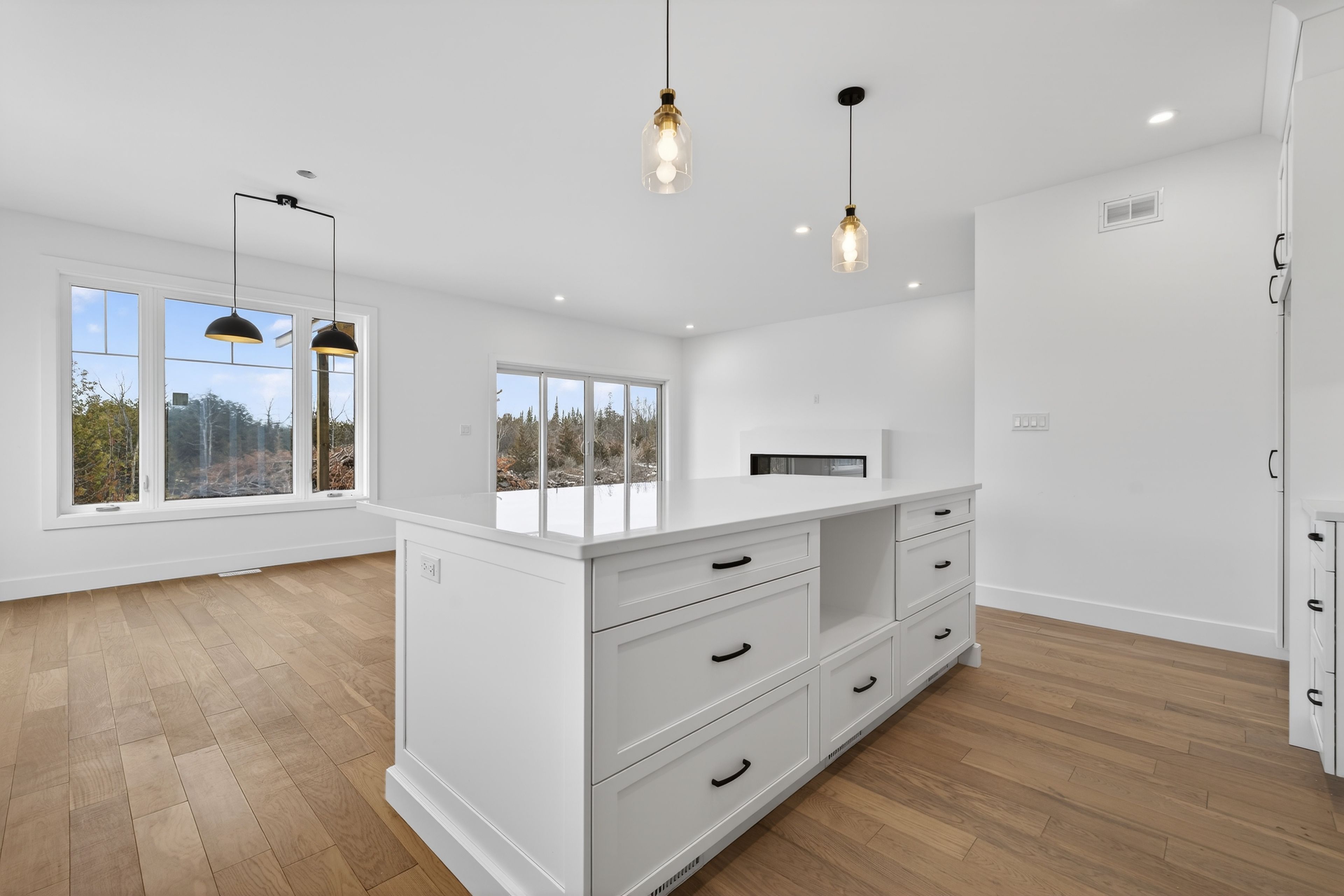 Just 6 minutes west of kingston, this brand new macadam homes custom-built 1800+ sf bungalow offers 2+2 bedrooms and 3 baths on a very private 3. 1-acre parcel of land. With over 3000sf of upscale living space and an attached triple-car garage, this home will be sure to impress even the most discerning of buyers. Your oversized kitchen has an extra-large island, quartz countertops, a walk-through butler's pantry and is open to both a dining area and great room that overlook the covered rear deck and yard through stunning 10ft patio doors. The spacious master has a luxurious ensuite that features a stand-alone soaker tub, walk-in tiled/glass shower and a quartz-topped double vanity. The largely finished and very bright walk-out lower level includes a massive rec room with electric fireplace and tv hookup above. The home's additional features of note include open floor plan with 9ft ceilings; propane fireplace with custom surround; main floor laundry; oversized windows on both levels; hardwood and ceramic throughout. The upgraded insulation package with foam beneath the ground level concrete slab and additional r7. 5 foam on main floor exterior walls, provides extra comfort and minimizes energy costs. This home has it all. For buyers willing to act quickly, there is still an opportunity to select your own exterior finishes! Call to book a showing before it's too late.