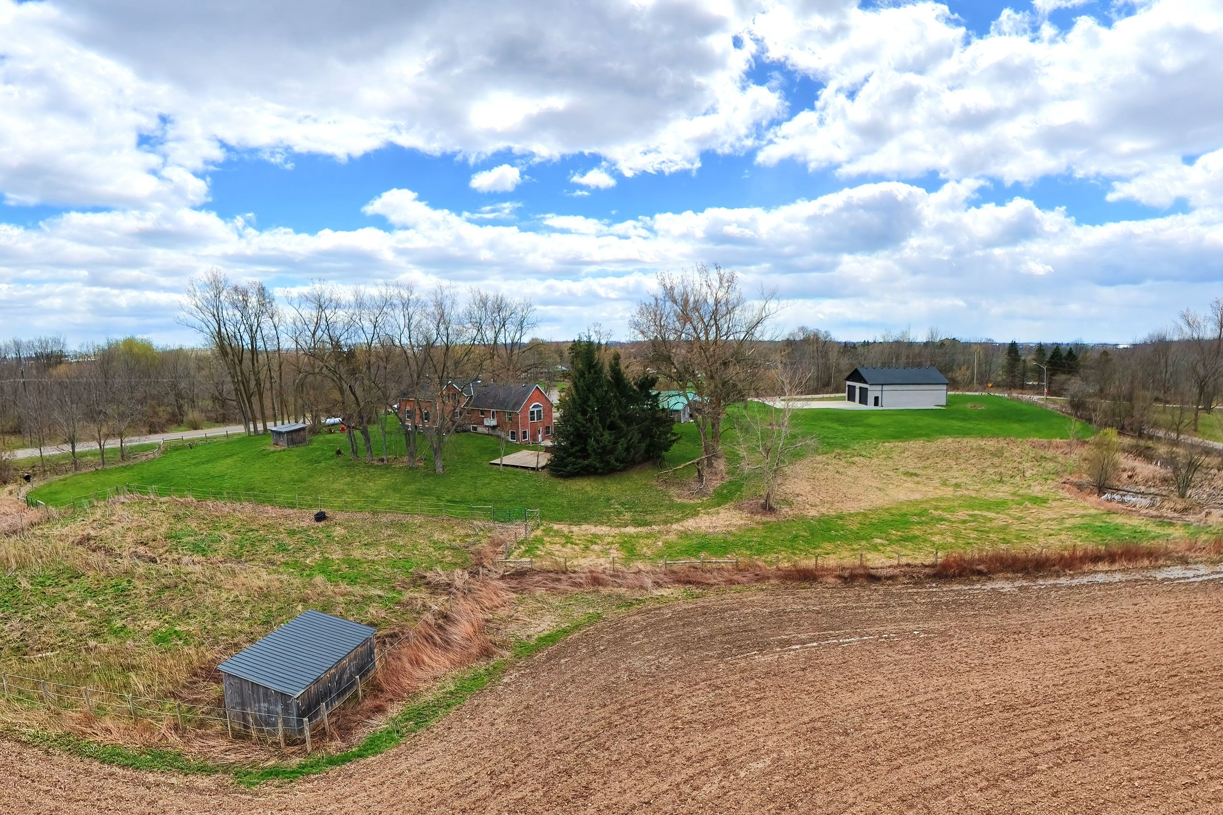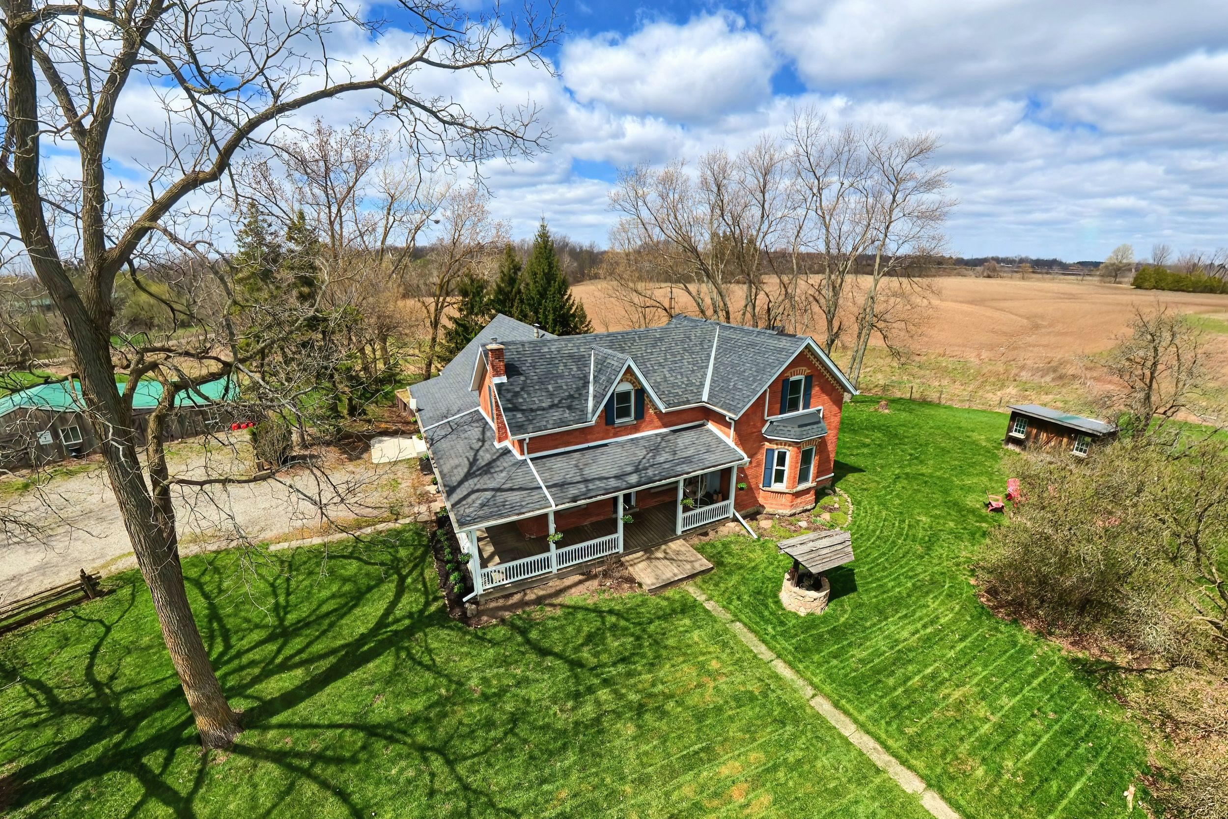 This enchanting circa 1850s farmhouse, thoughtfully updated and expanded, is set on just over nine acres in rural ancaster. Named nosara grange by its owners in 2020-nosara meaning "a place for everyone" and grange meaning "farm"-this character-rich hobby farm blends timeless charm with modern comfort. Offering 3+2 bedrooms, including a main floor bedroom, the home is ideal for growing families, multi-generational living, or those seeking a peaceful country retreat. The beautifully updated kitchen features sleek countertops, premium appliances, and a dedicated coffee bar, opening to spacious principal rooms and a versatile bar/kitchen/dining area-perfect for entertaining and everyday living. The second floor offers two well-appointed bedrooms, including a serene primary retreat with walk-in closet and stunning ensuite. The fully finished walk-out lower level extends the living space with two additional bedrooms, a four-piece bathroom, and flexible areas for recreation, guests, or home office use. Natural light fills the home through oversized windows, framing picturesque countryside views. Outdoors, enjoy a wrap-around porch, above-ground pool with deck, gardens, pond, chicken coop and outbuilding with two horse stalls-ideal for hobby farm enthusiasts. Electric car charger at barn. A standout feature is the impressive 2,472 sq ft detached garage/workshop ('21) with two 14' x 14' doors, insulated block construction, in-floor heating, and a two-piece bathroom-ideal for hobbyists, entrepreneurs, or collectors. Separate septic & cistern. Conveniently located minutes to ancaster amenities, offering the perfect balance of tranquility and accessibility. Rsa.
