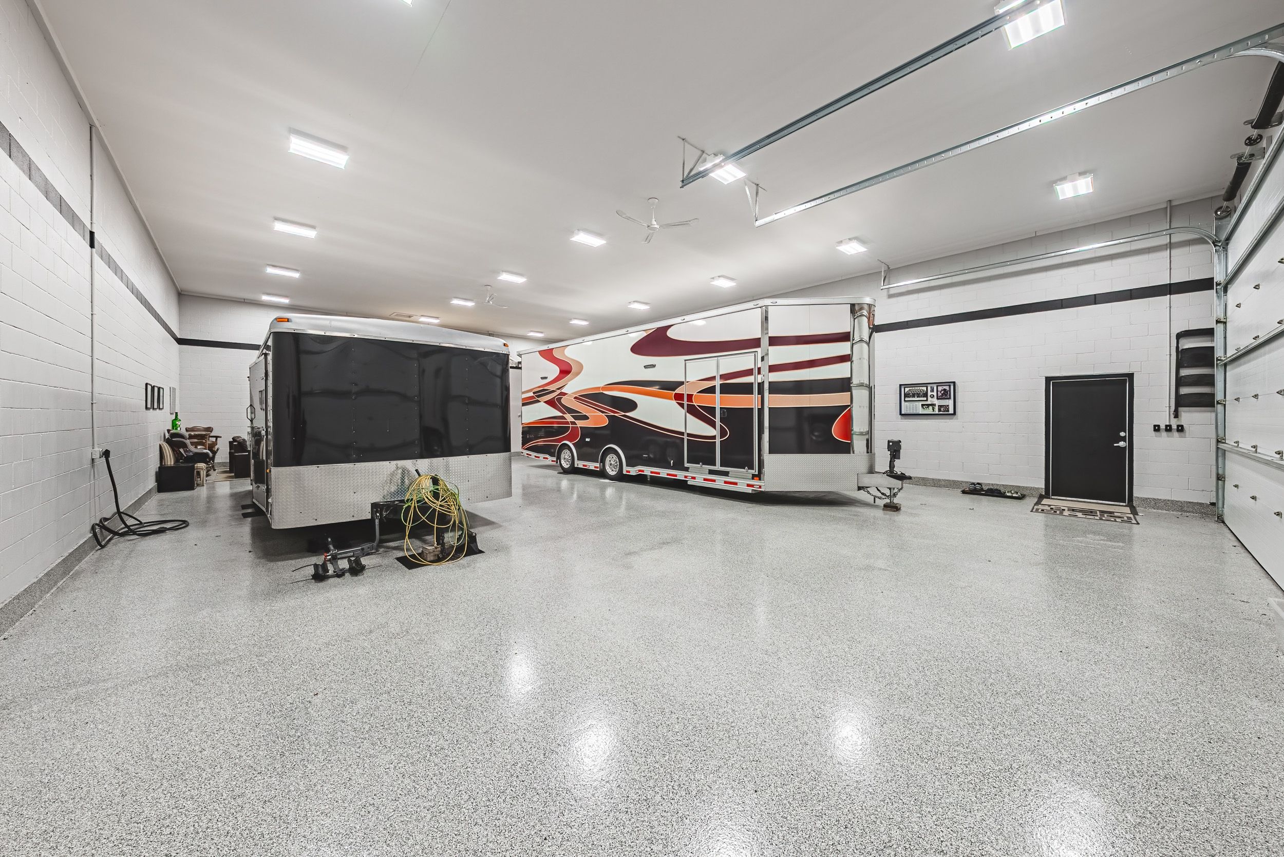 • Large garage/workshop with heating and multiple doors for hobbyists and collectors.