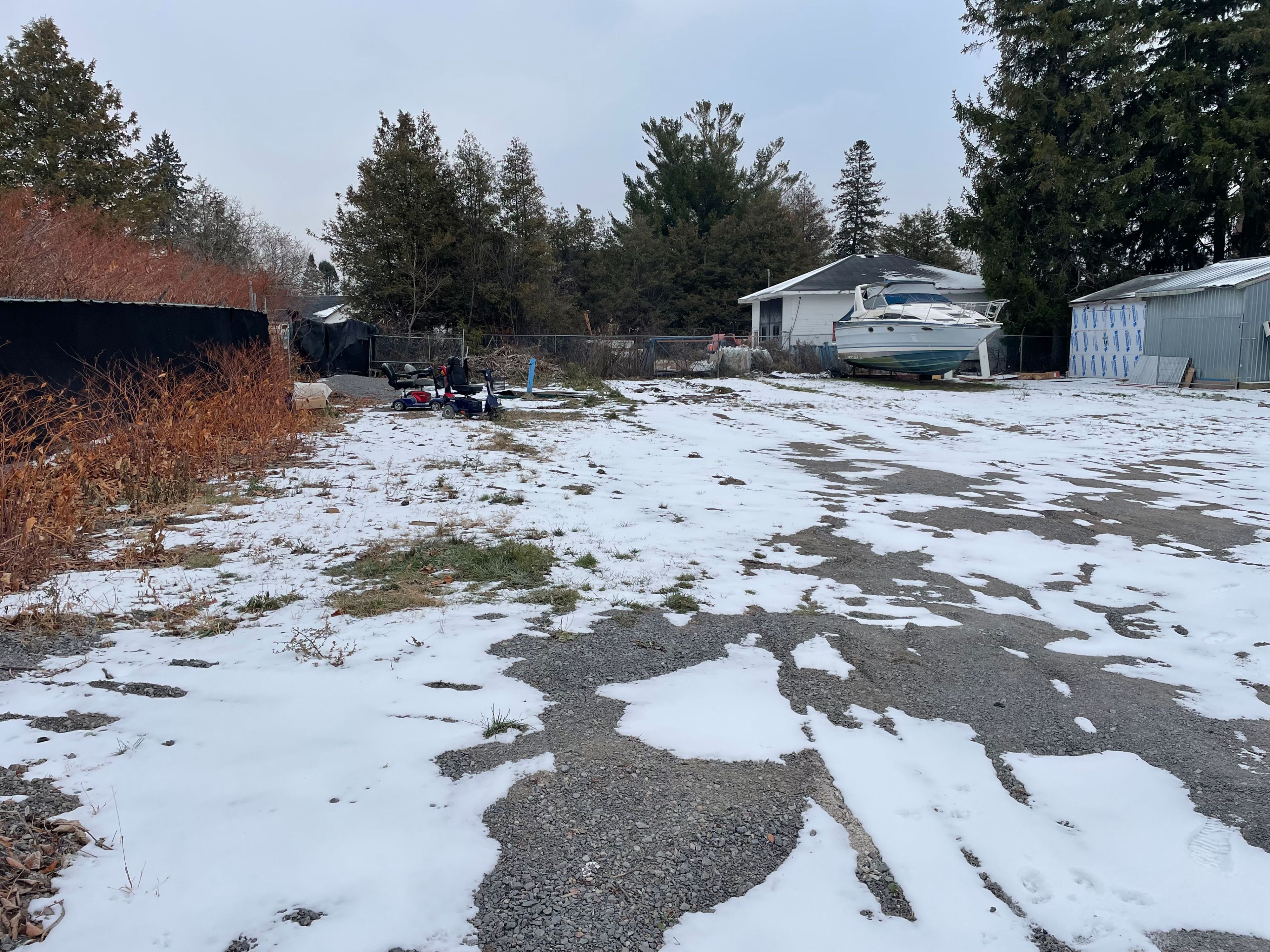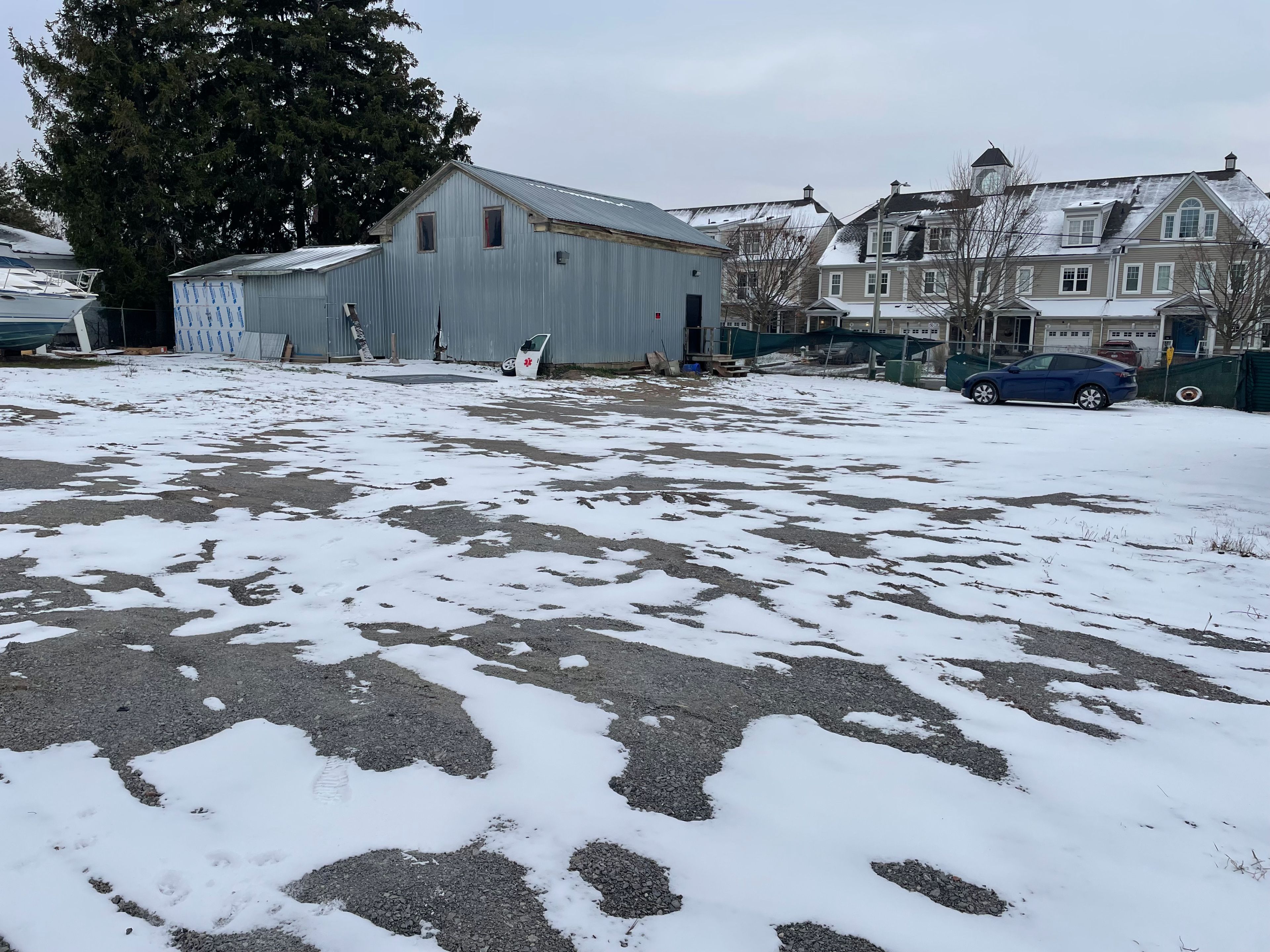 Rare short-term commercial yard space in pickering's frenchman's bay: 18,852 sq ft secured, fenced property with workshop at exceptional $2,500/month + hst net lease. Currently operating as marine/boat storage and trades facility, this turnkey property features gated yard with lockbox access, existing workshop/storage building (as-is condition, no landlord warranties),24/7 tenant access, direct wharf street entry, and space for boat storage. Flexible terms:12-18 month initial lease with the potential of month-to-month option up to 24 months maximum and ideal for contractors, marine storage, woodworking/carpentry shops, or trades requiring secure workspace. Tenant pays all utilities and maintenance, snow removal, garbage; landlord pays property taxes only. Central pickering location in frenchman's bay with easy highway 401access provides excellent visibility for marine and commercial operations. Immediate occupancy with first and last 2 month deposit. Property scheduled for future redevelopment short-term nature creates below-market pricing delivering exceptional value for qualified tenants needing functional space now. Commercial use only; no residential permitted; workshop, fencing, and all features provided as-is with no landlord improvements.