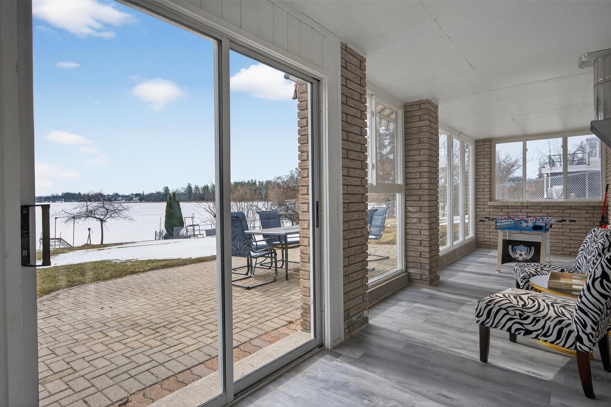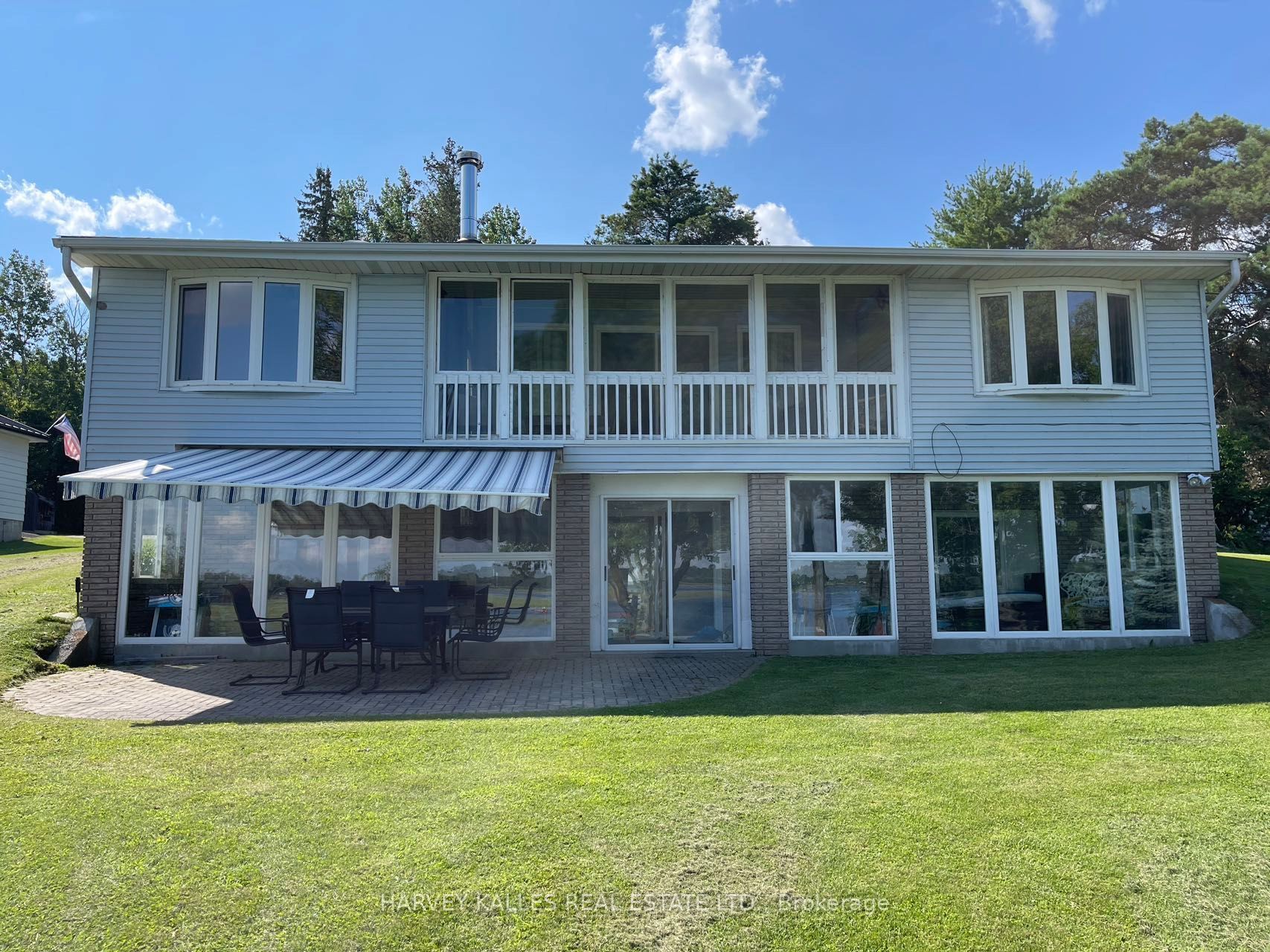 This stunning 4 season lake house is light filled and located on pristine buckhorn lake in the sweet spot where chemong and pigeon lake channel changes are close by. Walk into this tiled grand foyer and take notice of the panoramic views featured throughout the expansive floor to ceiling windows from every room. The interior has many delightful designer finishes throughout incl. A stunning eat in kitchen with white custom cabinetry, expansive stone counters, stainless steel appliances and engineered hardwood that runs throughout the home. 3 spacious bedrooms adorn the main floor as well as a walk out to the oversized sunroom where the windows can be removed or opened to allow gentle breezes from the lake. This sunroom is built to enjoy wildlife, sunsets and entertain while being sheltered. The lower level has a cozy family room with high ceilings, a wet bar with sink, cupboards and wine fridge for entertaining and a wood burning fireplace. 2 additional bedrooms are downstairs, a laundry room and an additional bath with stand up shower. Walk out to your back yard oasis with 104 feet of prime waterfront with cantilever dock system. There is a fantastic detached garage and a separate bunkie facing the water with 2 additional beds for summer company. Lots of great landscaping and outdoor places to enjoy the views. Beautiful mature trees with great boating or driving options to dine. Boat to buckhorn for food, ice cream or to visit some of the shops or bobcaygeon for some of the kawartha's best shopping or boat docking. The options are limitless when you are on the trent severn waterway. This is a must see.