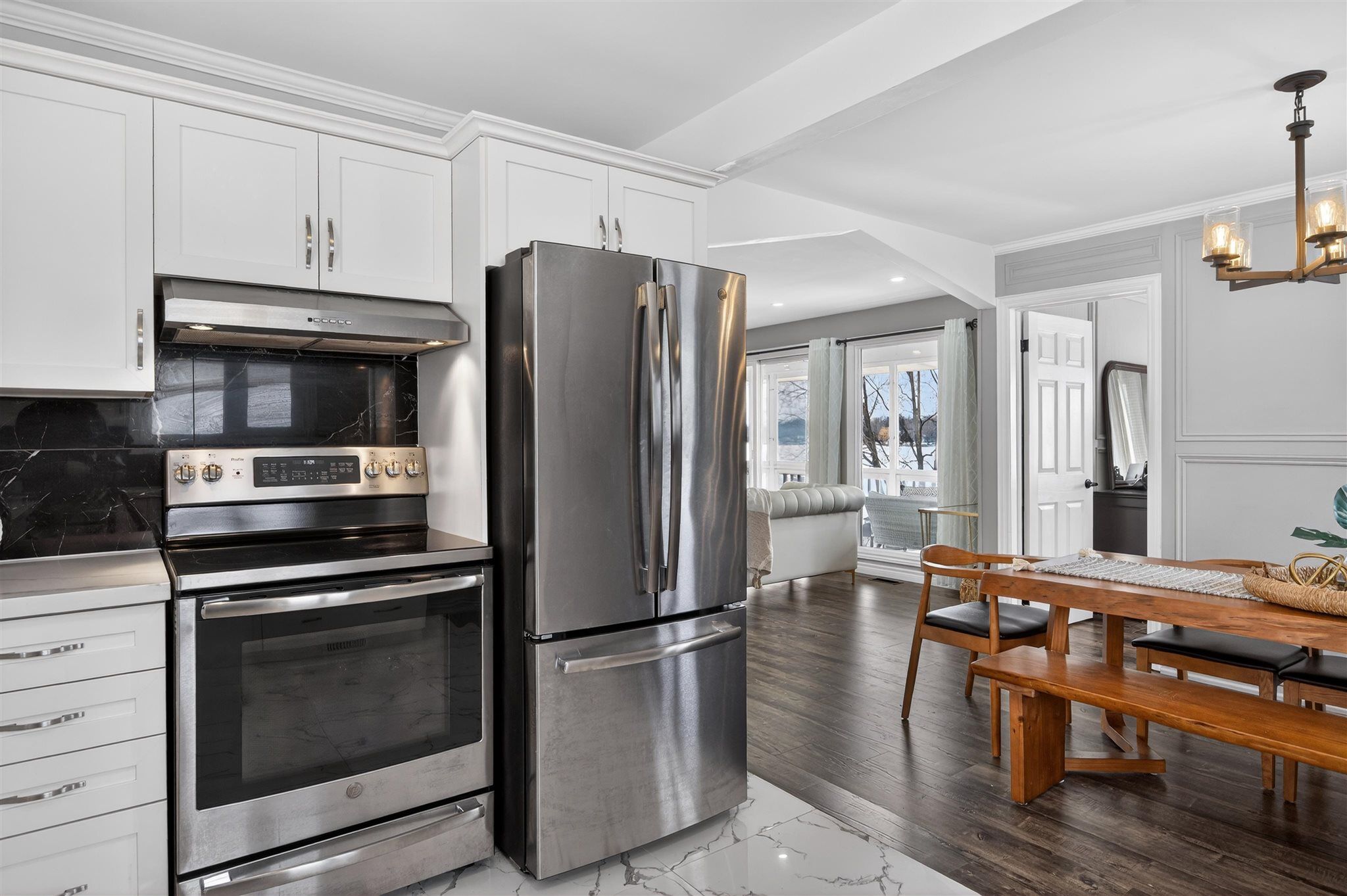 This stunning 4 season lake house is light filled, has 2422 total square feet and is located on pristine buckhorn lake in the sweet spot where chemong lake and pigeon lake channel changes are close by. Walk into this marble tiled grand foyer and take notice of the panoramic views featured throughout the expansive floor to ceiling windows from every room. The interior has many delightful designer finishes throughout incl. A stunning eat in kitchen with white custom cabinetry, expansive stone counters, stainless steel appliances and engineered hardwood that runs throughout the home. 3 spacious bedrooms adorn the main floor as well as a walk out to the oversized sunroom where the windows can be removed or opened to allow gentle breezes from the lake. This sunroom is built to enjoy wildlife, sunsets and entertain while being sheltered. The lower level has a cozy family room with high ceilings, a wet bar with sink, cupboards and wine fridge for entertaining and a wood burning fireplace. 2 additional bedrooms are downstairs, a laundry room and an additional bath with stand up shower. Walk out to your back yard oasis with 104 feet of prime waterfront with cantilever dock system. There is a fantastic detached garage and a separate spacious bunkie facing the water with spectacular views and 2 additional beds for summer company. On this park like setting, there is great landscaping and lots of outdoor places to enjoy and have fun with great views. Beautiful mature trees with great boating or driving options to dine. Boat to buckhorn for food, ice cream or to visit some of the shops or bobcaygeon for some of the kawartha's best shopping or boat docking. The options are limitless when you are on the trent severn waterway. The road is private and is $500. 00/ year. It includes repair, maintenance and snow removal. This spacious and stylish home is a must see.