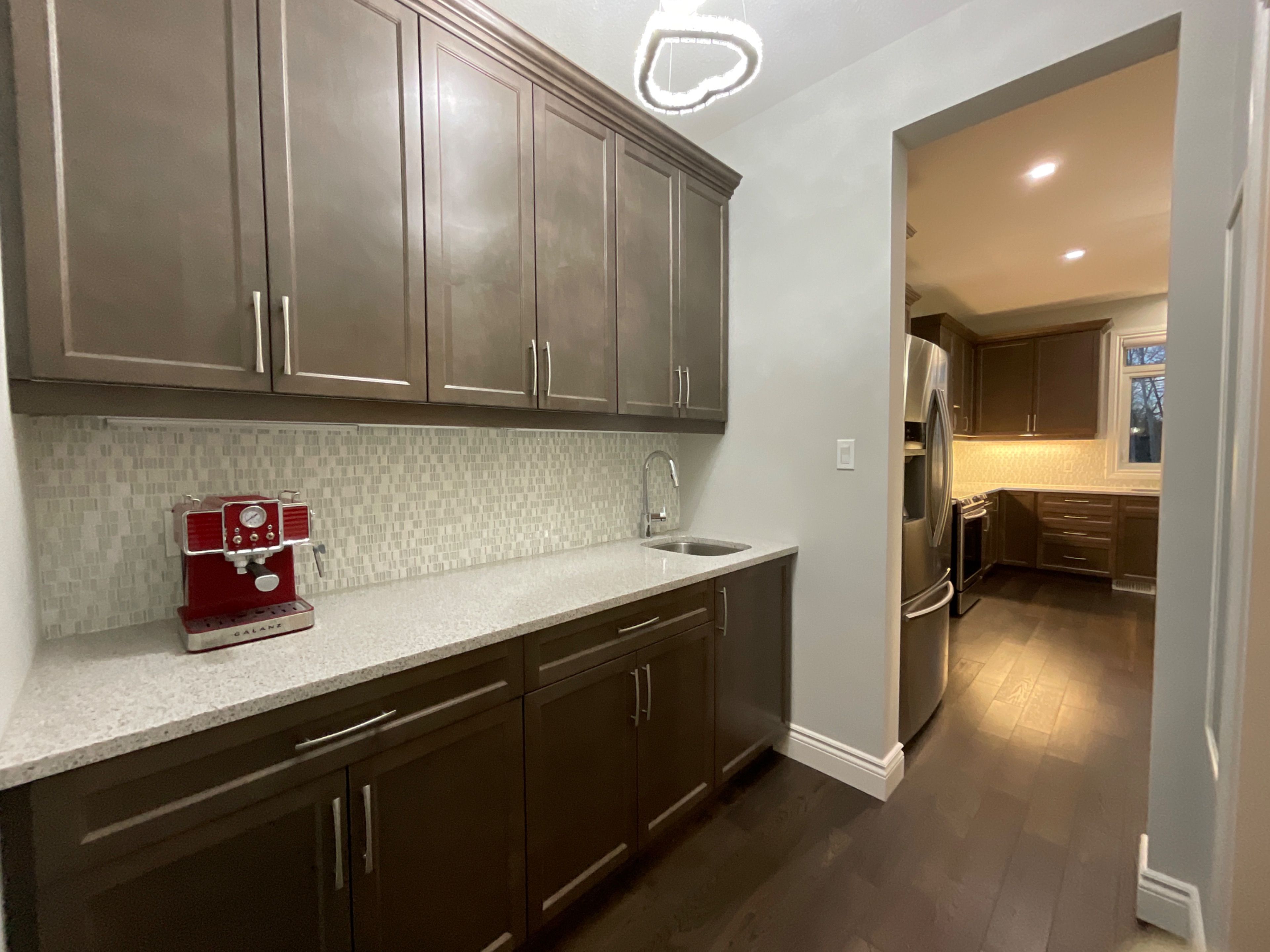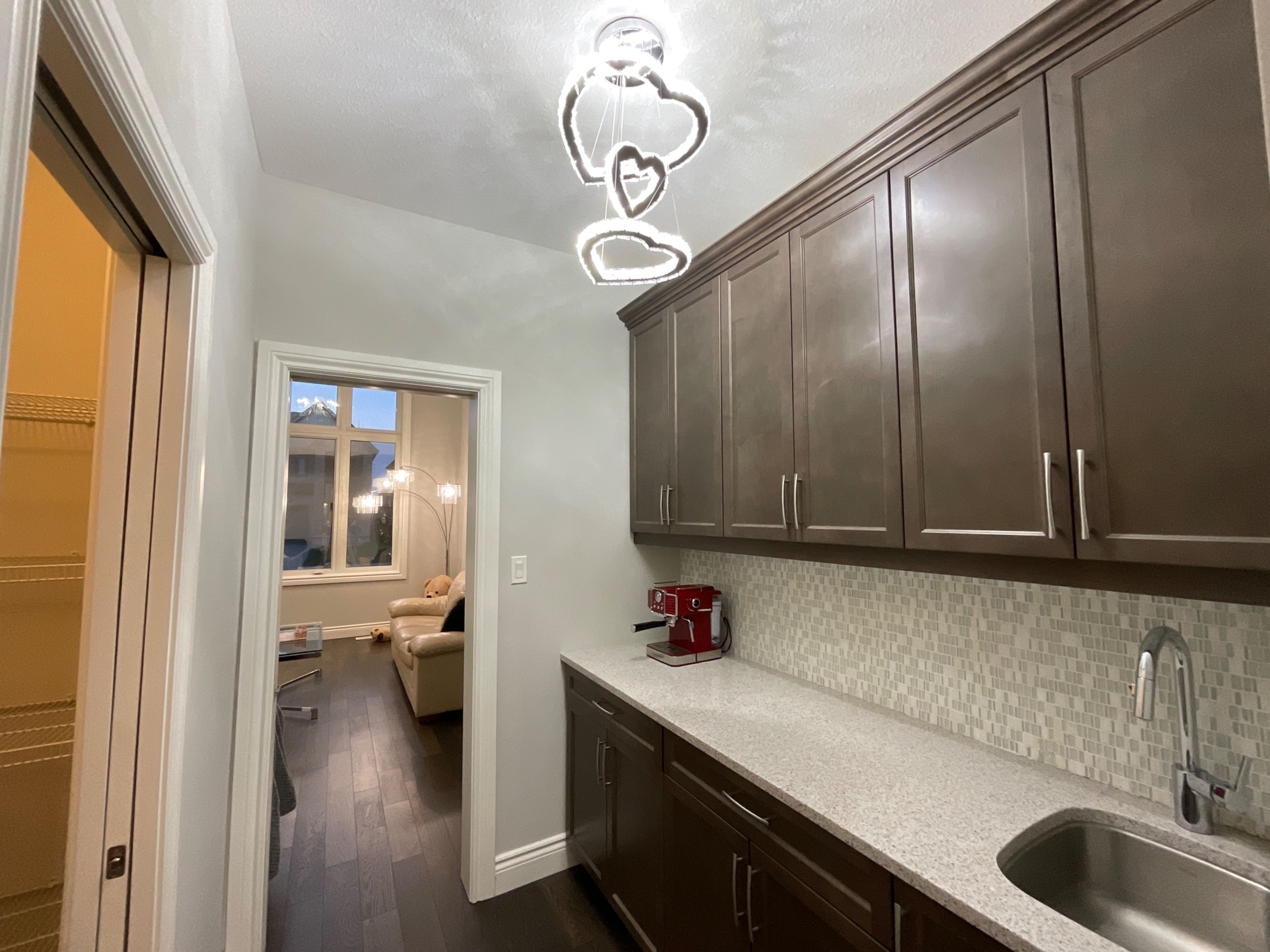 • Large eat-in kitchen featuring granite countertops and built-in pantry.
