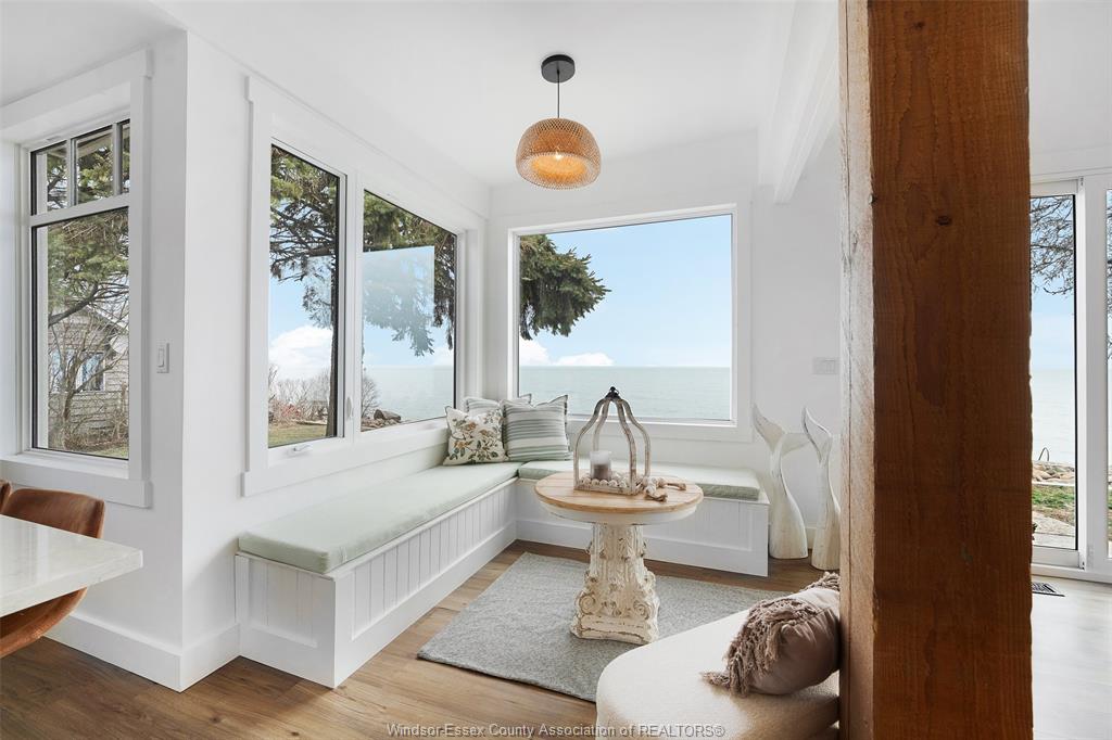 • Large windows provide breathtaking views of Lake Erie.