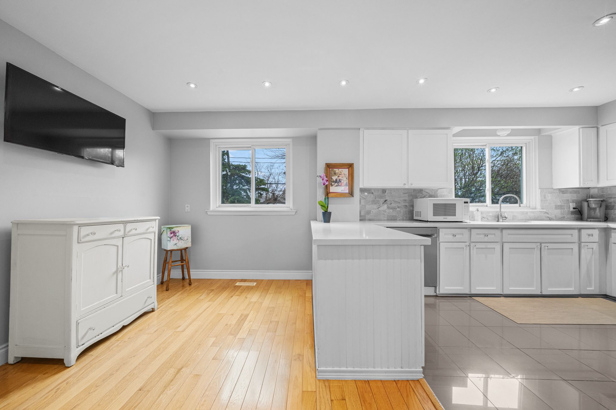 • Bright interior with hardwood floors and a functional layout.