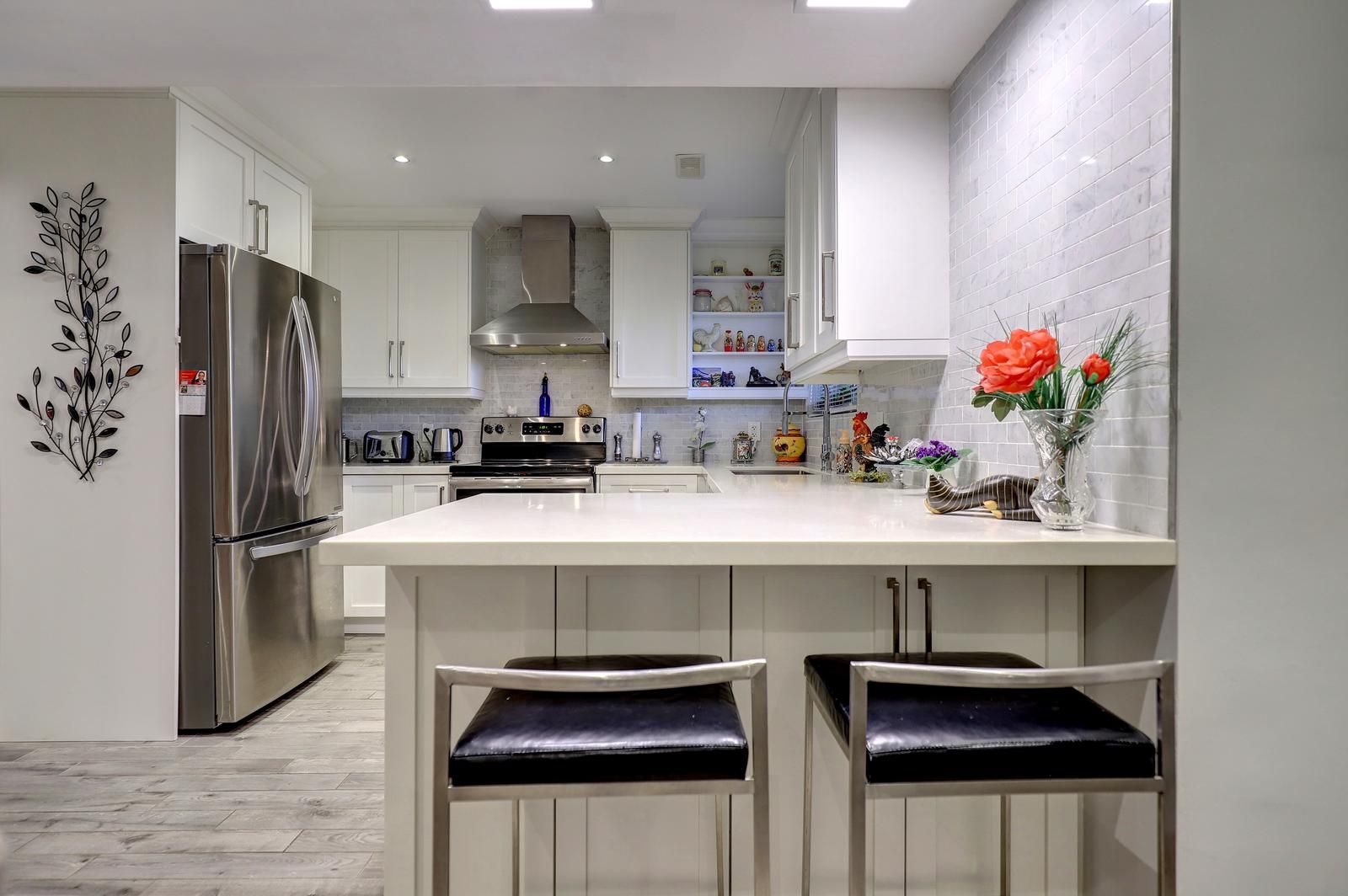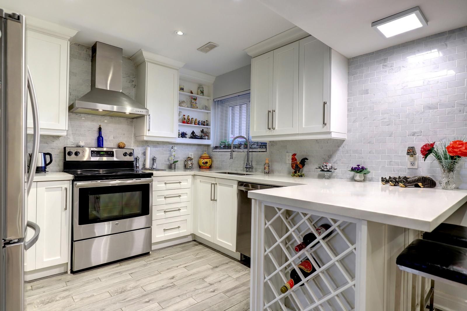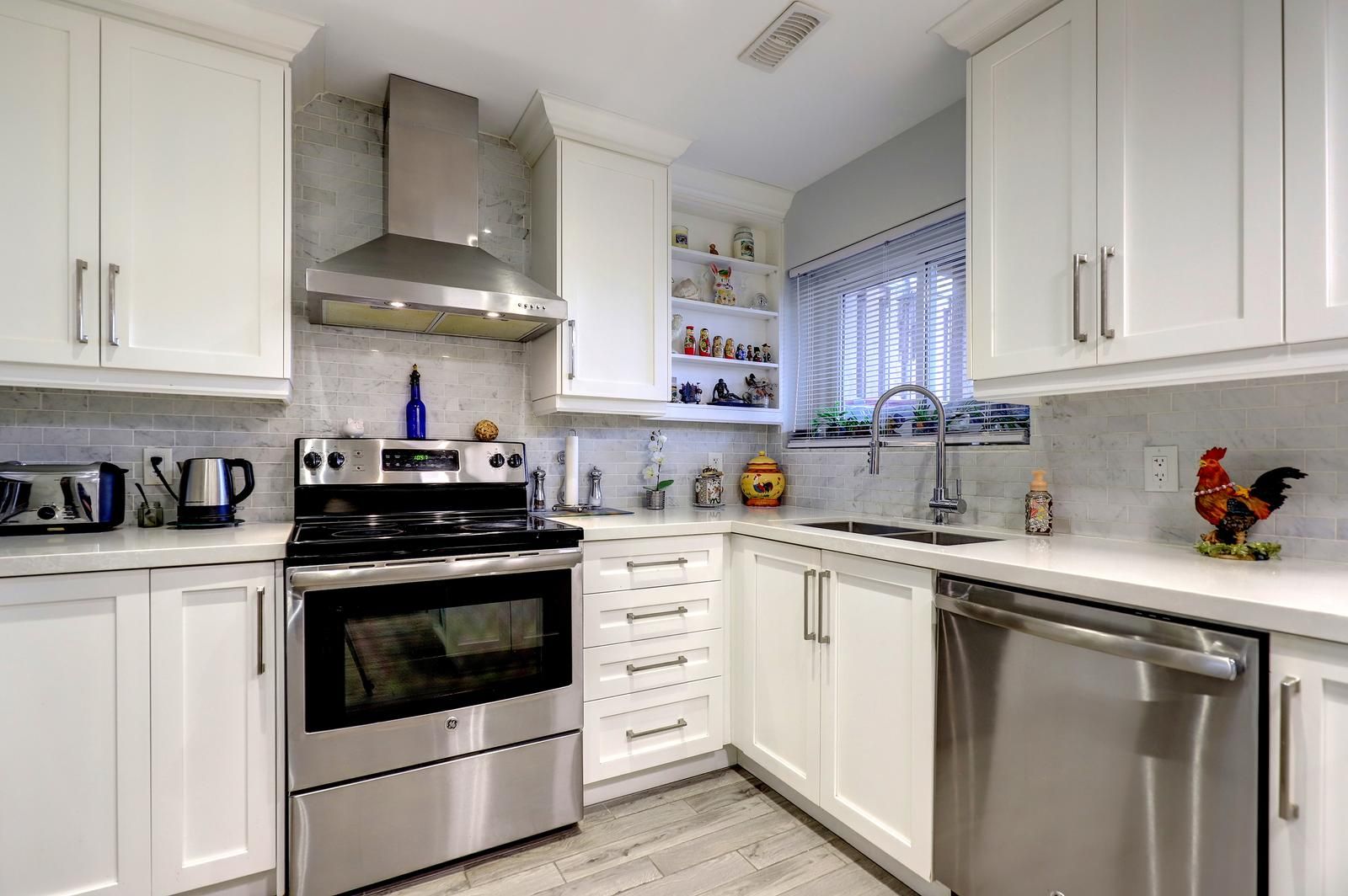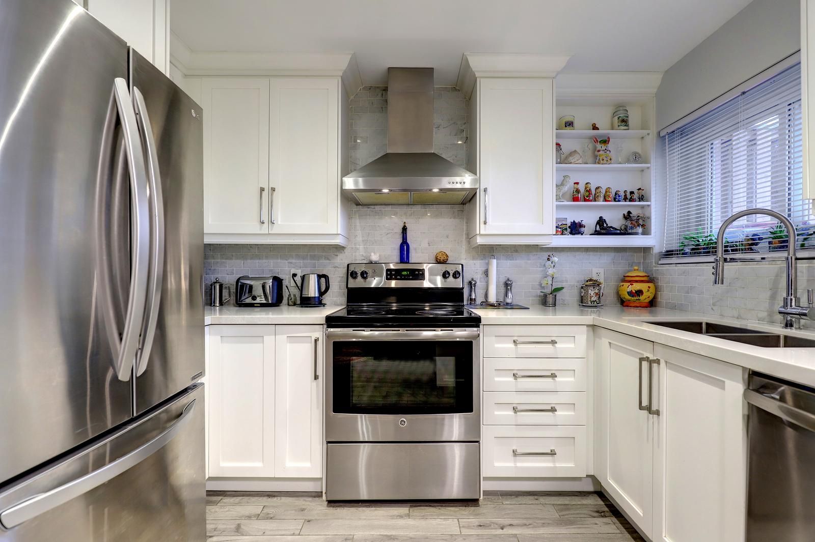 • Updated kitchen with quartz countertops and stainless-steel appliances.