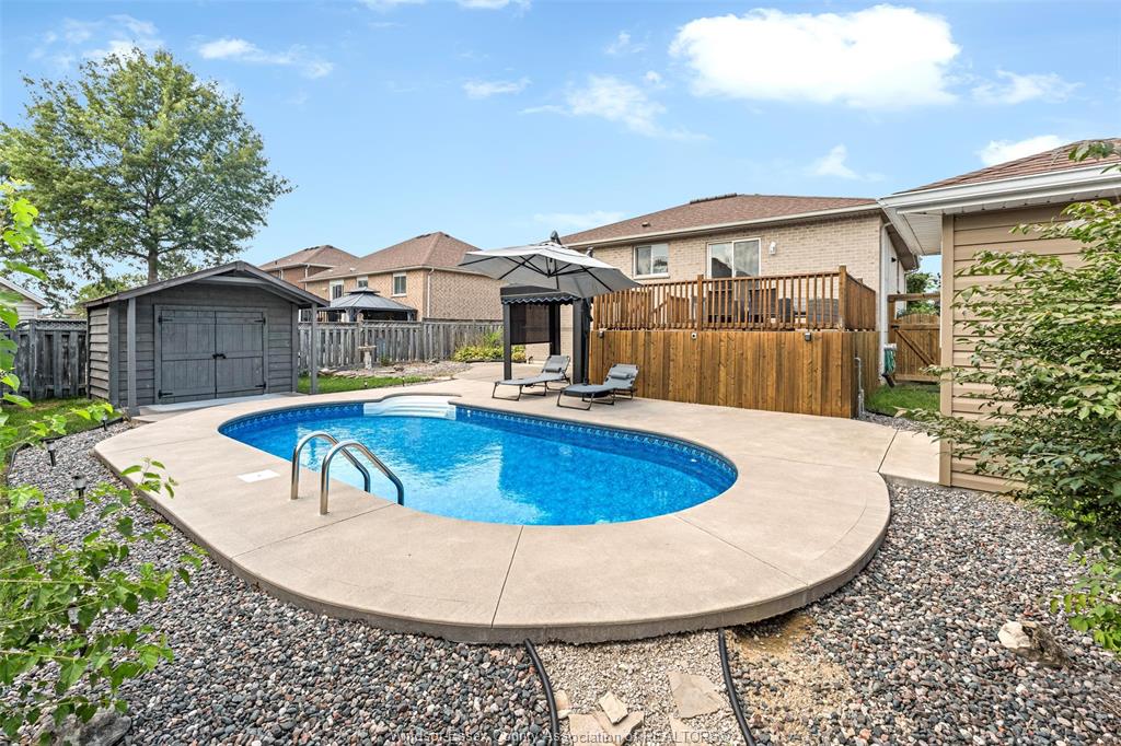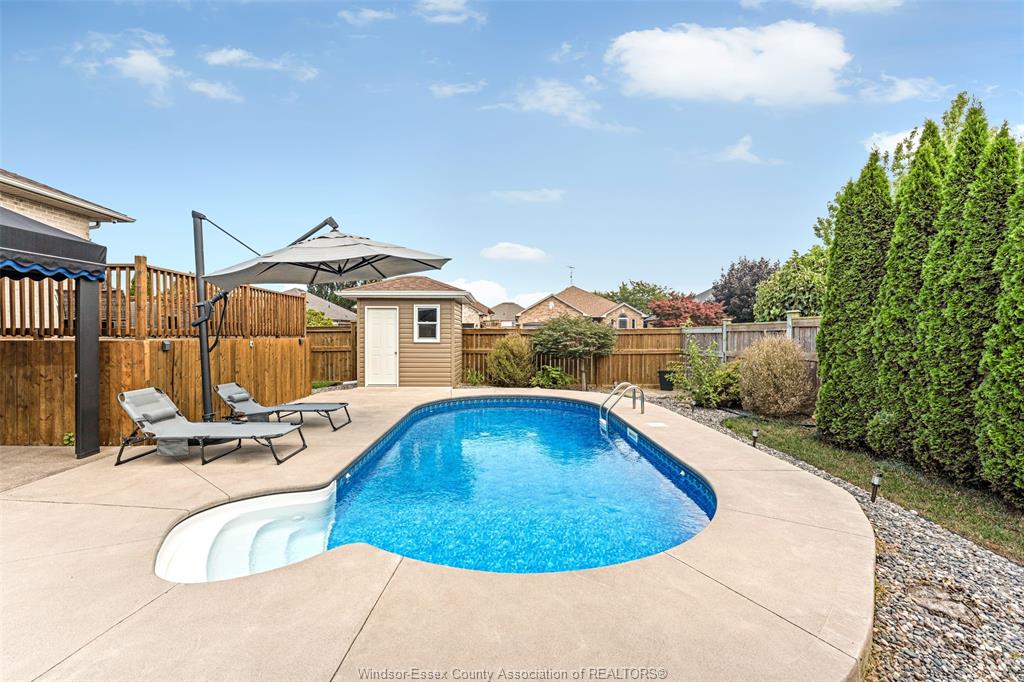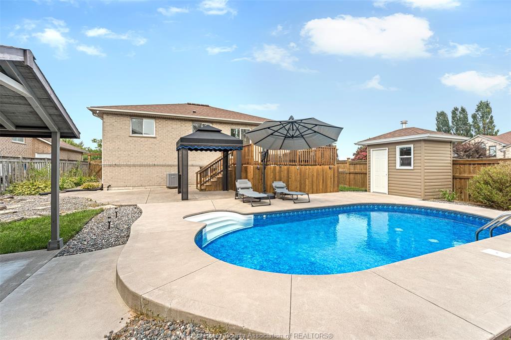 Exceptionally well-kept full brick raised ranch on a large, fully fenced corner lot directly across from buster reaume park. This move-in ready home has been recently refreshed with updated paint and offers a bright, well-designed layout with 3+1 bedrooms, ideal for families or those needing additional space. The main level features a comfortable living area along with a functional kitchen and dining space, while the finished lower level provides added living space perfect for a family room, guests, or extended family use. Enjoy a private backyard setting complete with a heated saltwater sport pool (2017) and landscaped grounds, ideal for summer enjoyment. Conveniently located near parks, schools, shopping, and amenities.