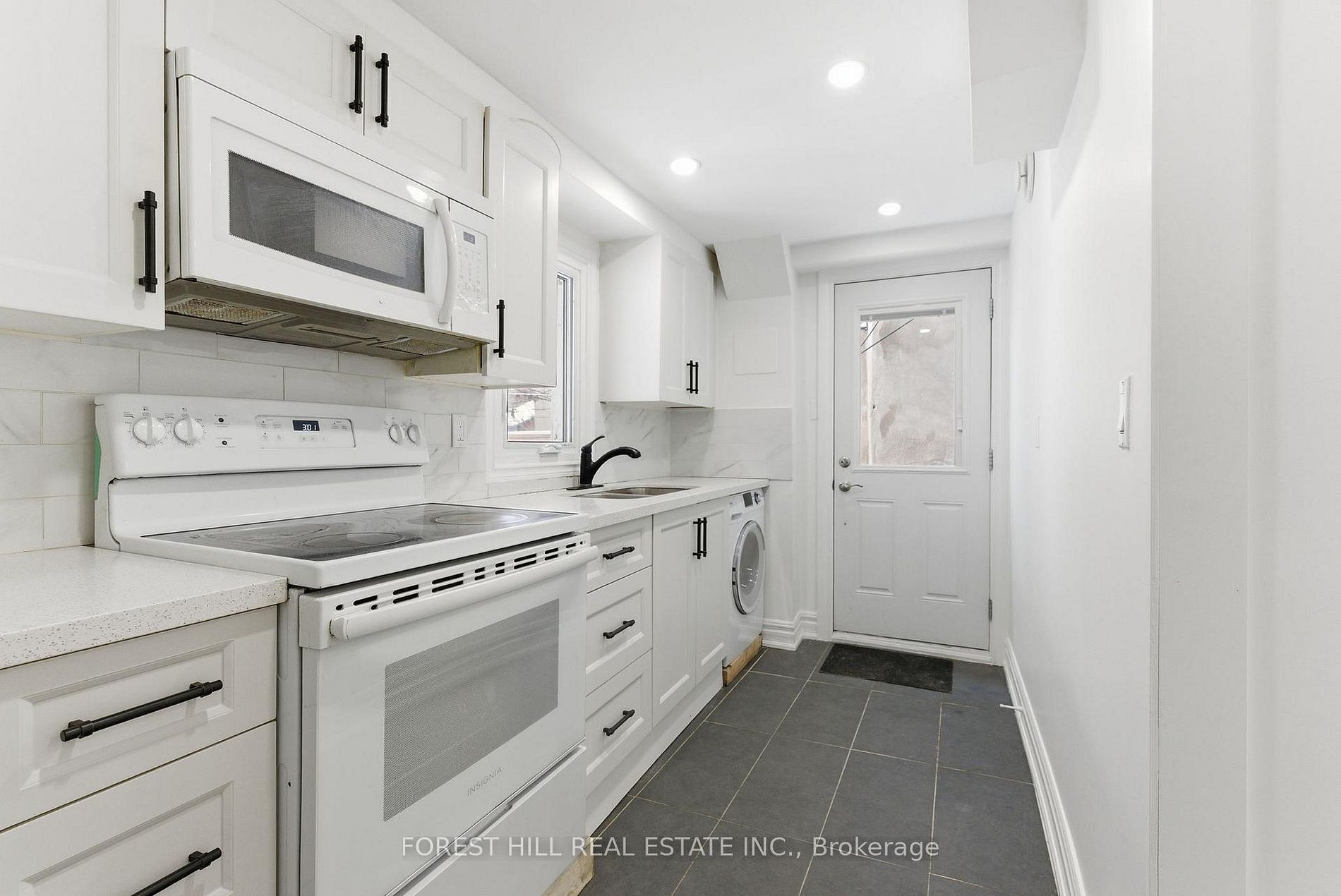 • Modern kitchen with quartz counters and contemporary finishes throughout.