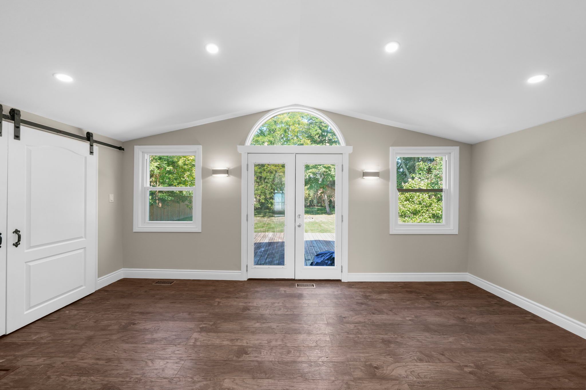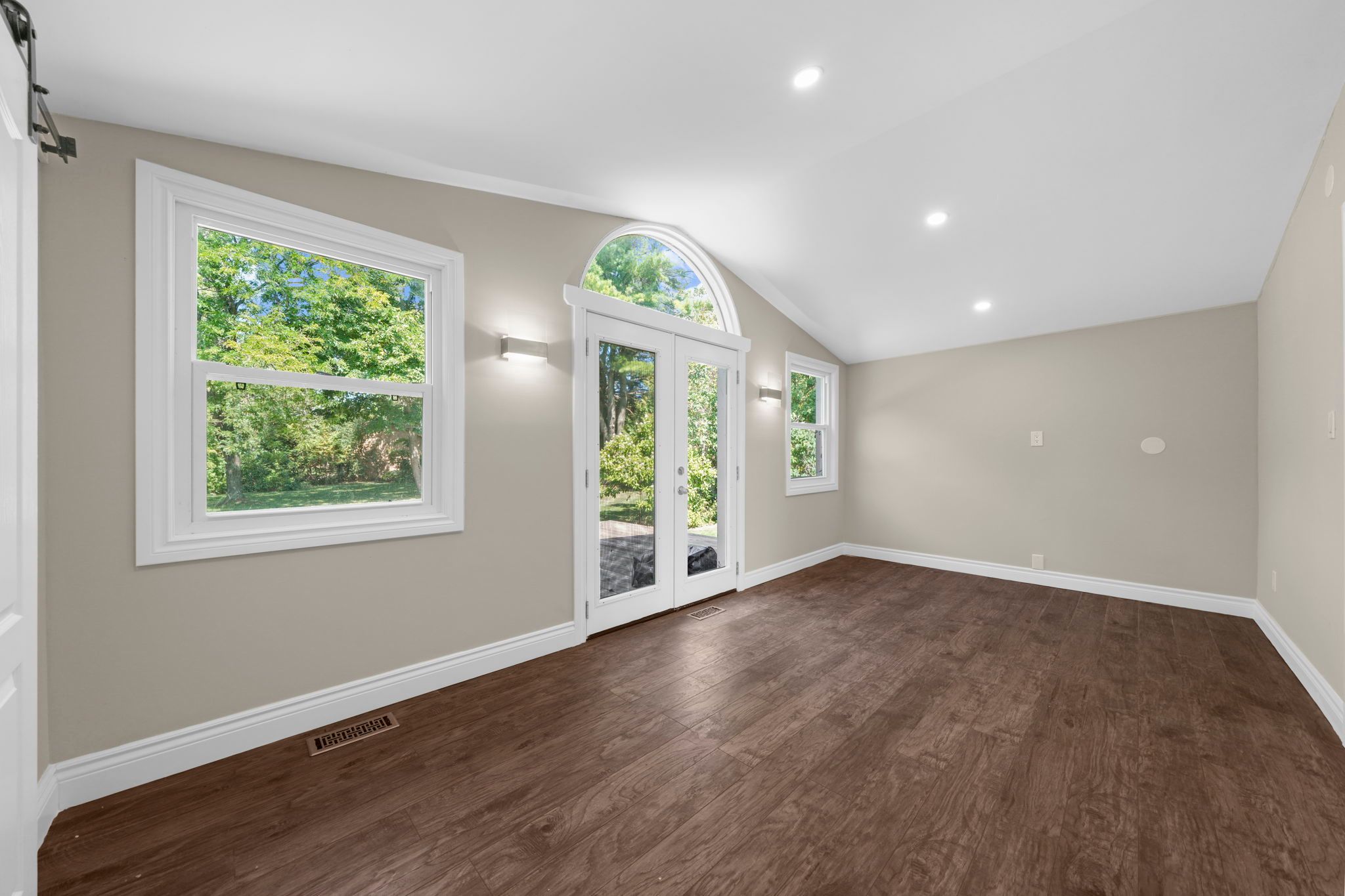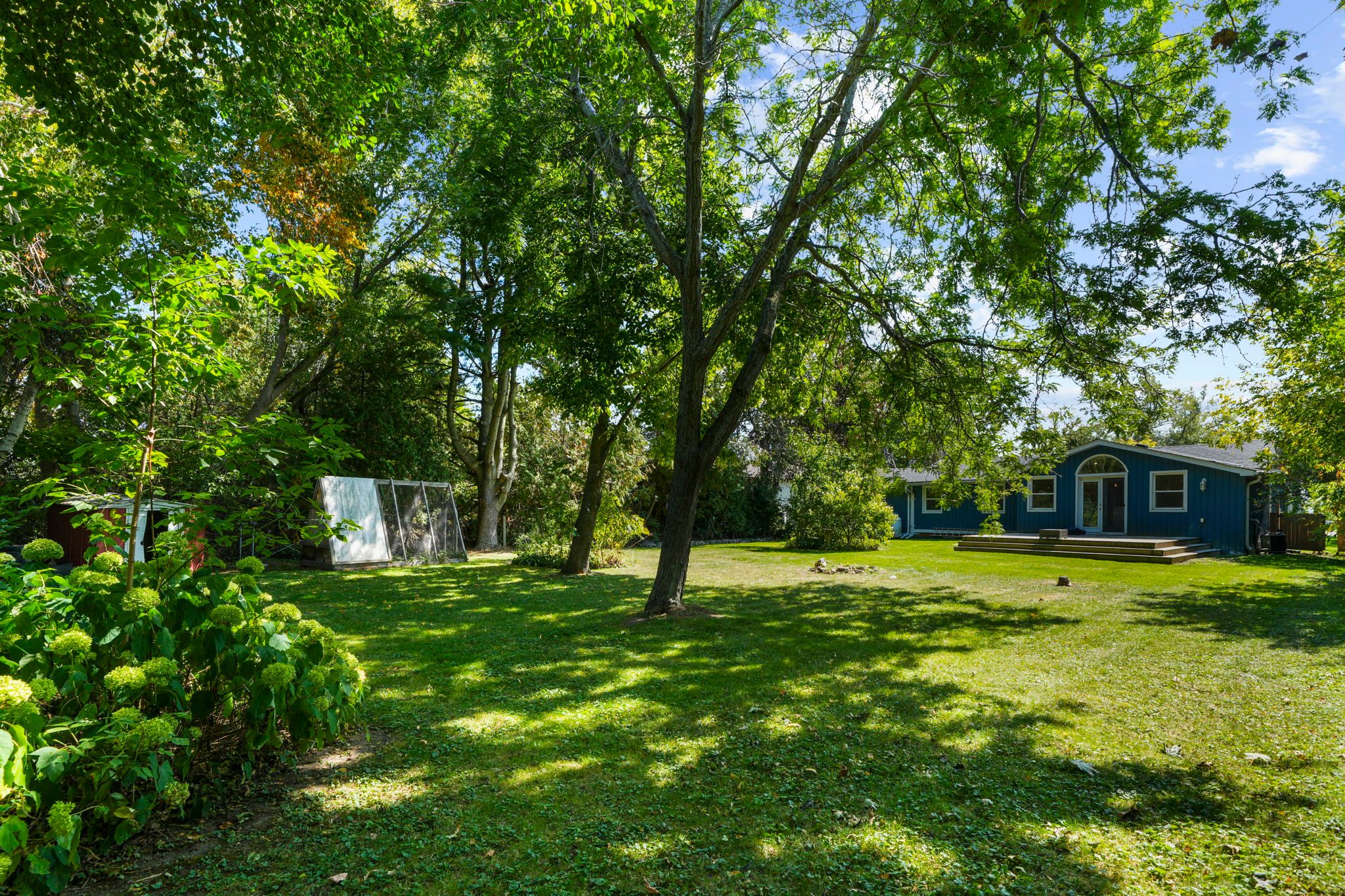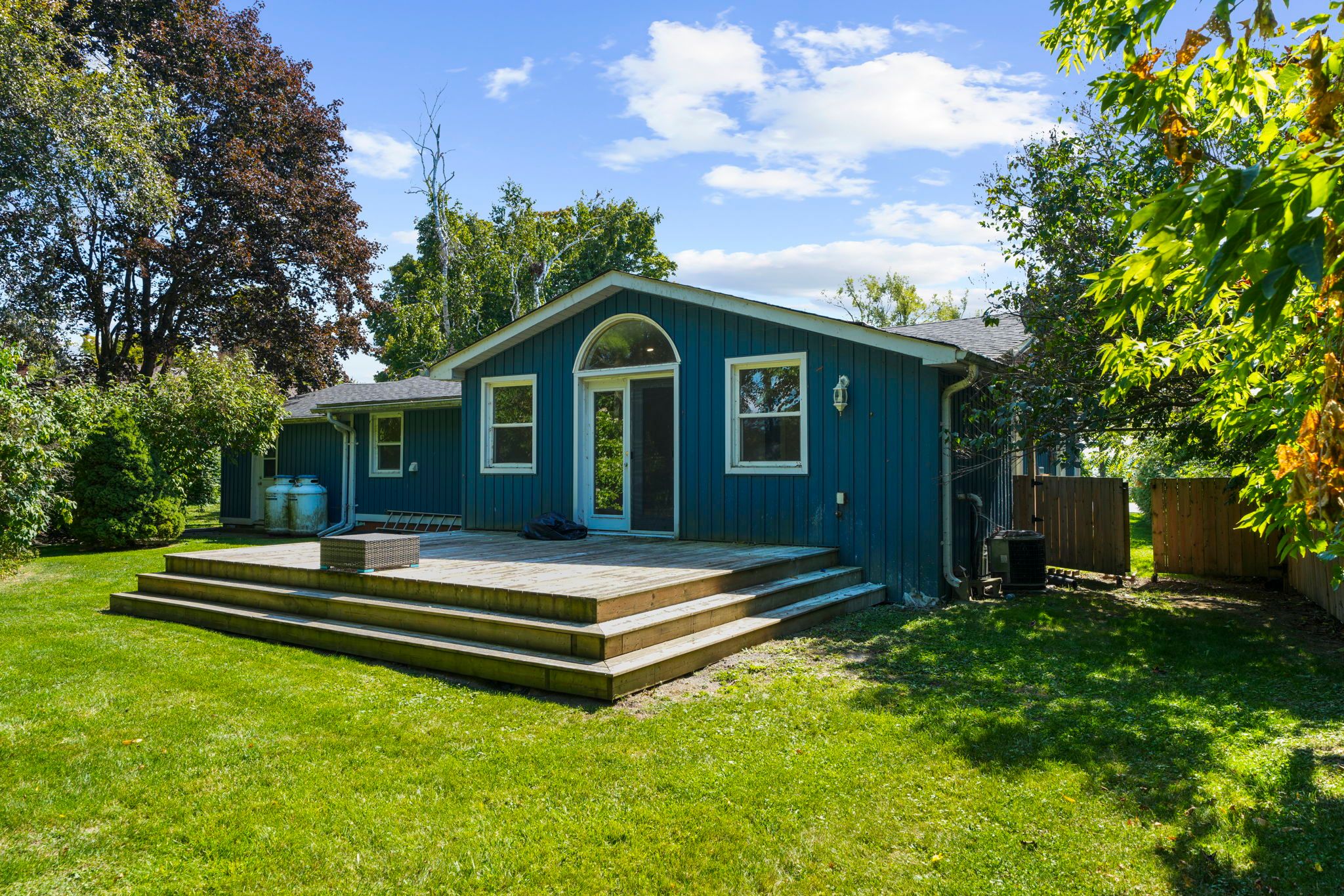 • Private backyard surrounded by trees, ideal for summer enjoyment or a pool.