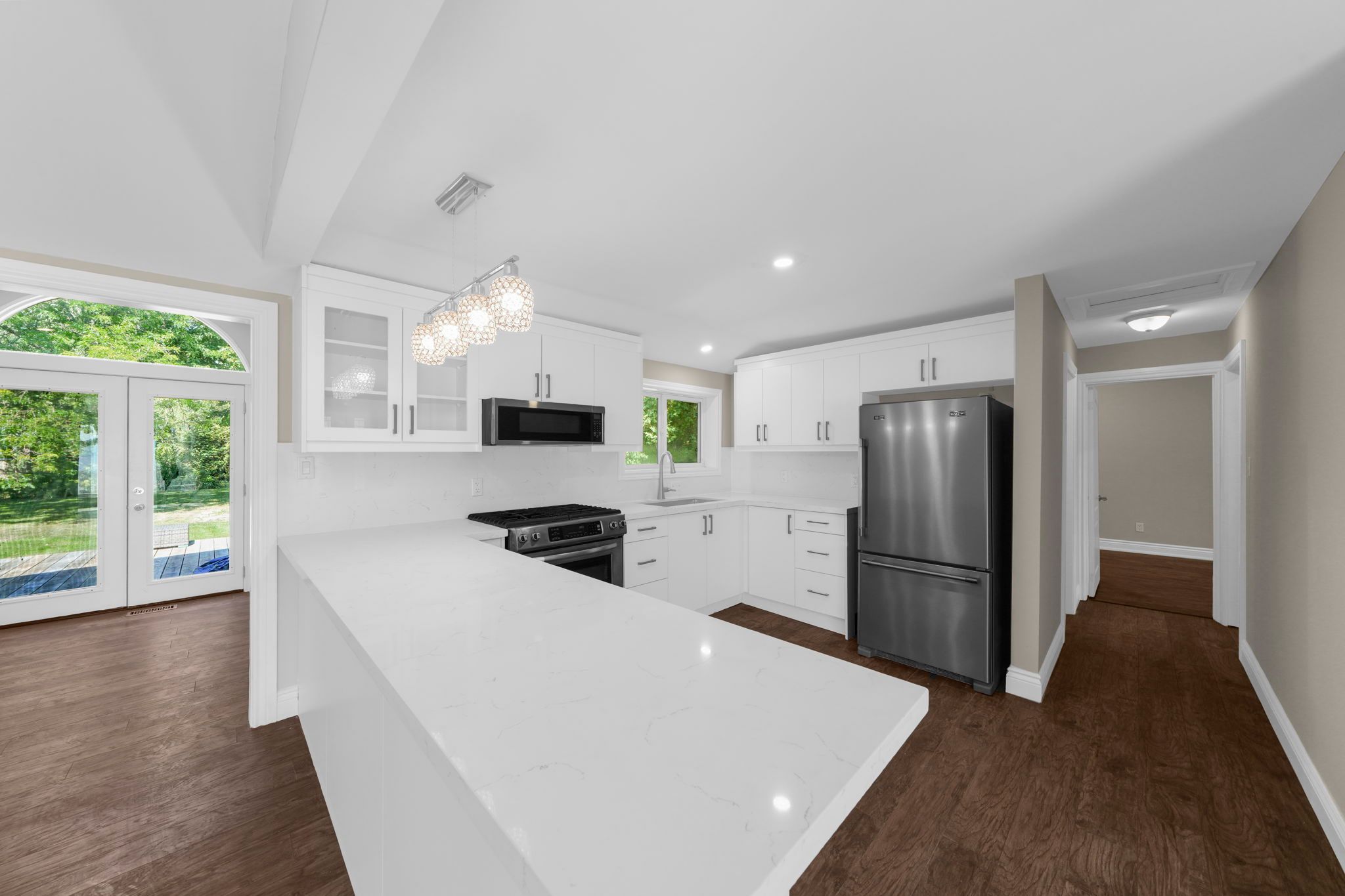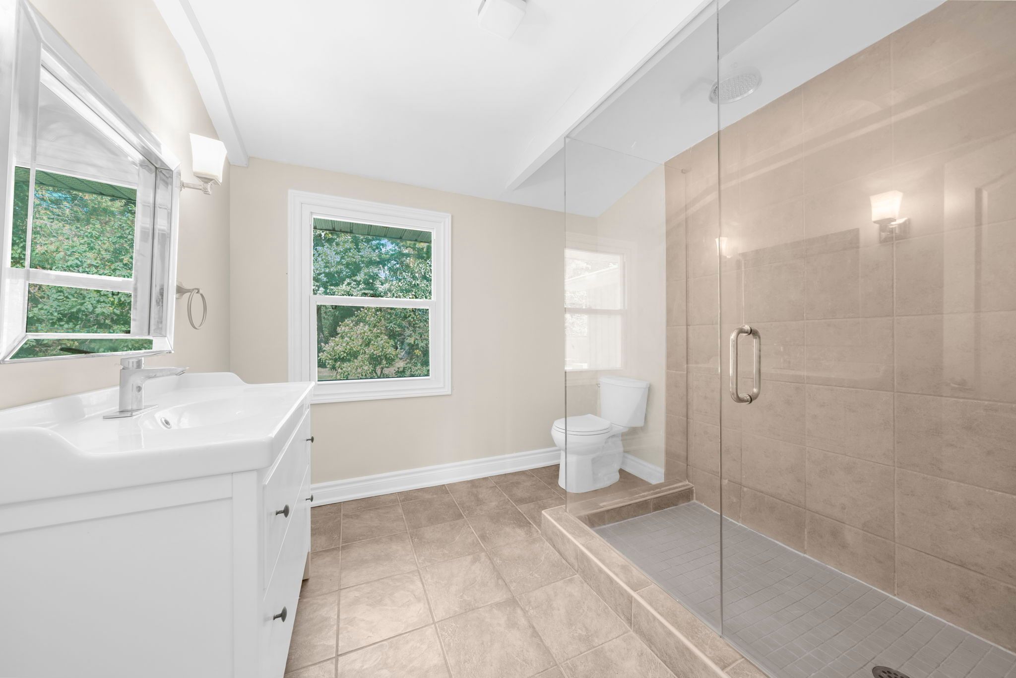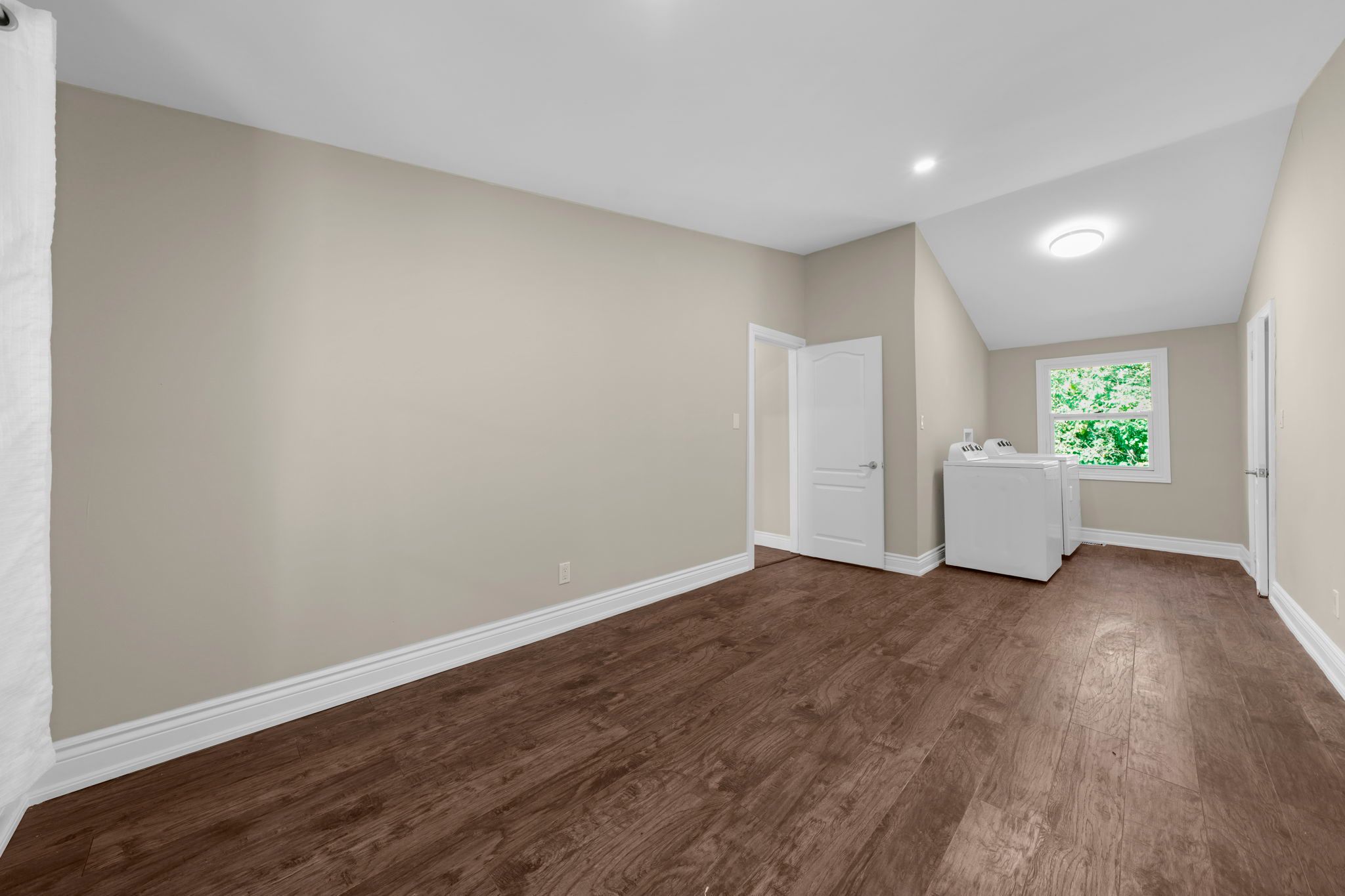 • Private backyard surrounded by trees, ideal for summer enjoyment or a pool.