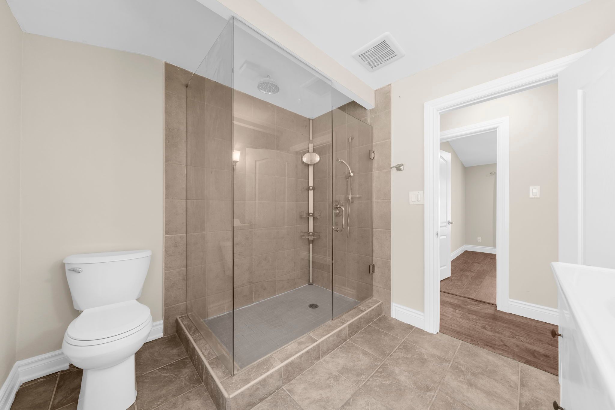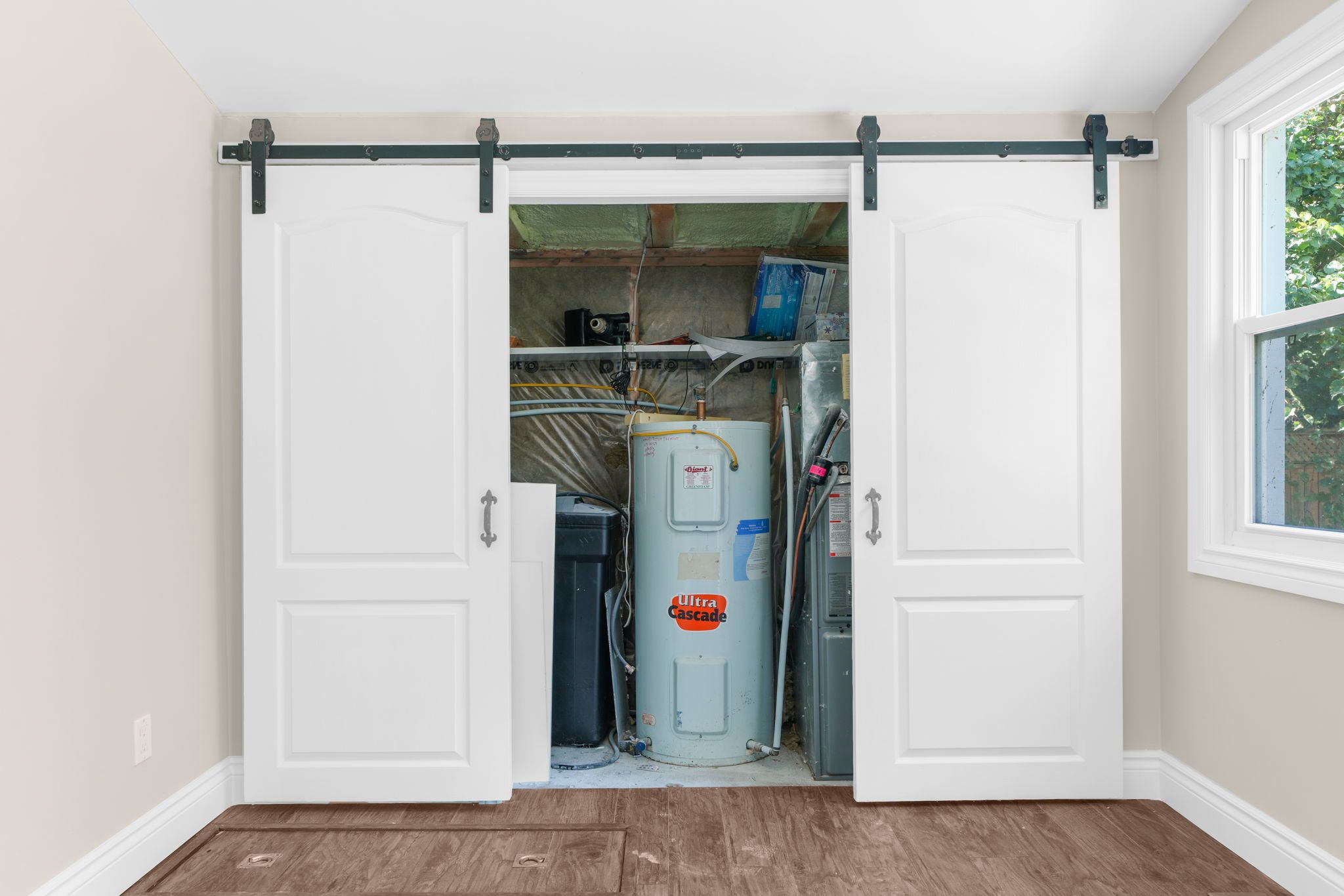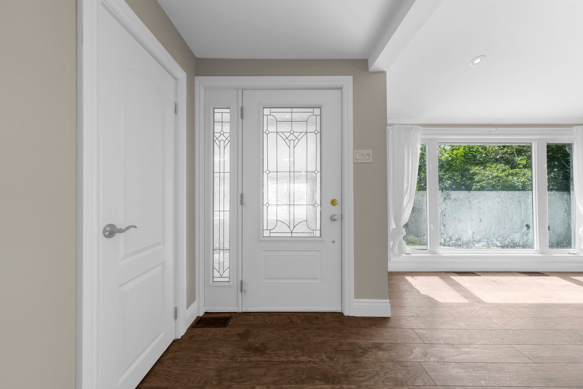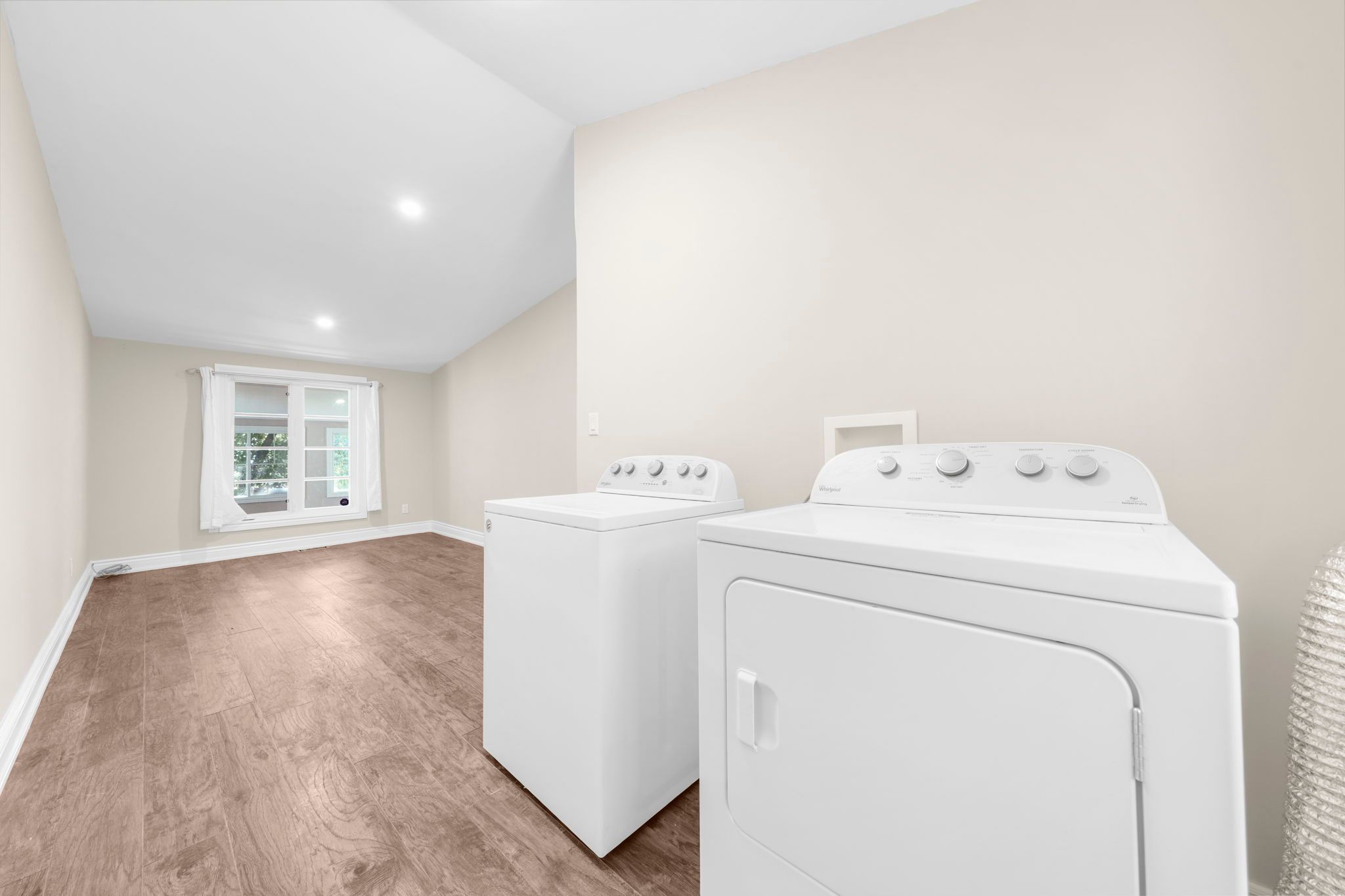 • Private backyard surrounded by trees, ideal for summer enjoyment or a pool.