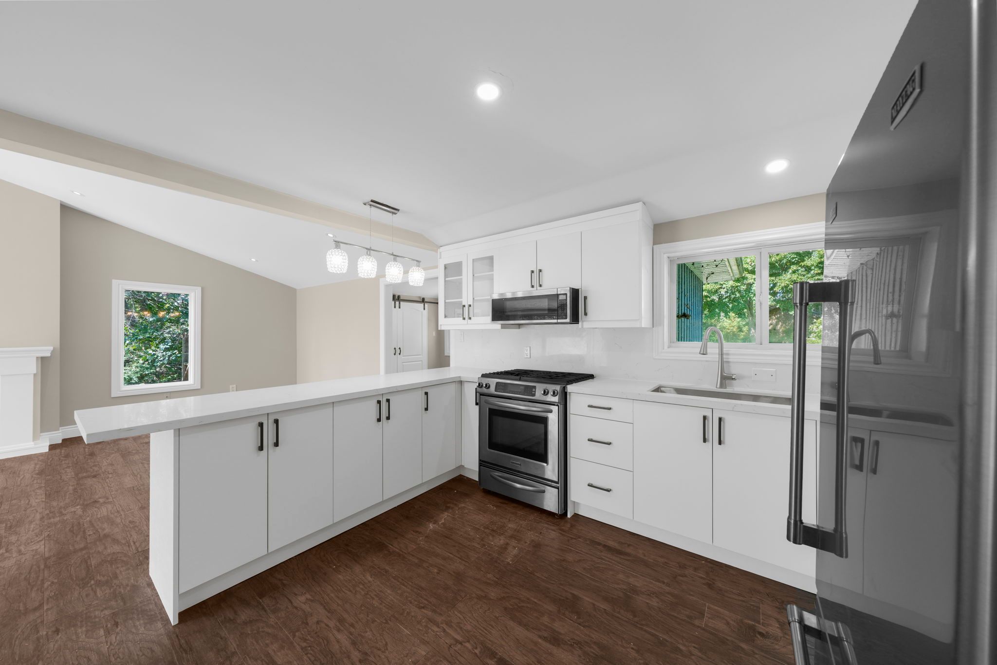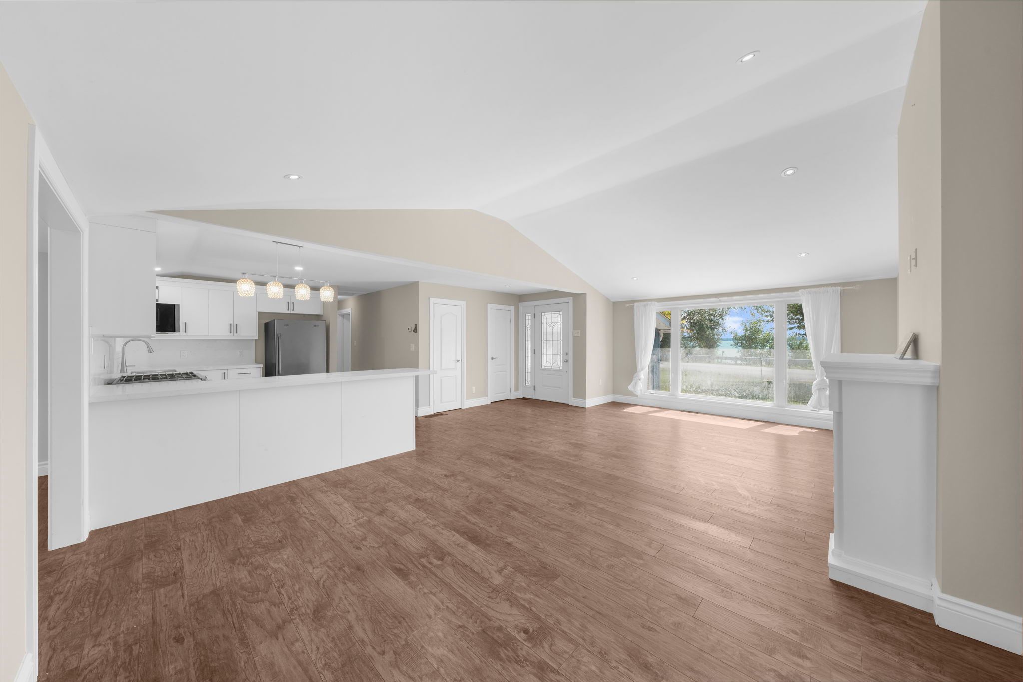 Lakefront! Charming bungalow located along the shorelines of lake simcoe on a generous 82x208ft lot w/ private deeded access to the lake including private docks mins to top rated beaches, trails, schools, hwy 12 & much more! Grand doublewide driveway, no sidewalk, provides ample parking for cars, rvs, boats & other recreational vehicles. Enter through the enclosed porch sunroom ideal for morning coffee or evening drinks offering gorgeous views of the lake. Step into the oversized living comb w/ dining room presenting an open-concept lay-out w/ tall cathedral ceilings & cozy fireplace o/l the lake. Entertainers eat -in kitchen upgraded w/ ss appliances, custom tall cabinetry, stone counters, backsplash, & breakfast bar. Venture into the family room w/ french door wo to rear deck. Stroll past the kitchen into two large bedrooms & 1-3pc resort style bath. Primary bedroom w/ wi closet & ensuite laundry space (can be converted to ensuite bath w/ stacked laundry). Expansive backyard surrounded by mature trees provides privacy ideal for summer enjoyment plenty of opportunity to add in a pool or hot tub. Do not miss the chance to purchase this move-in ready bungalow on the water!