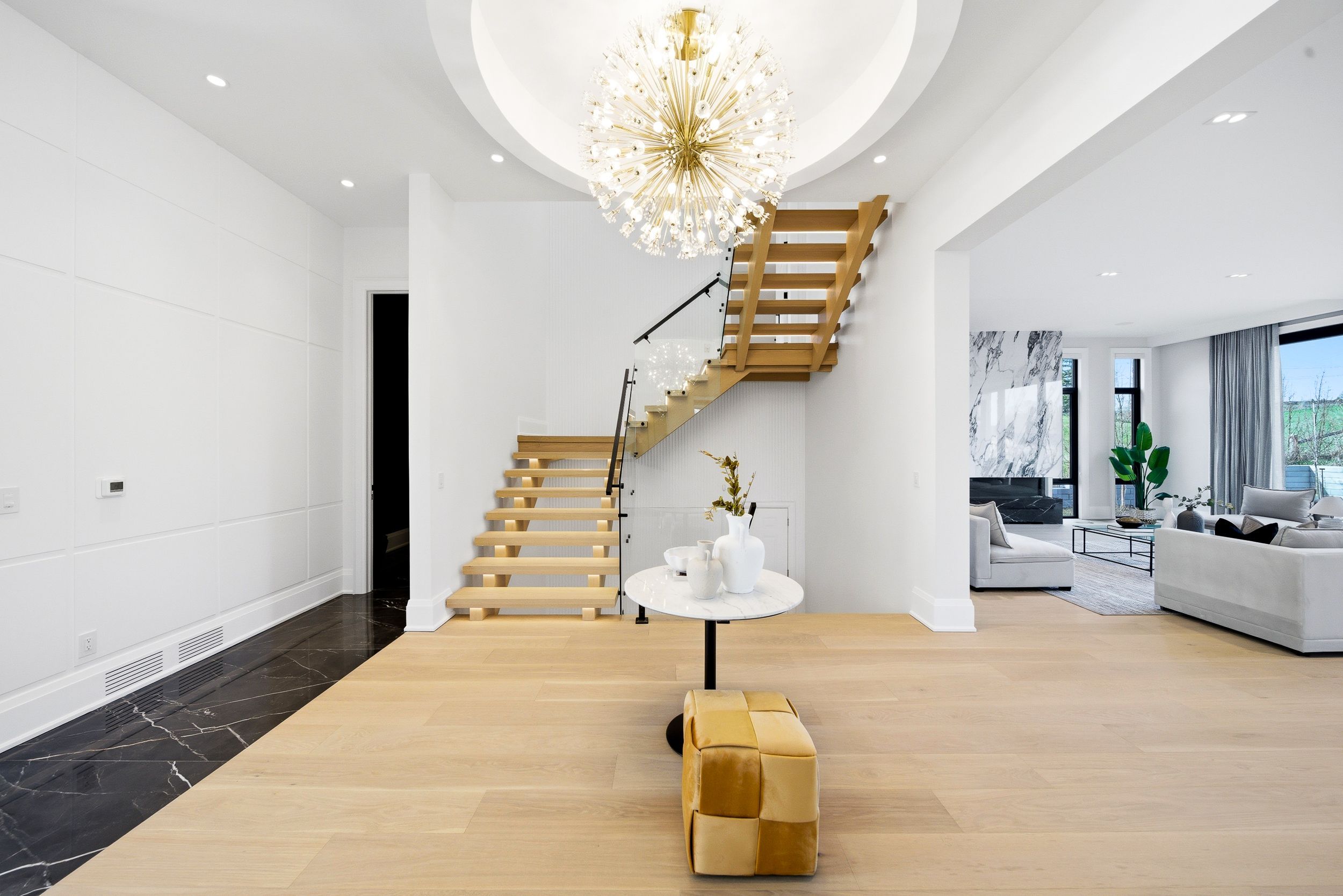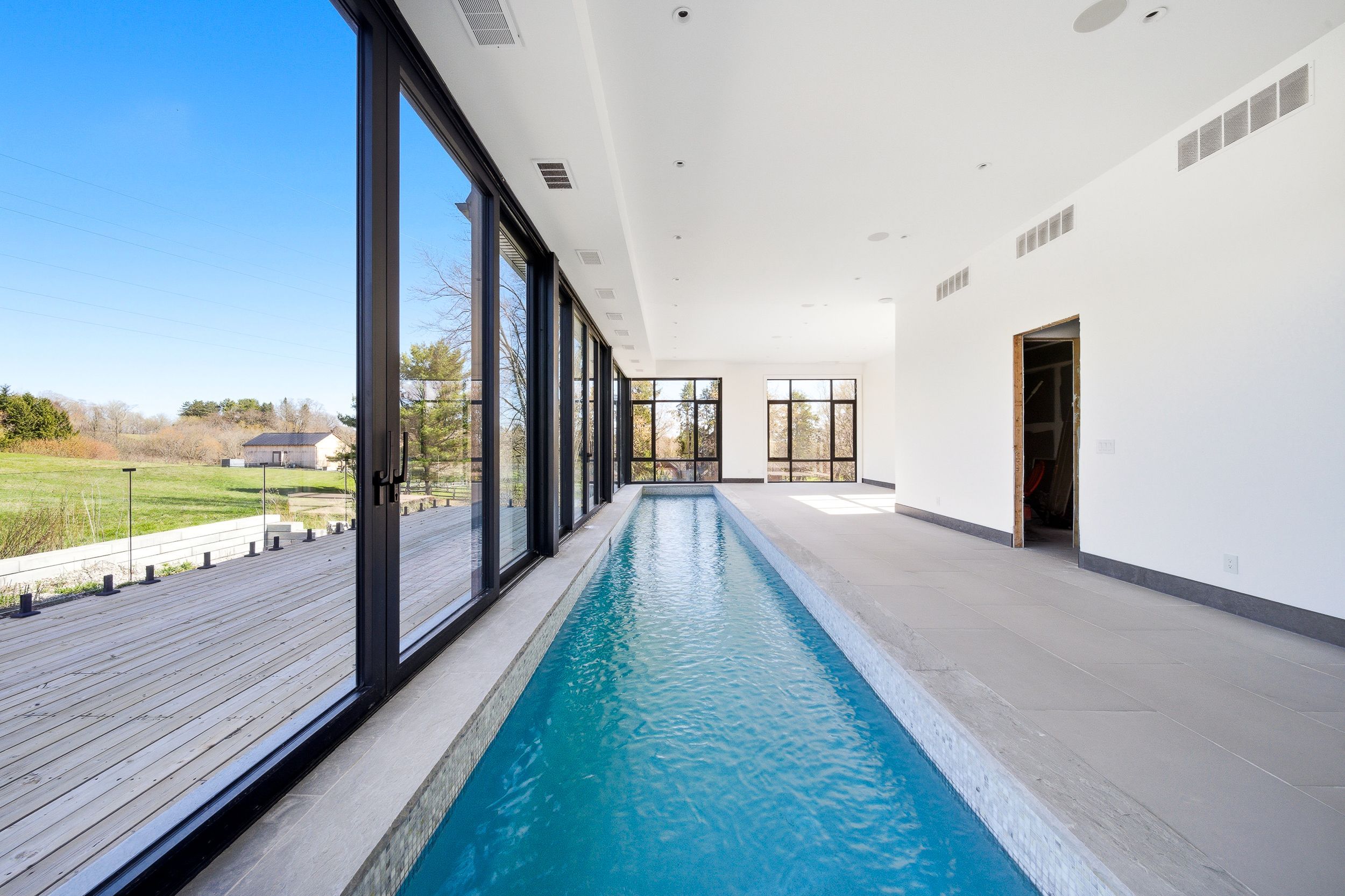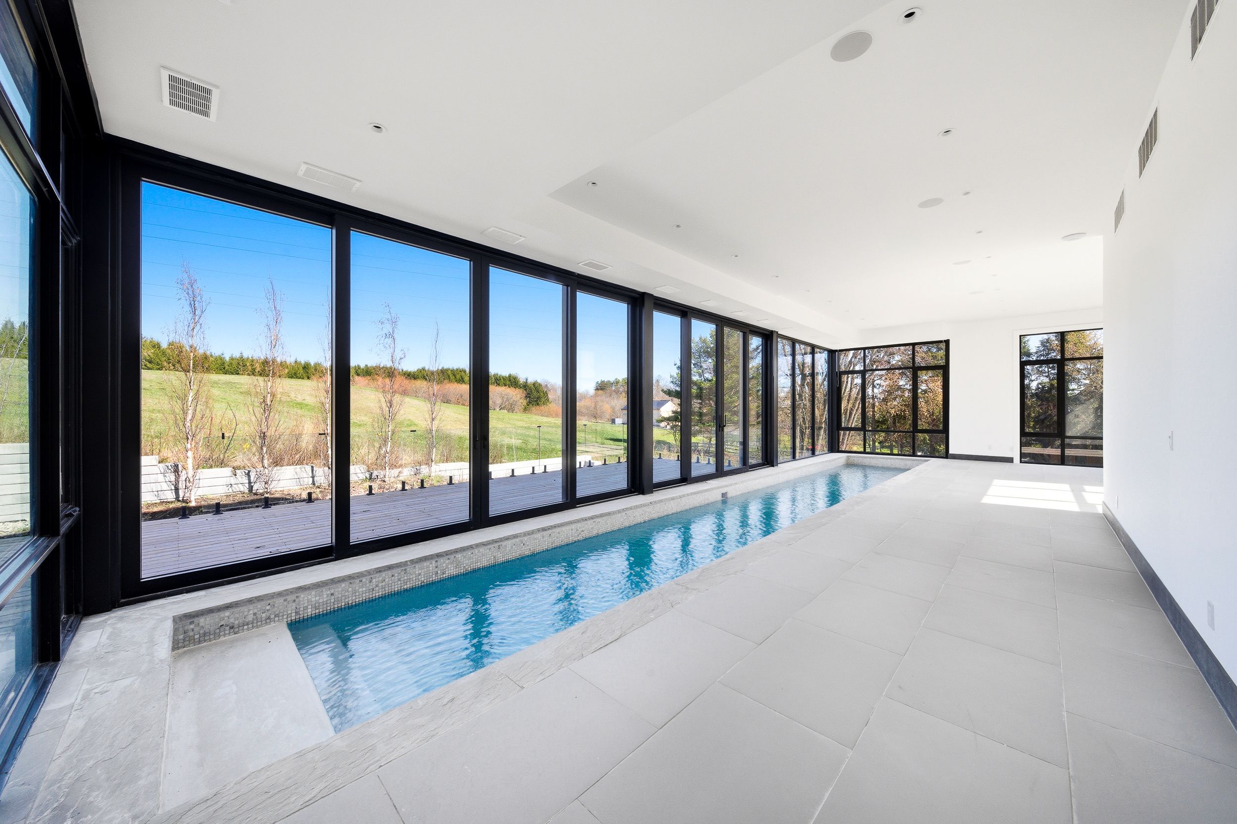 A statement in craftsmanship and design, this custom-built residence spans approximately 8,660 square feet above grade and offers an exceptional sense of scale paired with refined, curated finishes throughout. Featuring 5+2 bedrooms, with ensuites and custom built-in closets, the home delivers both privacy and consistency in design. At the centre, a beautifully appointed chef's kitchen is outfitted with top-of-the-line wolf and sub-zero appliances, seamlessly connecting to the surrounding principal spaces. A fully integrated control4 smart system allows for effortless control of lighting, climate, and media across the home. On the main level, a striking wine display serves as a design focal point, while the indoor pool introduces a rare, resort-style element, offering year-round enjoyment. The lower level is thoughtfully finished with a private movie theatre and a home gym, creating additional space tailored for comfort and recreation. The primary suite is a true retreat, complete with a spa-inspired ensuite and separate his-and-hers walk-in closets, both finished with custom built-ins. Every element of this home reflects a high level of care, from the quality of construction to the cohesion in design, an impressive and well-executed offering from start to finish.