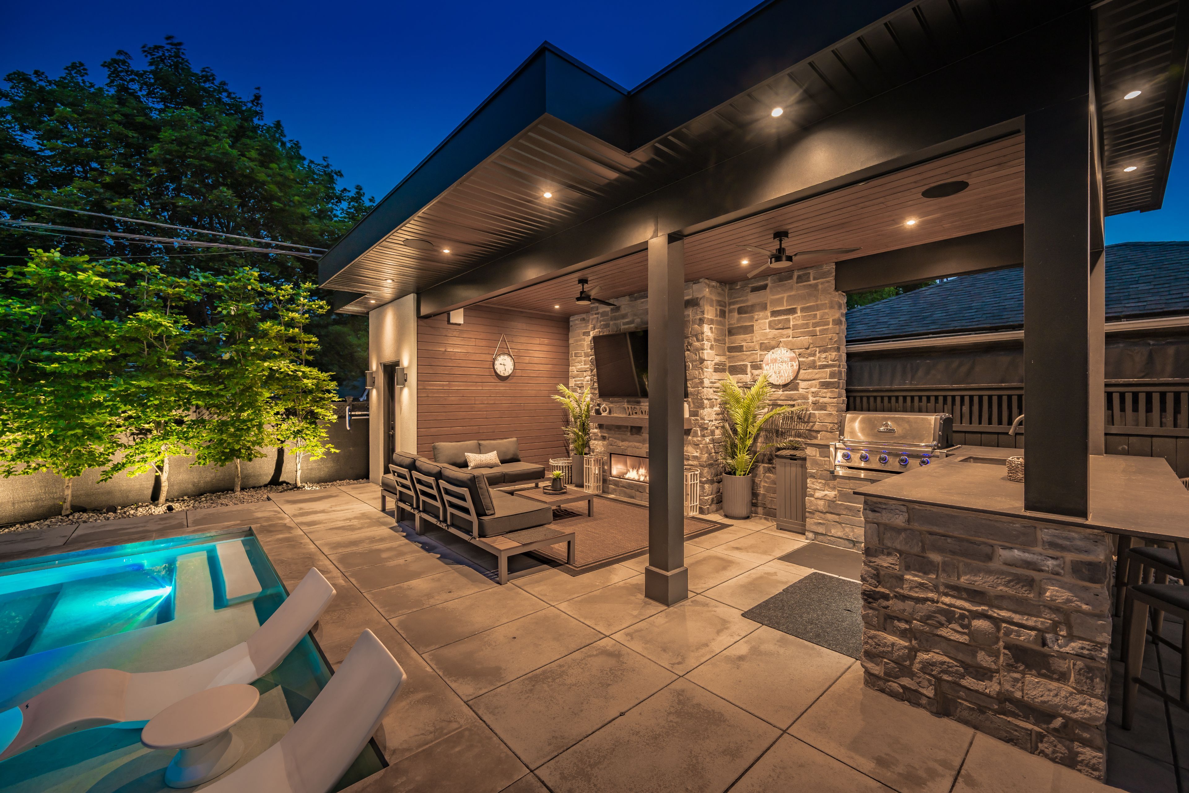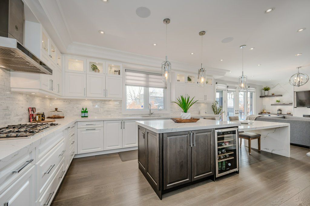 Welcome to a masterpiece of modern luxury in south west oakville, where refined design meets a true resort-style lifestyle. This exceptional custom-built residence offers over 4,200 sq. Ft. Of meticulously crafted above-grade living space, defined by uncompromising quality and timeless detail throughout. From the moment you enter, architectural excellence is showcased through extensive custom millwork, intricate wall paneling, and bespoke cabinetry that bring warmth and sophistication to every space. The open-concept main floor is an entertainer's dream, anchored by a chef-inspired kitchen with oversized quartz countertops, premium integrated appliances, and seamless flow into the elegant family and dining areas. The primary retreat offers a serene escape with coffered ceilings, a spacious walk-in closet, and a spa-like six-piece ensuite featuring a freestanding soaker tub and private water closet. A rare walk-out basement-highly sought after in this neighbourhood-provides exceptional versatility for entertaining or multi-generational living, complete with a custom wall unit, electric fireplace, and high-efficiency systems. Over $600,000 in recent upgrades elevate the professionally landscaped grounds into a private outdoor oasis, framed by 40 mature european beech trees and extensive interlock, highlighted by a 16' x 34' saltwater pool with tanning ledge and full hayward automation. A custom cabana anchors the backyard featuring a 48" gas fireplace, dekton counters, built-in bbq, and commercial-grade refrigerator, creating a true resort experience. Additional features include a premium bowers & wilkins and sonance av system, 7-zone irrigation, designer led landscape lighting, six-car driveway, heated epoxy garage with ev charging, and 6-camera security system. Ideally located steps from lake ontario and oakville's top-ranked schools, this turnkey residence defines elevated luxury living.