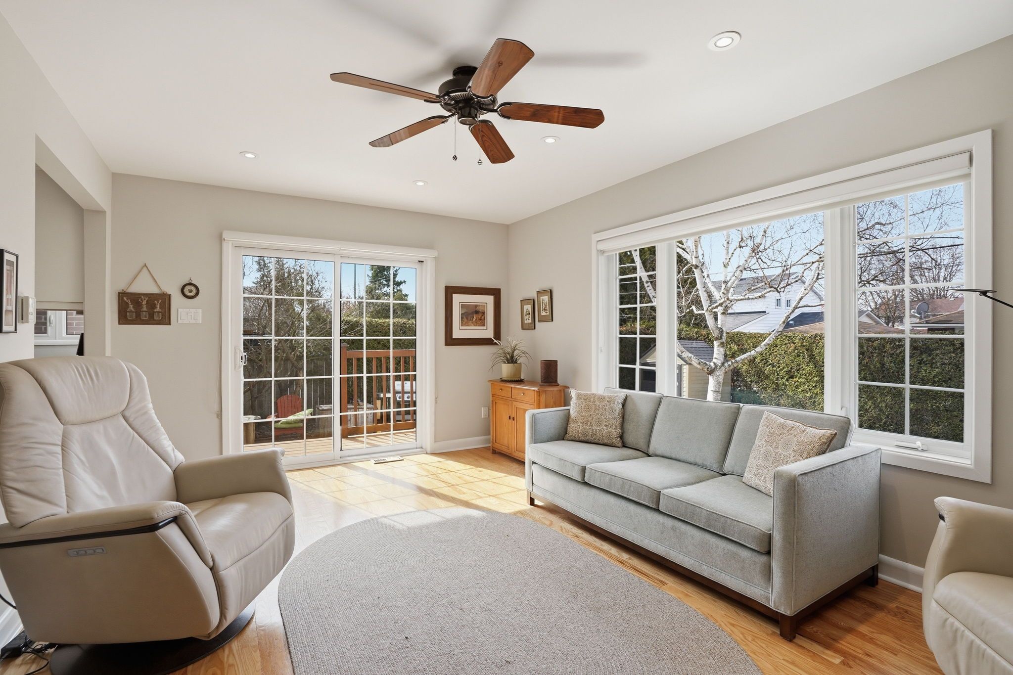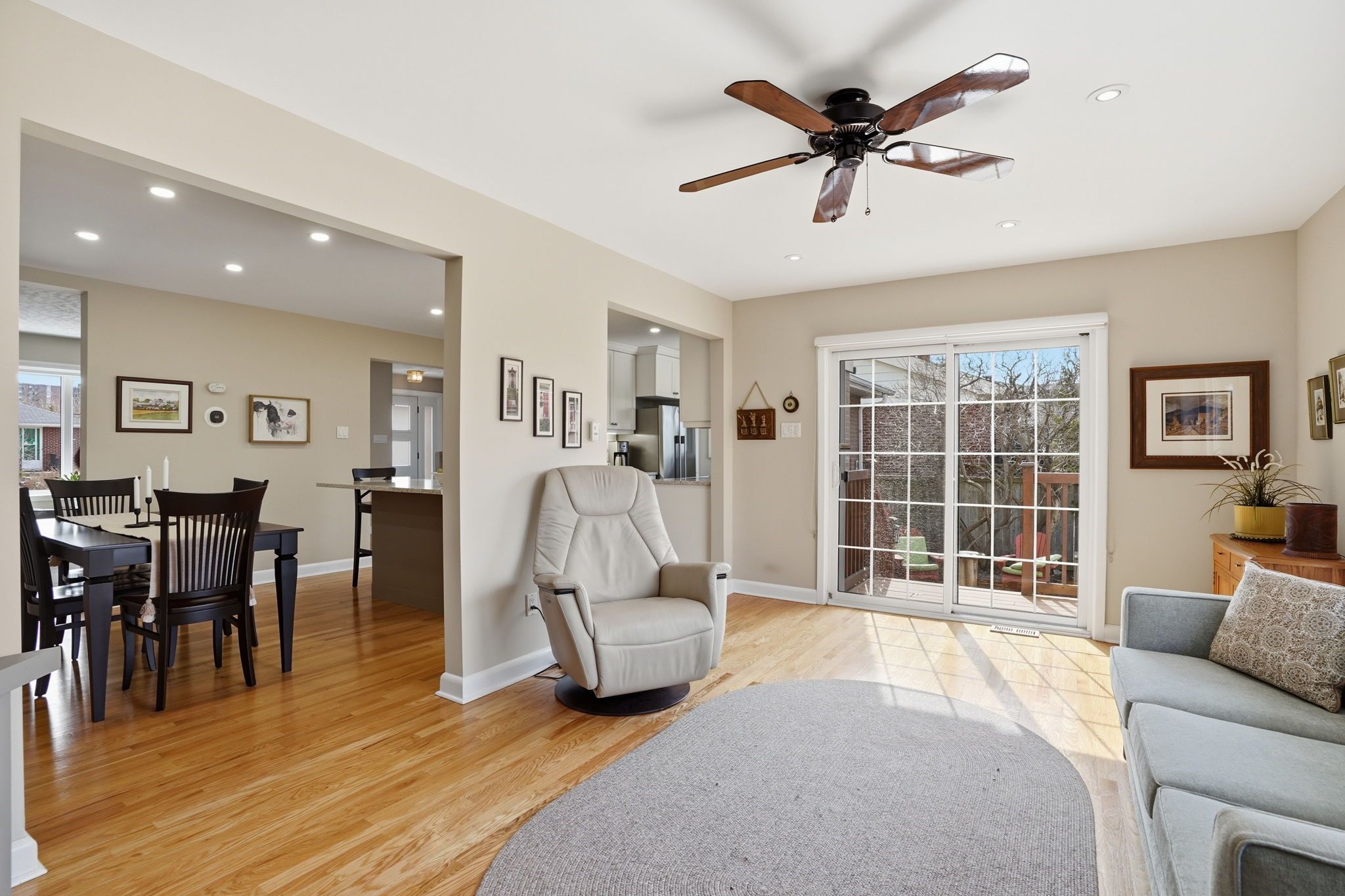 • Cozy family room with a gas fireplace and patio access to the backyard.