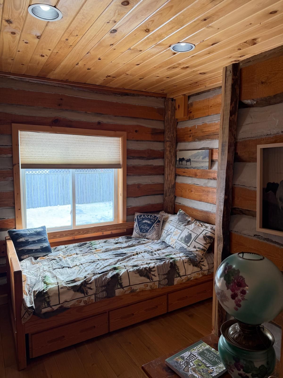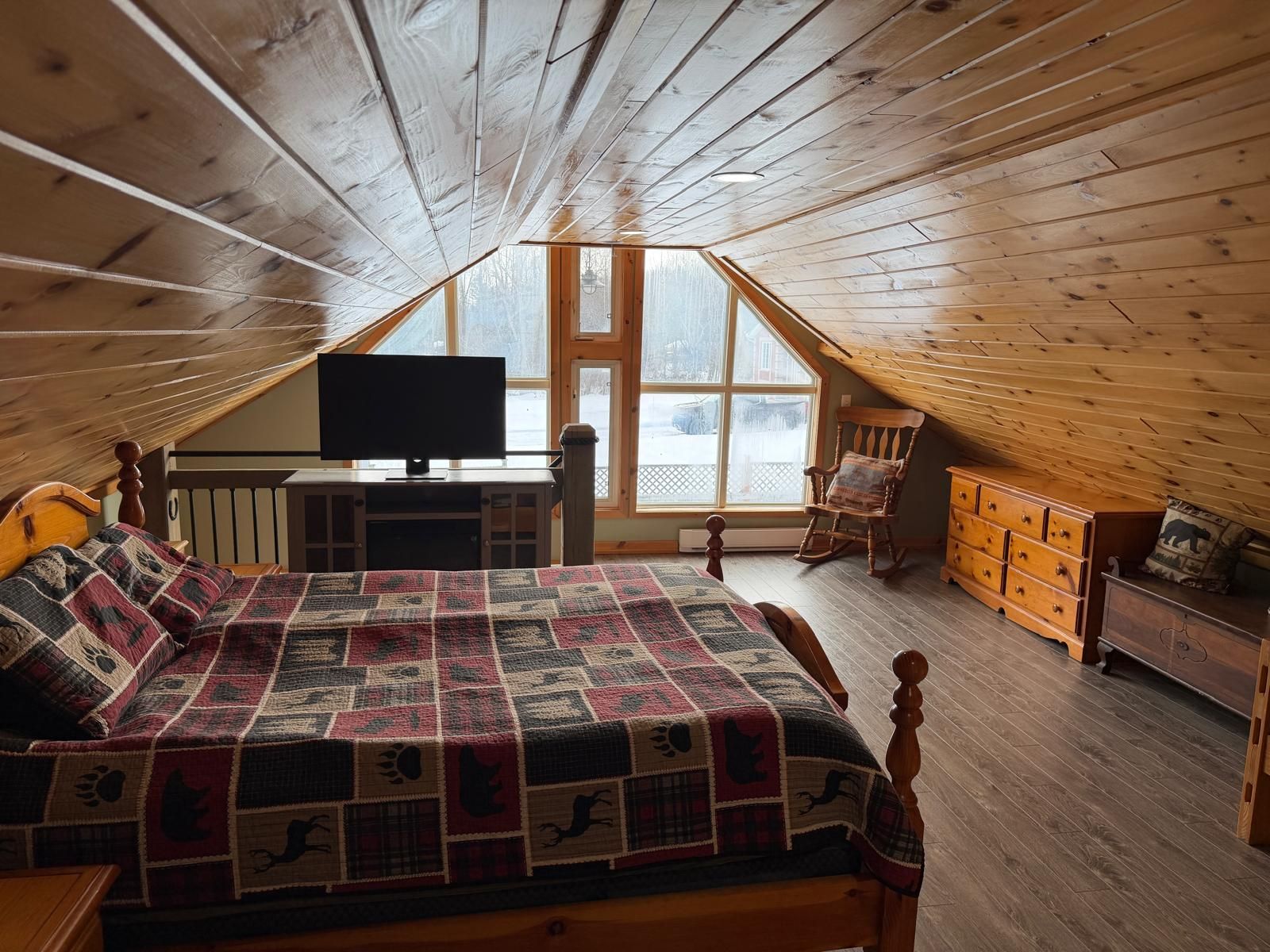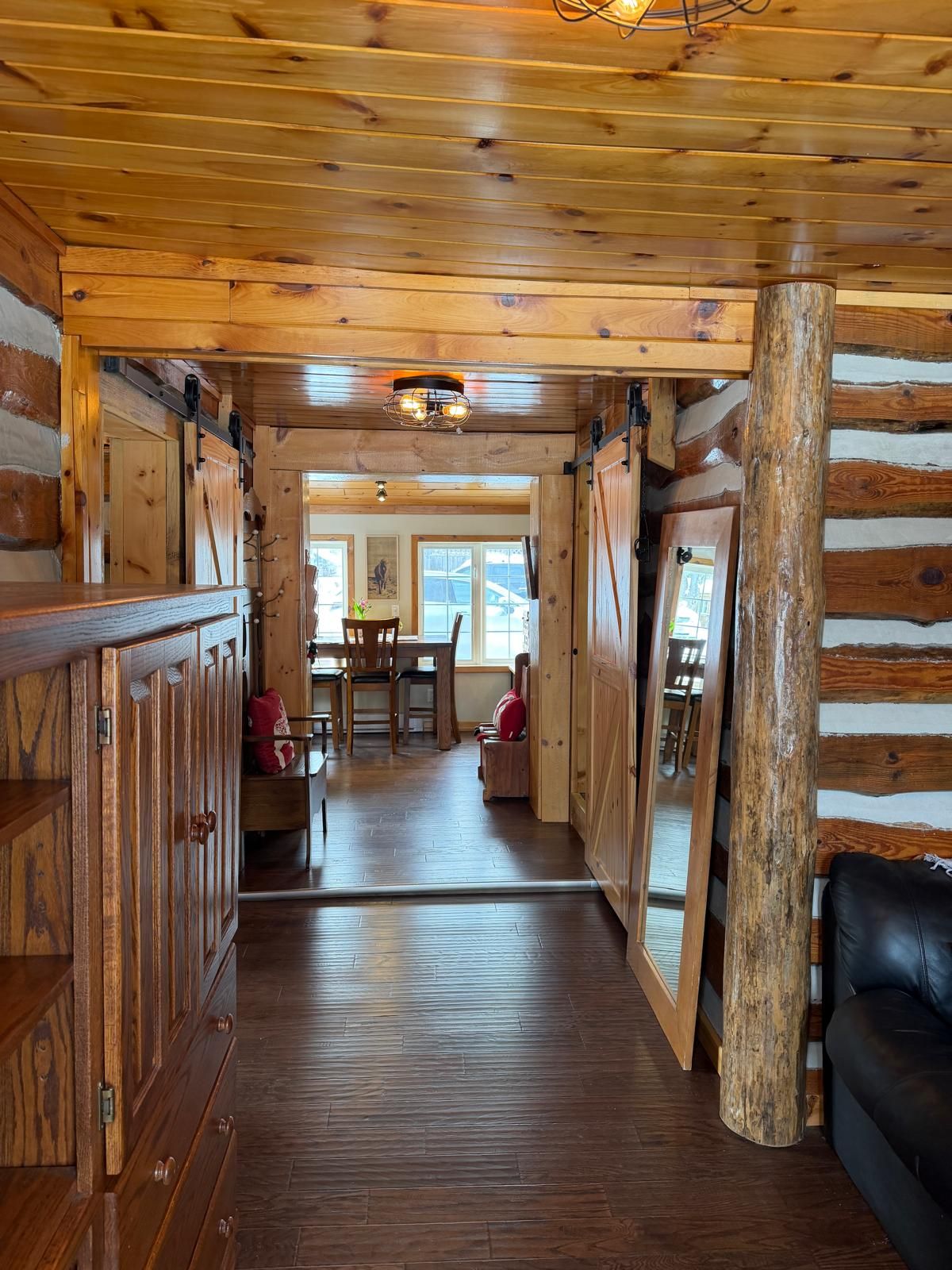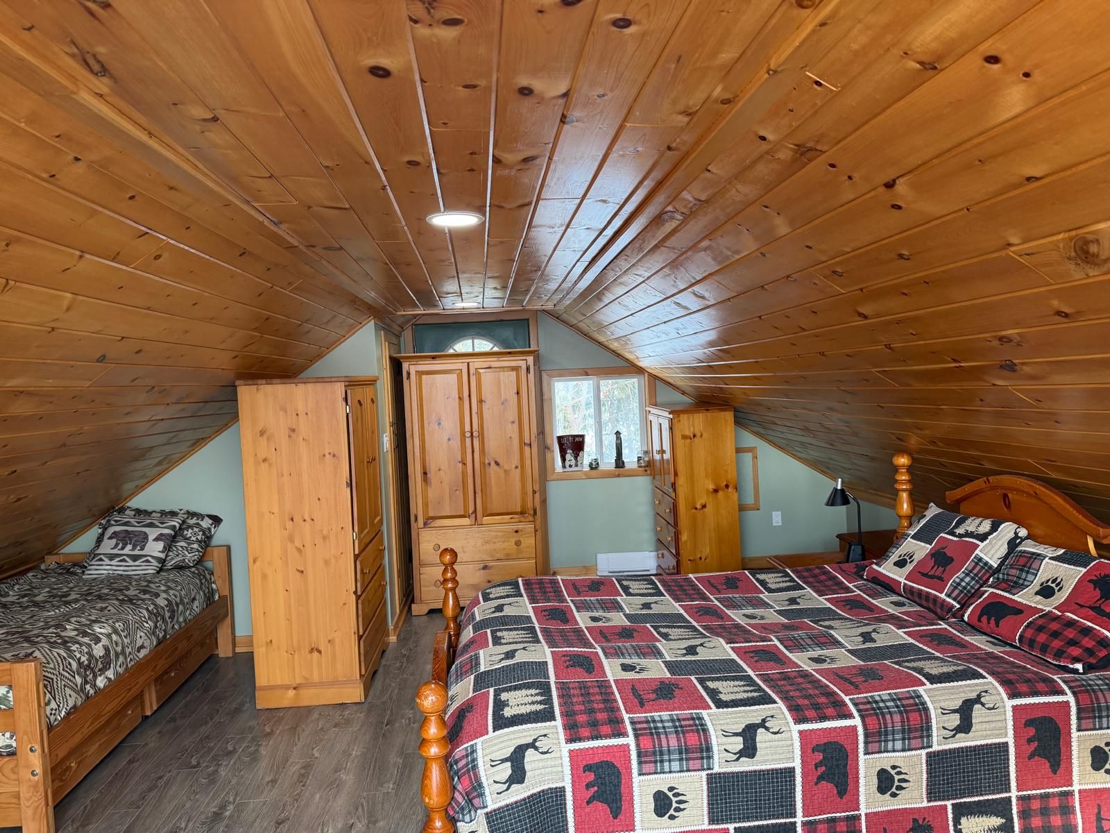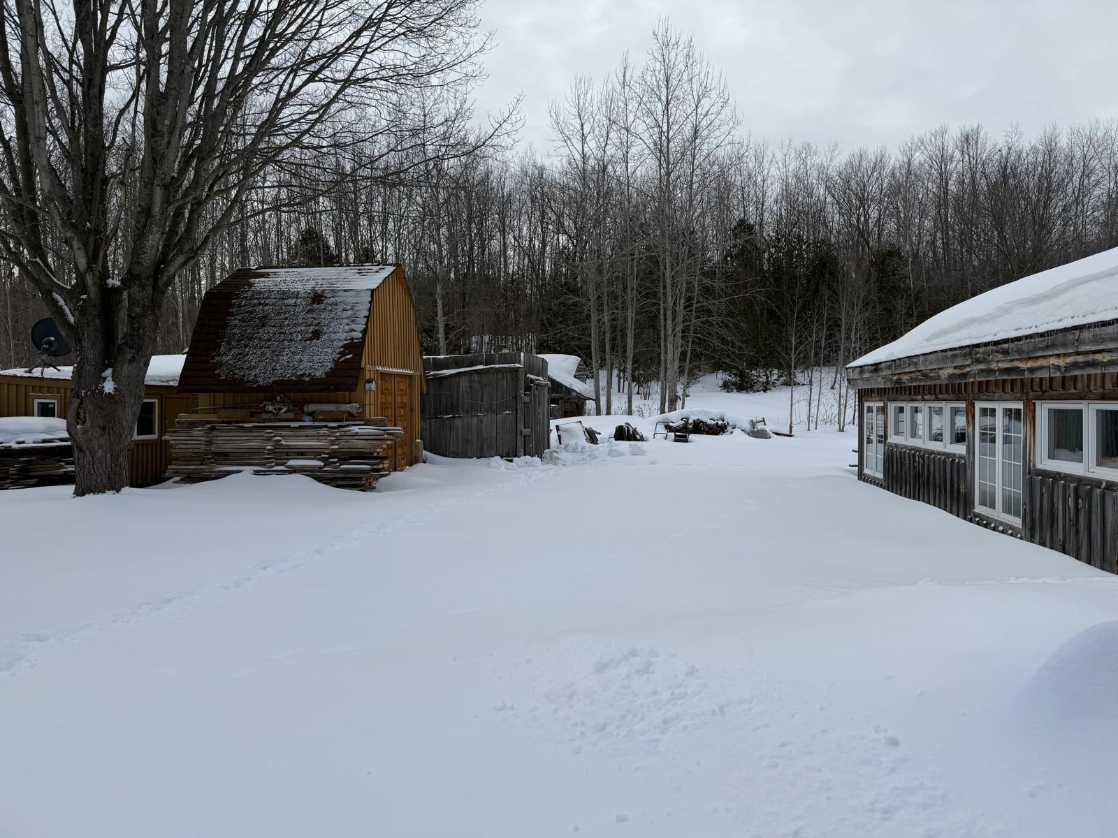 Charming 1-storey log home offering 2 bedrooms plus a versatile den, blending rustic character with thoughtful modern updates. This well-maintained property features a renovated kitchen (2021), updated bathroom (2021), new flooring throughout (2021), and two skylights that fill the home with natural light. A propane fireplace added in 2021 provides warmth and comfort, while the roof was redone the same year for peace of mind. Major infrastructure upgrades include a new septic tank installed in 2022. Distinctive details such as authentic log construction and two barn-style pulley doors enhance the home's unique character. The property also includes a separate bunkie with 2bedrooms and a living room, with separate propane tanks, and fire place, complete with a rough-in for a bathroom and requiring water hookup. Ideally located close to mount st. Louis moonstone ski resort, georgian bay, and the bruce trail, offering year-round outdoor recreation.
