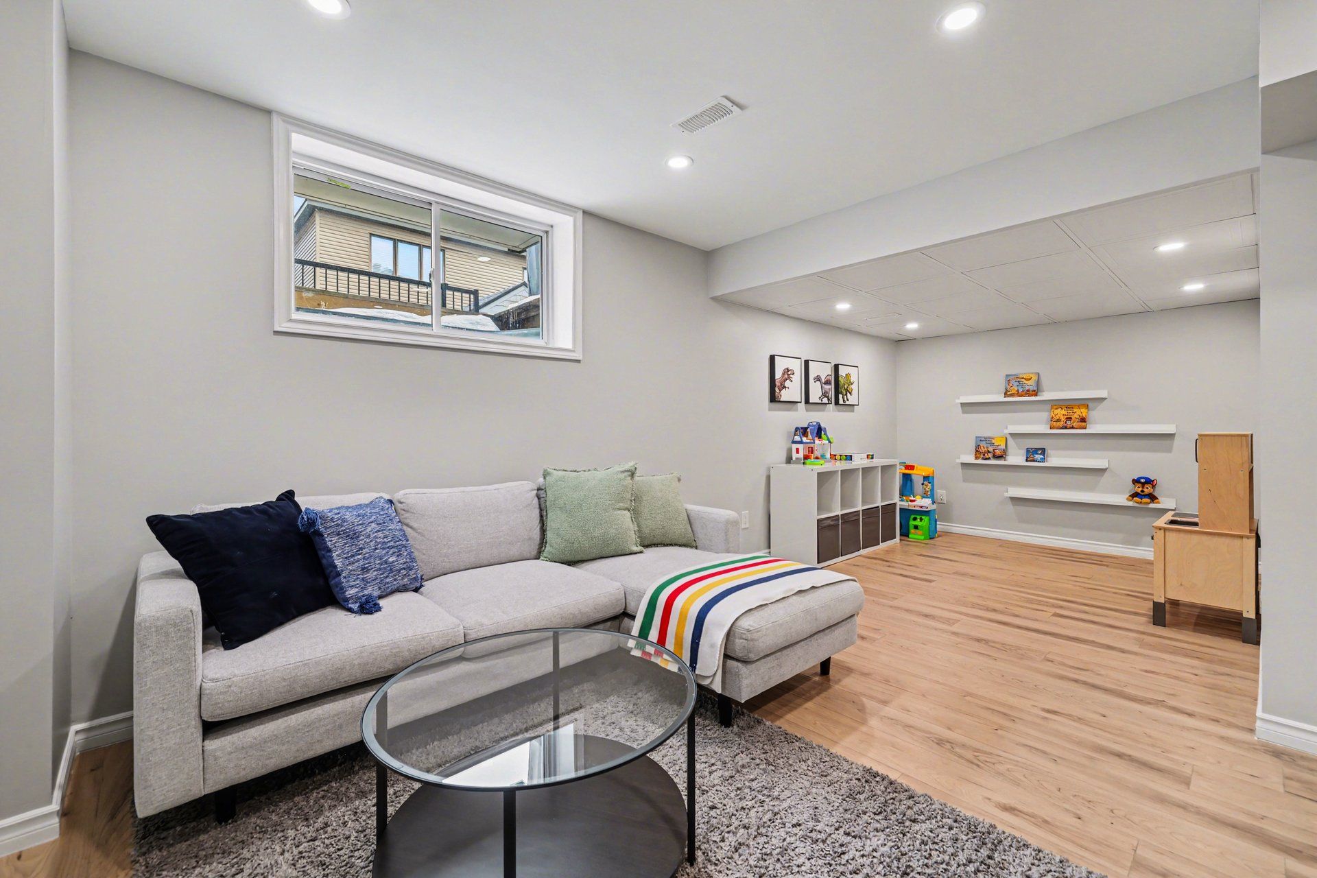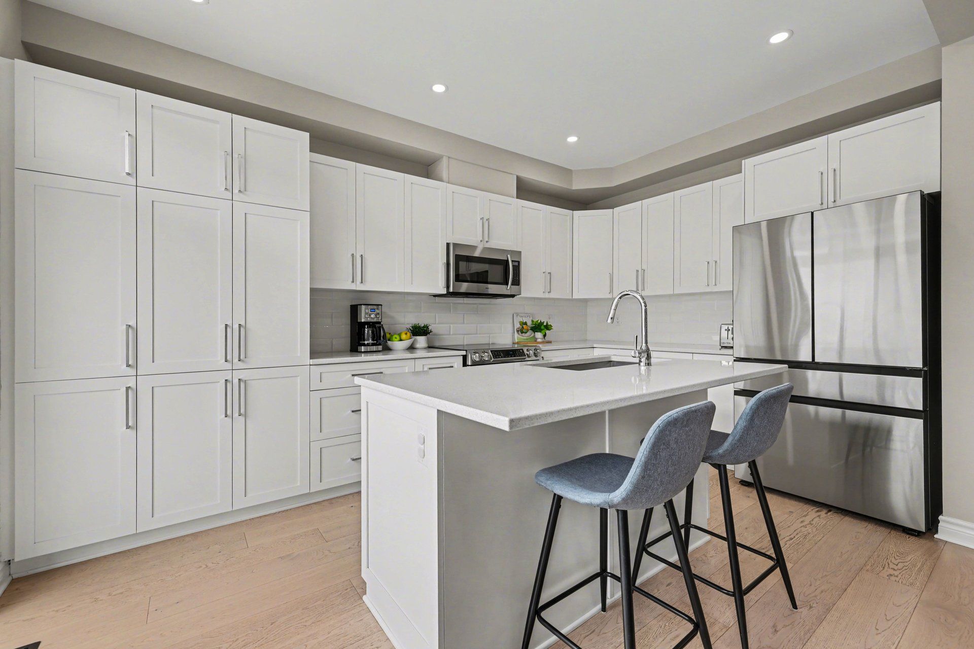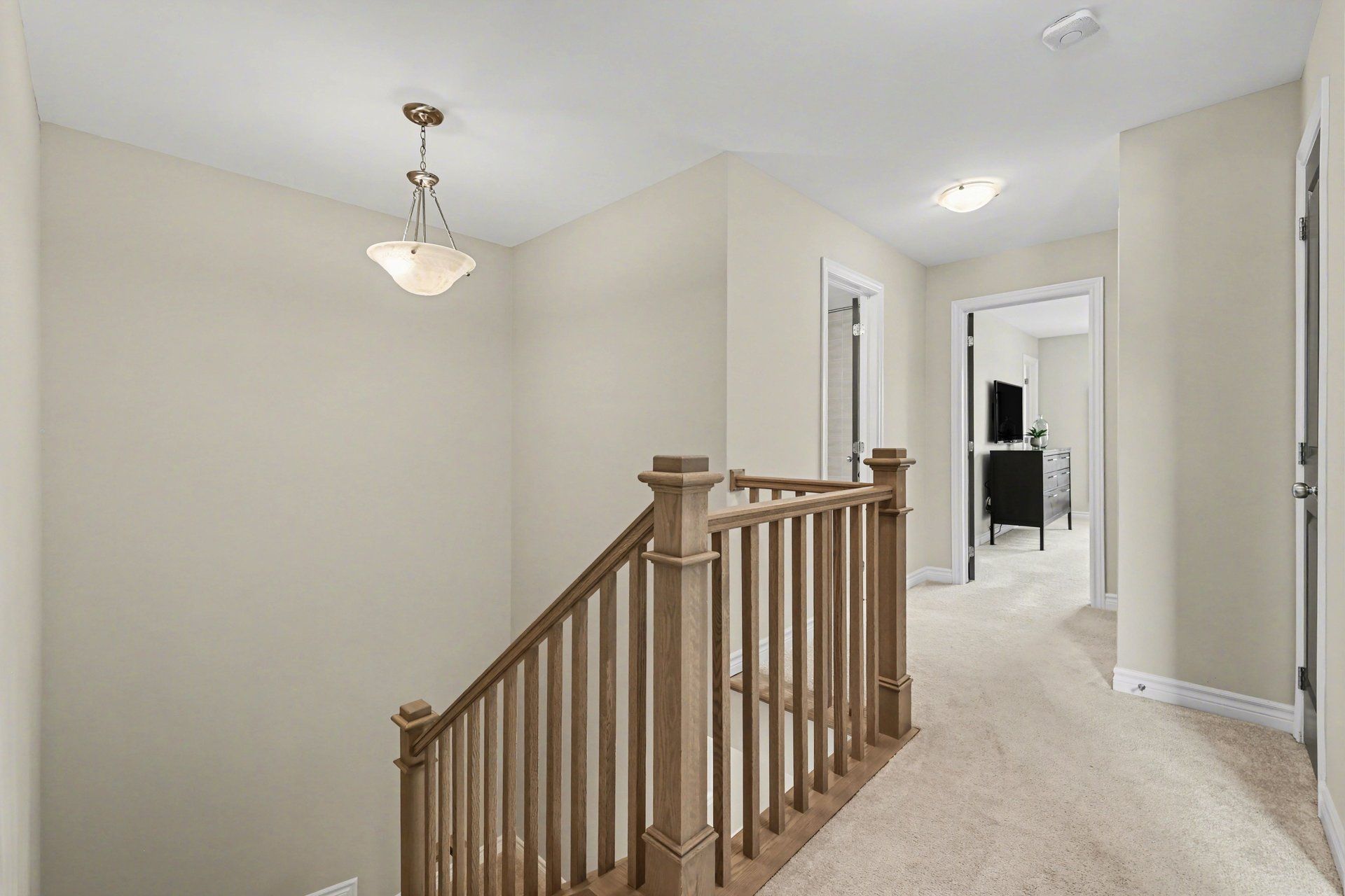 Offering the ideal blend of style and walkability, this impeccable 3 bedroom 4 bathroom home is situated on a popular family friendly street. Located walking distance to shops, restaurants, farm boy, starbucks, parks, trails, schools and amenities & close proximity to hwy 417. The main level features a sun filled open concept living and dining room with wide-plank engineered hardwood floors, pot lighting, custom roller shades and gas fireplace. Chef's will delight in this bright kitchen with stainless steel appliances, generous pantry, large island with oversize sink & breakfast bar. A walk-in closet and powder room complete this level. The second level features a spacious primary bedroom with walk in closet & 3-piece ensuite, 2 additional good sized bedrooms, main bathroom & convenient laundry room. The finished basement (2023) provides additional living space, including a family room with pot lighting, an electric fireplace, a 3-piece bathroom, and a flex space currently used as an exercise room. The exterior is perfect for entertaining, featuring a fully fenced backyard with a spacious cedar deck (2020). For added convenience, the property includes an irrigation system, a natural gas bbq hookup, a garden shed, and a garage wired for an ev charger.